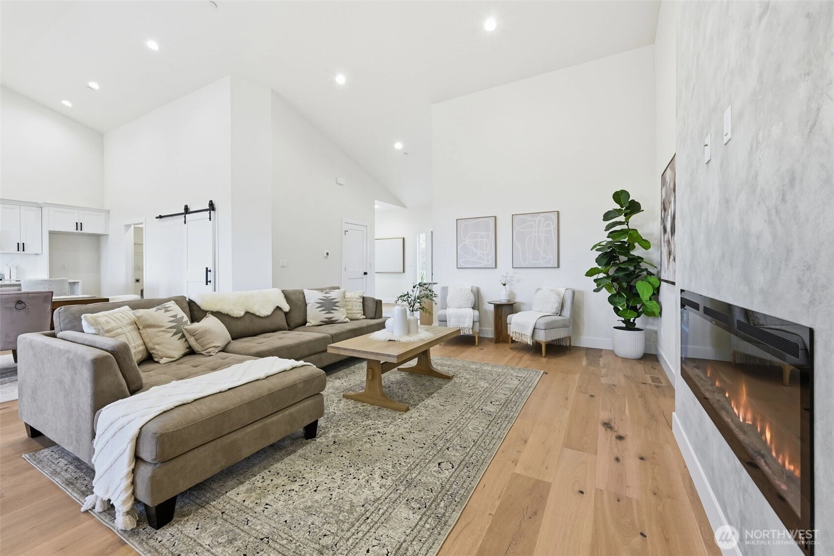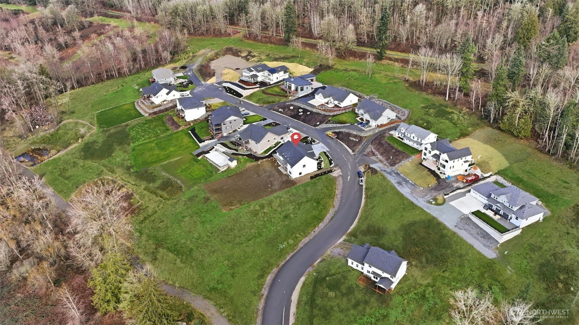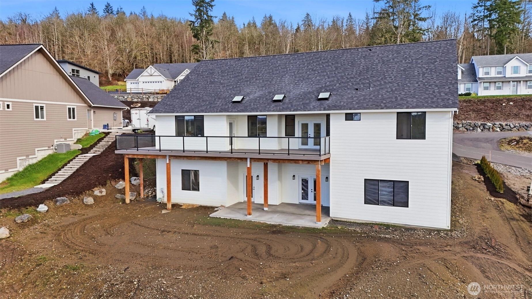 Enjoy comfortable luxury with stunning views in this thoughtfully built new estate, set on 1.4 private acres in a gated community. The main level features a no-step entry with 4 bedrooms and 2.75 bathrooms, including a spacious primary suite with a walk-in closet and a luxurious 5-piece bath. Vaulted ceilings and an open-concept layout create a bright, inviting space ideal for everyday living and entertaining. The kitchen features stainless steel appliances, a butler’s pantry/coffee station, and a wine cooler. The lower level includes a finished flex or exercise room, plus an unfinished 1,899 sq ft basement with a separate entrance, roughed-in for multi-generational living, or recreation space. Take in sunset views from the expansive deck overlooking the large backyard. Additional highlights include a private well with dual connections and a 3-car garage. Conveniently located near local amenities, shopping, and commuter routes, while offering a peaceful, private setting.