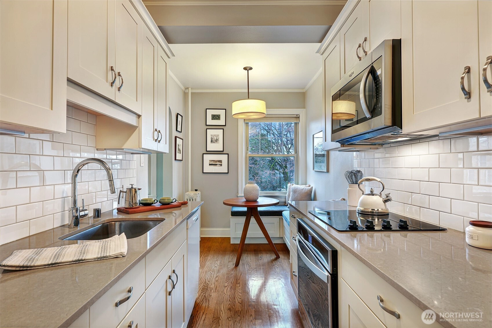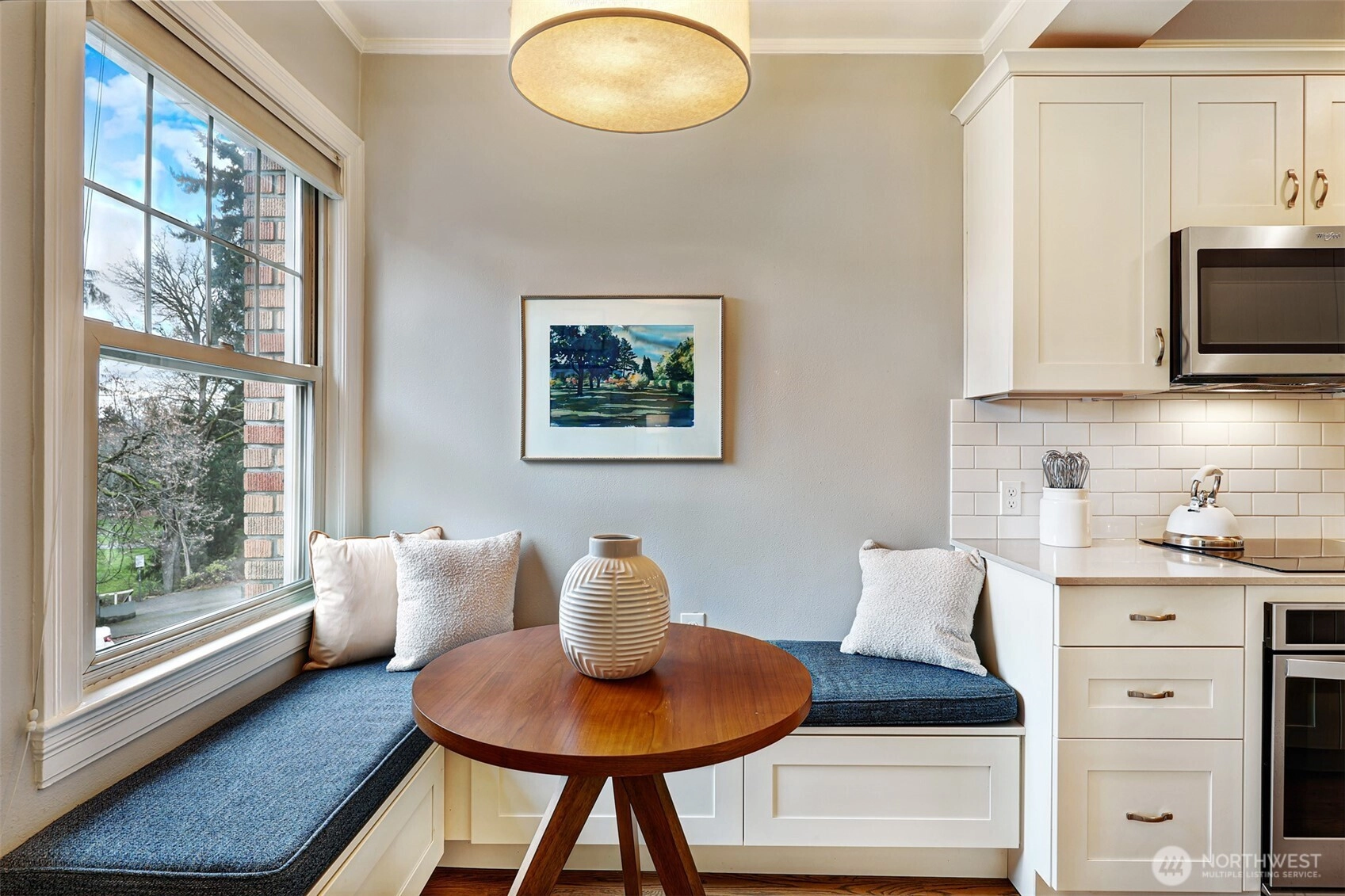 Historic Park Vista || This Craftsman-era co-op is in the most beautiful setting across from Cowen and Ravenna Park. A classic west-facing unit features high ceilings, abundant natural light, and serene garden outlooks. Thoughtful updates include a refreshed kitchen including appliances, fresh interior paint, tiled bath, and classic oak floors. An engaged, welcoming ownership community enhances the co-op experience. Elevator access for convenience. HOA dues include heat, water, sewer, garbage, earthquake, building insurance, and property taxes. Walk Score of 93. Both the Roosevelt and University District Link Stations are both extremely close-by. 5-star shopping at U-Village, or follow the Blvd to Green Lake to enjoy the outdoor amenities.