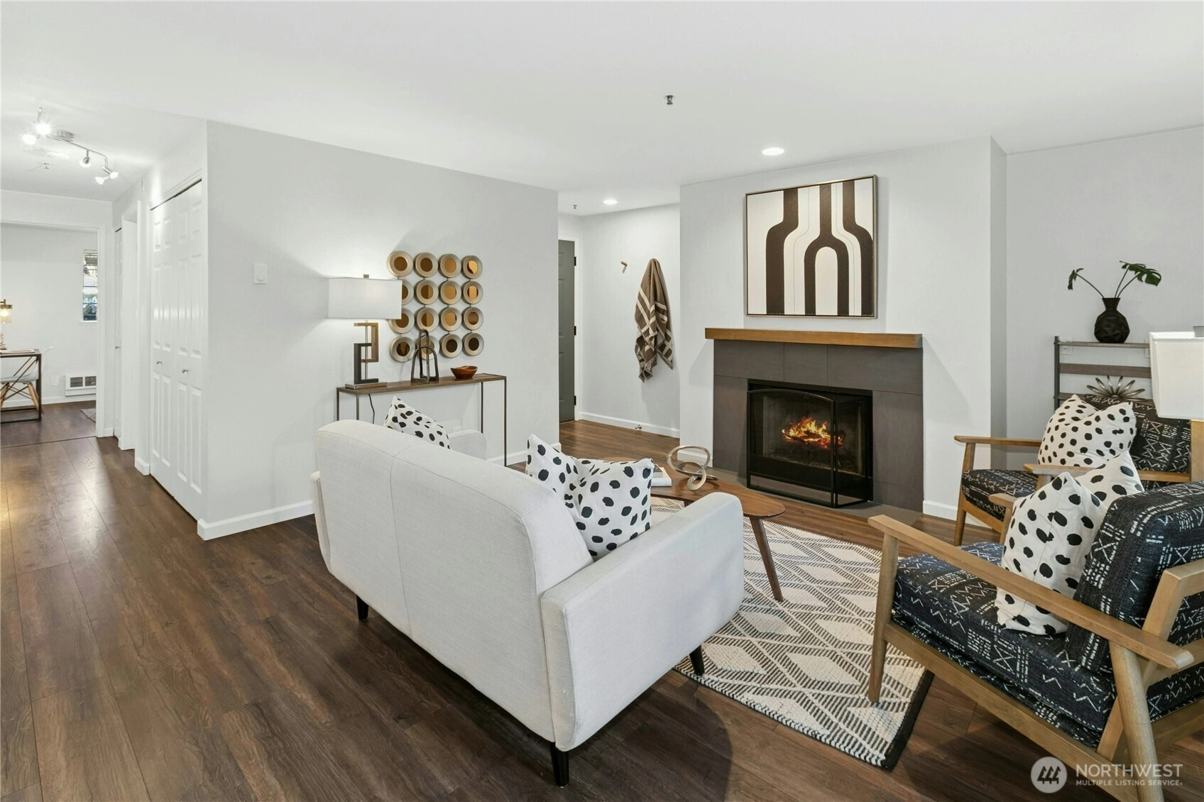 Beautifully updated, level living calls from whisper-quiet location within Issaquah Crown...Supremely walkable to the best eateries, shopping, theatre and trails around! This move-on-in-ready condominium home is picture perfect thanks to on-point durable flooring, soft designer hues, solid surfaces, sparkling appliances and sleek fixtures throughout with just a nod to soft contemporary. Wood burning fireplace anchors the large-scale living room; Owner's suite with huge walk-in and thoughtfully imagined en suite; Chef's center with uber-cool tile wall & floating shelves; A guest room large enough to serve double-duty as in-home work space; Full guest bathroom; Storage at every turn; Laundry center; Mechanized shades in the gathering & dining rooms; Greenbelt-protected viewing lanai; Updated (and energy efficient!) heating units...and so much more. Well run Association with deep reserves, too. From here, your commute to prized schools, Bellevue and beyond is a total breeze. Welcome home!