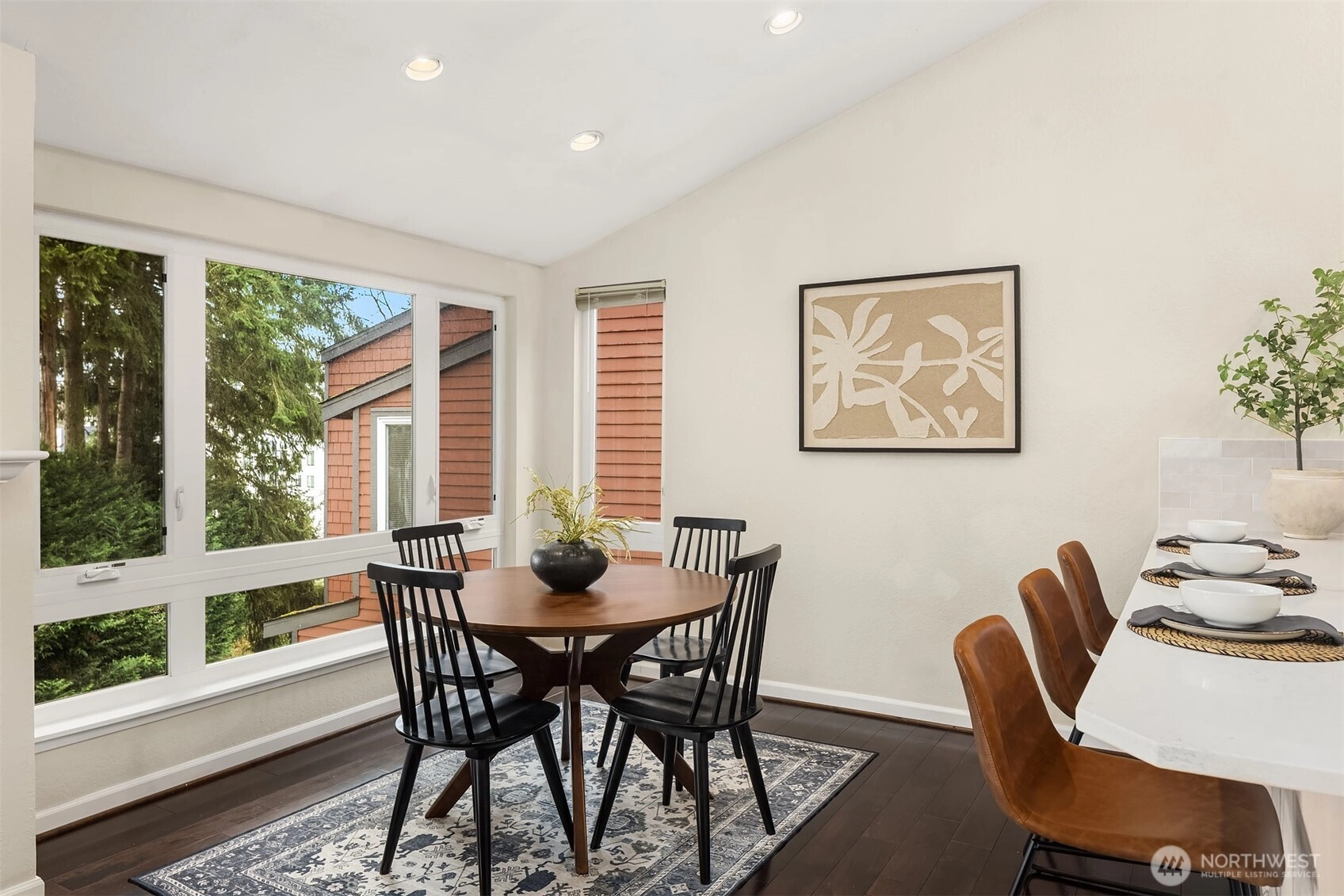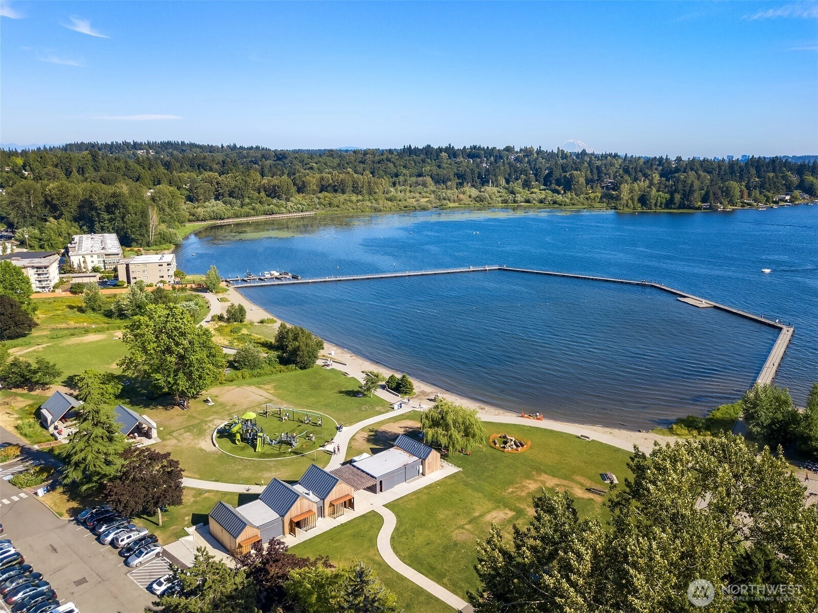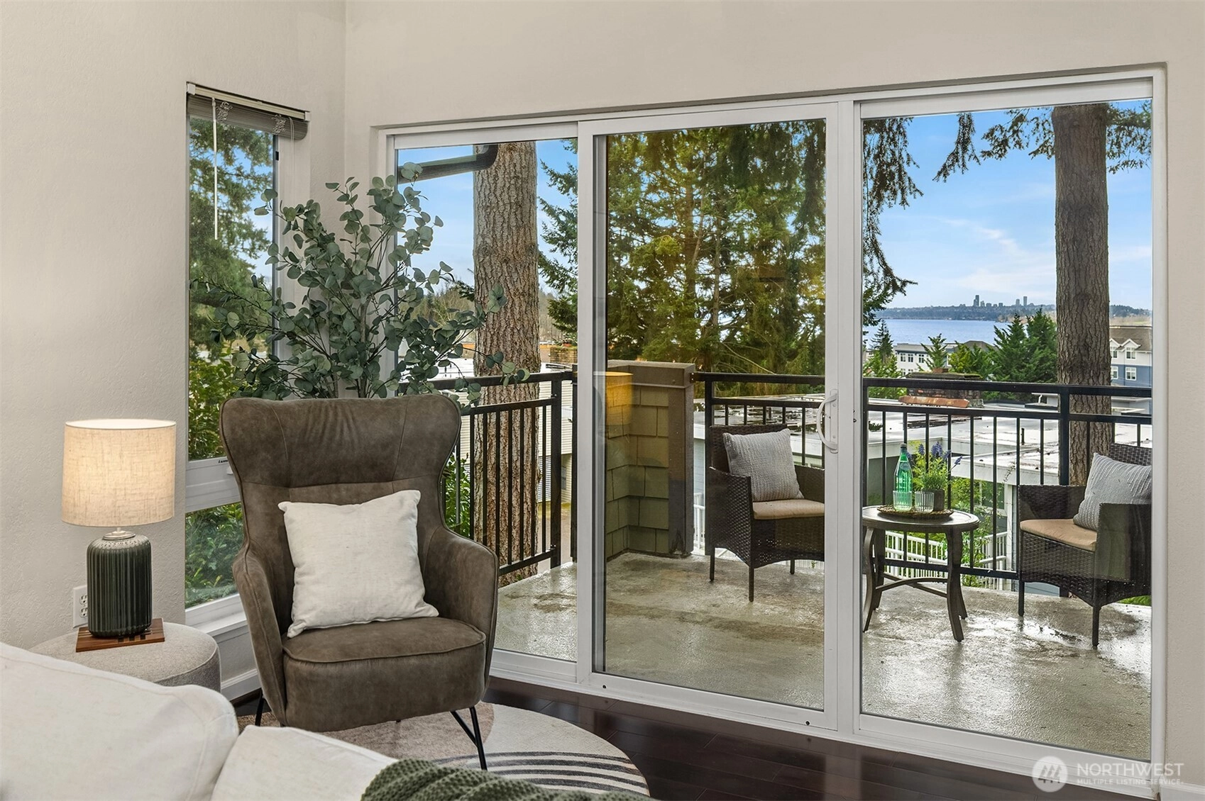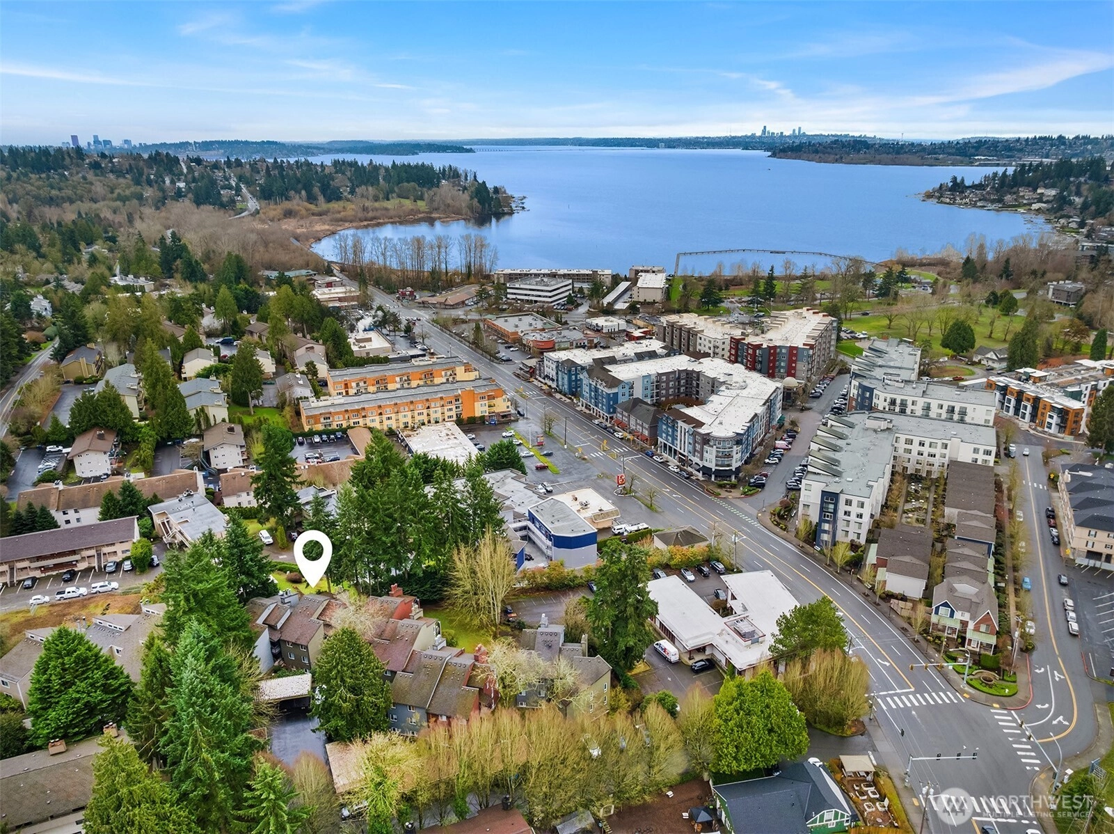 Top-floor corner Kirkland condo in the heart of Juanita featuring shimmering Lake Washington views, vaulted ceilings, and a private home office loft. This light-filled residence offers a spacious open-concept kitchen and dining area that flows into a grand living room with soaring vaulted ceilings. Enjoy the breathtaking Pacific Northwest backdrop of the Seattle skyline and Olympic Mountains from your large private balcony. The versatile floor plan includes 2 bedrooms and 1.75 baths, plus a rare bonus loft perfect for a home office or creative retreat. Enjoy tasteful updates to both kitchen and bathrooms, in-unit washer/dryer, ample storage, 2 parking spaces, and the quiet living of a gated community. Experience an incredible lifestyle with a high walk score: you are mere blocks to Juanita Beach Park, waterfront trails, and local restaurants. With easy commuter access to 405 and under 12 min to Google Kirkland, this is the ultimate Eastside retreat. Juanita Kirkland living at its finest.