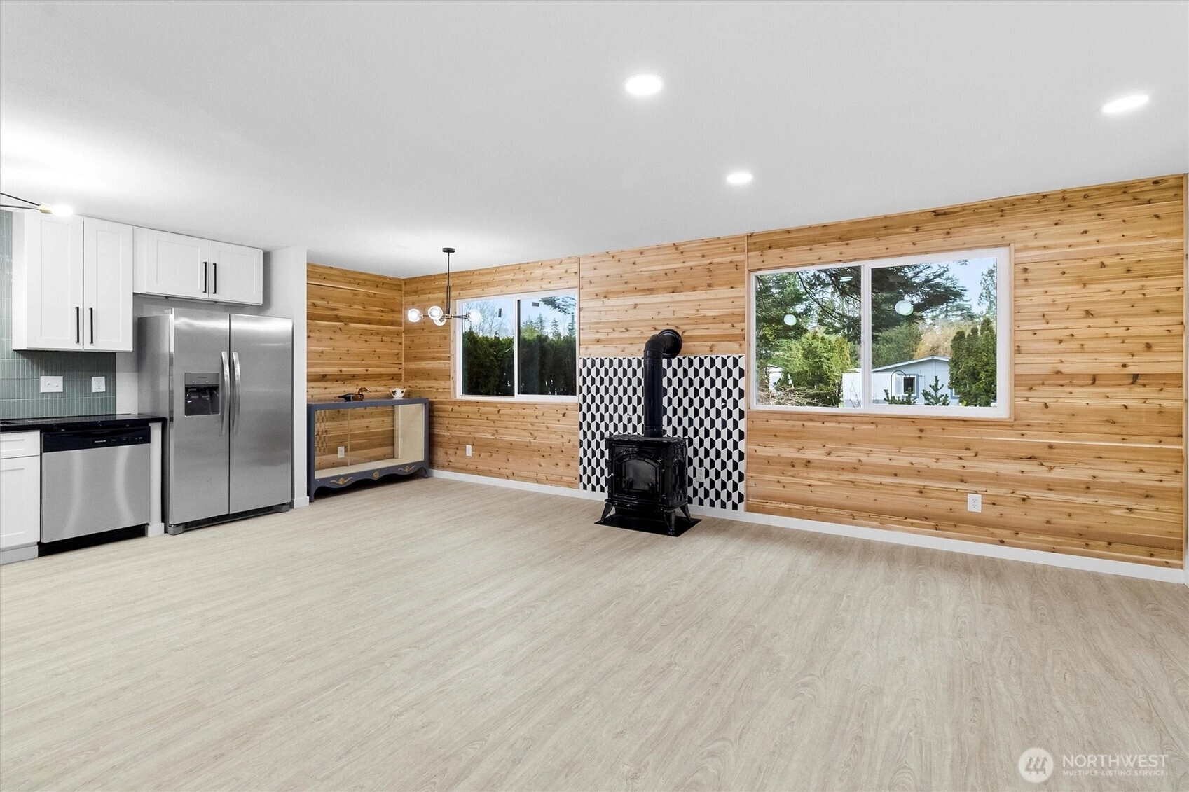 Stick-built home by the bay! This cute cottage needs absolutely nothing to be move in ready. The home offers an updated kitchen with solid wood cabinets, quartz countertops and all new appliances. There is a den/office which makes it feel like a 3 bedroom. Luxury vinyl plank flooring throughout for a great look with low maintenance. Brand new double pane vinyl windows for comfort and efficiency. Listen to the soft sounds of the stream, from your deck, in your fully fenced back yard. This is one of the few homes with beautiful old growth trees and privacy. There is no need to compromise style, this home is adorable and truly move in ready. Don't miss out on your chance to own the most affordable stick-built home in the village.