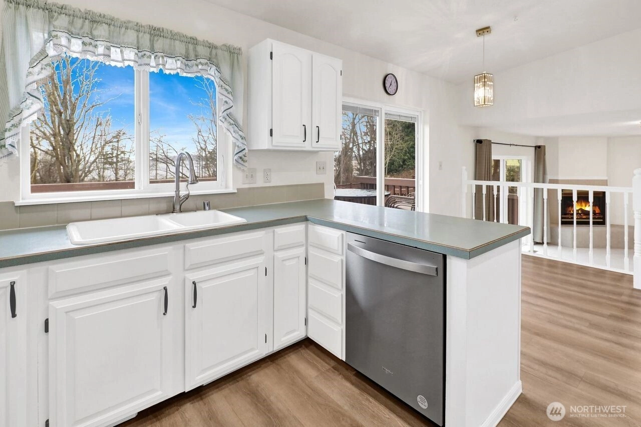 Bay views and relaxed coastal living define this well-maintained home in the gated Sealinks community. The large main deck offers open water views and a perfect place to unwind, while the step-down deck provides room for a future Jacuzzi. The primary suite includes its own private deck, an ideal spot to enjoy the Bay and its iconic Fourth of July fireworks, Ring of Fire, and Polar Bear Plunge. Inside, the home features kitchen w/nook, 3 bedrooms, and 2.25 baths. A sunken living room off the kitchen offers a wet bar and gas fireplace, creating a cozy space for entertaining. The second living room, also with a gas fireplace, opens to the dining area and provides a comfortable everyday setting. Recent updates include LED lighting, interior paint, and new carpet. Major improvements include a newer roof, siding, furnace, hot water tank, and stainless steel appliances. A two-car garage adds convenience and storage. Seller holds a VA loan w/ a low interest rate that may be assumable, subject to lender approval and buyer verification. Just a short walk to the beach, waterfront dining, and local shops, this home places you near everything Birch Bay offers—breweries, live music, waterslides, go-karts, and the beloved C Shop. With easy access to Blaine, Semiahmoo Resort, golf, I-5, and the U.S./Canadian border, this is a great opportunity to enjoy coastal living in a desirable gated community.