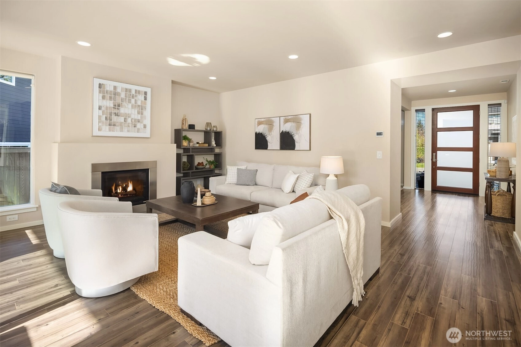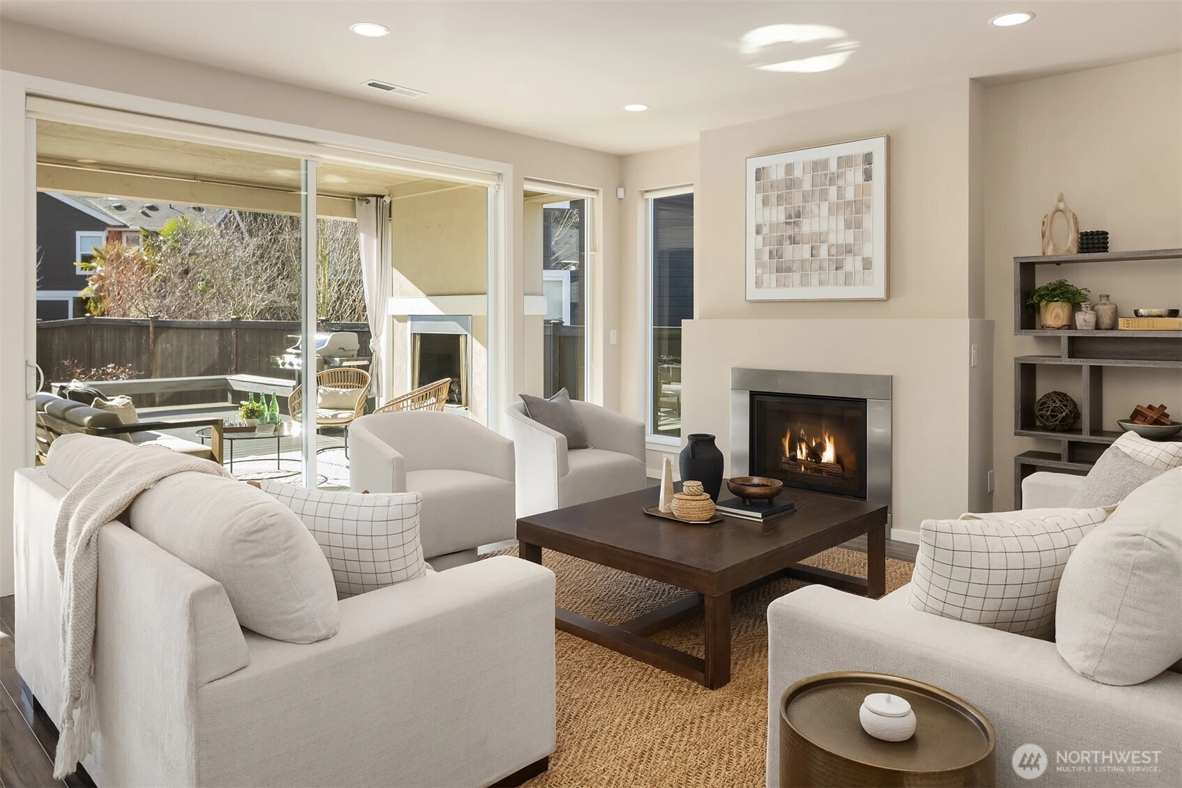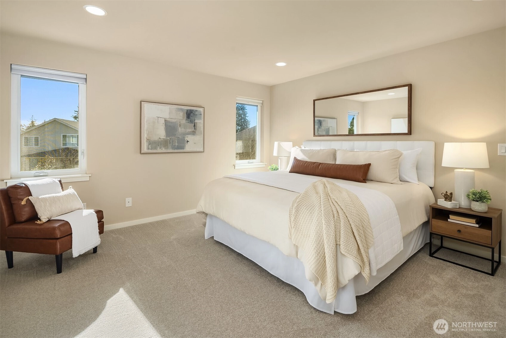 Refined and beautifully maintained, this MainVue resale in the desirable Honey Creek neighborhood offers a thoughtful design and a layout that feels spacious and inviting. The floor plan features 4 bedrooms, loft area, and a dedicated office with brand new carpet and fresh interior paint throughout. Walls of windows bring in abundant natural light and the expansive kitchen flows seamlessly into the main living area—ideal for everyday life and entertaining. Upstairs, the spa-inspired primary suite provides a private retreat with a serene, well-appointed bath designed for relaxation. Additional highlights include air conditioning, large pantry and garage with extra storage. Double sliding doors extend the living area to a covered and expanded deck with an outdoor fireplace, creating effortless indoor-outdoor living. The fully fenced, low-maintenance backyard and patio provide space to gather and unwind year-round. Ideally located with quick access to I-405, The Landing, Bellevue, nearby Gene Coulon Park, as well as shopping and dining. This home blends modern design, comfort, and everyday convenience in one exceptional package.