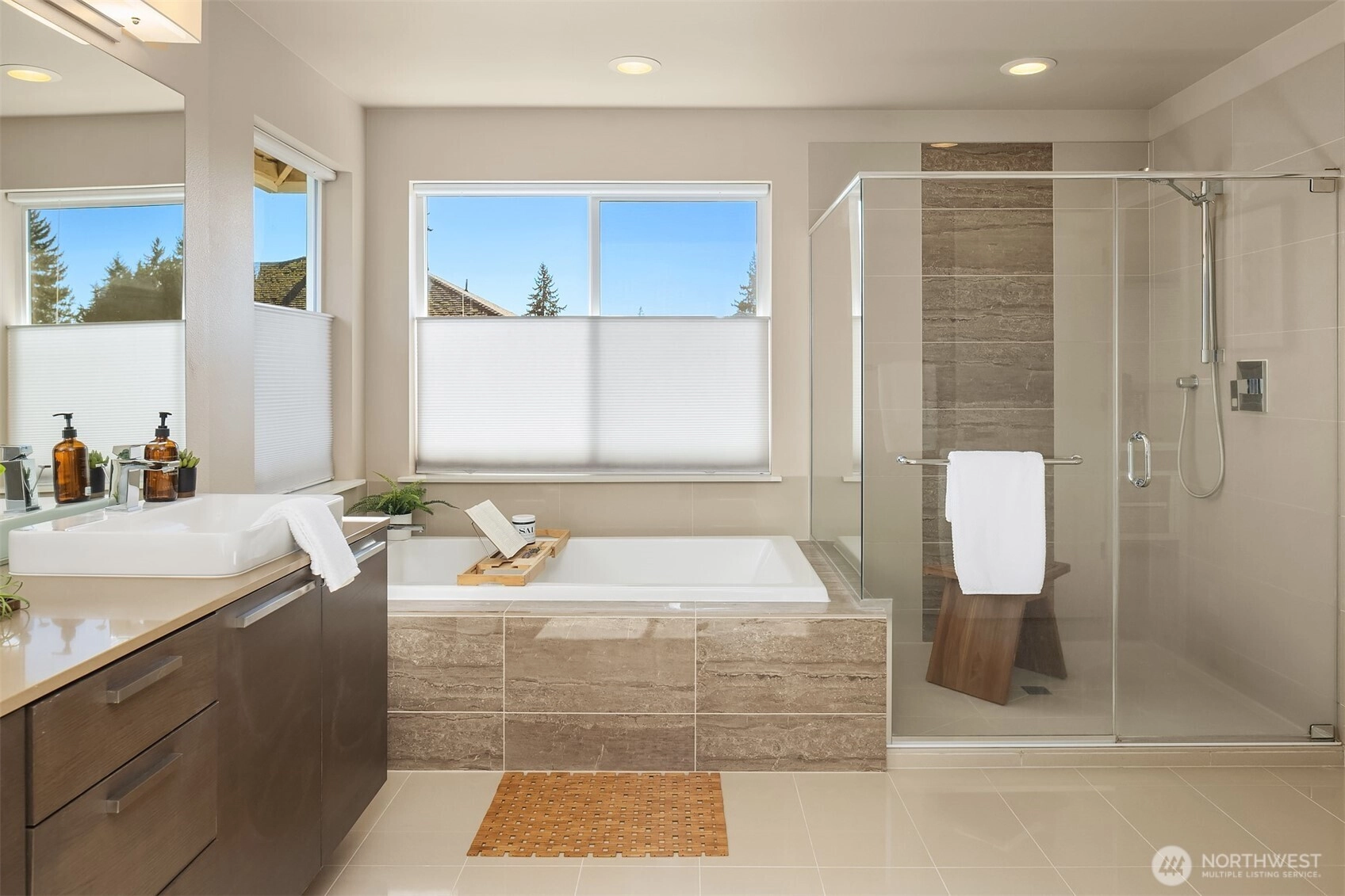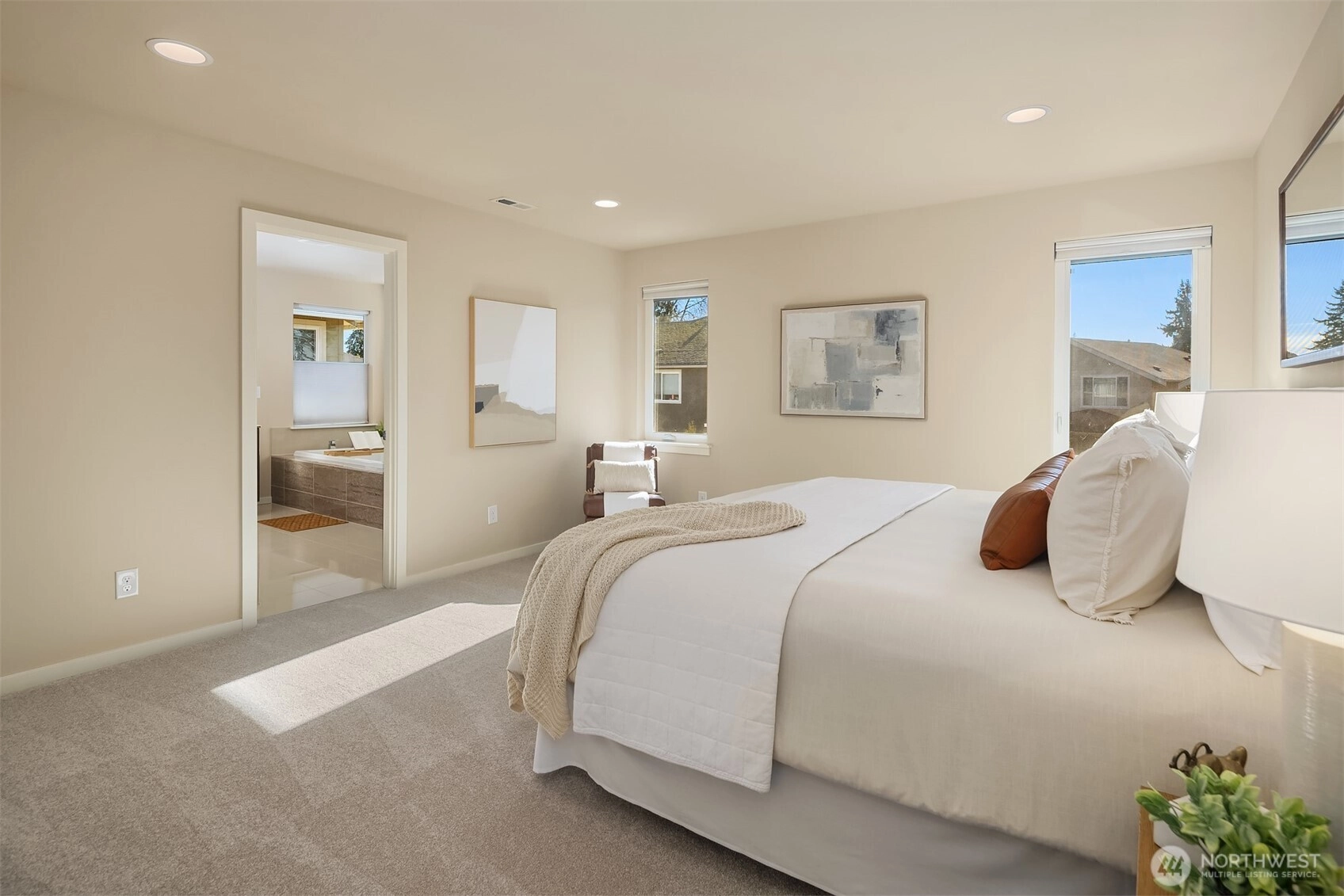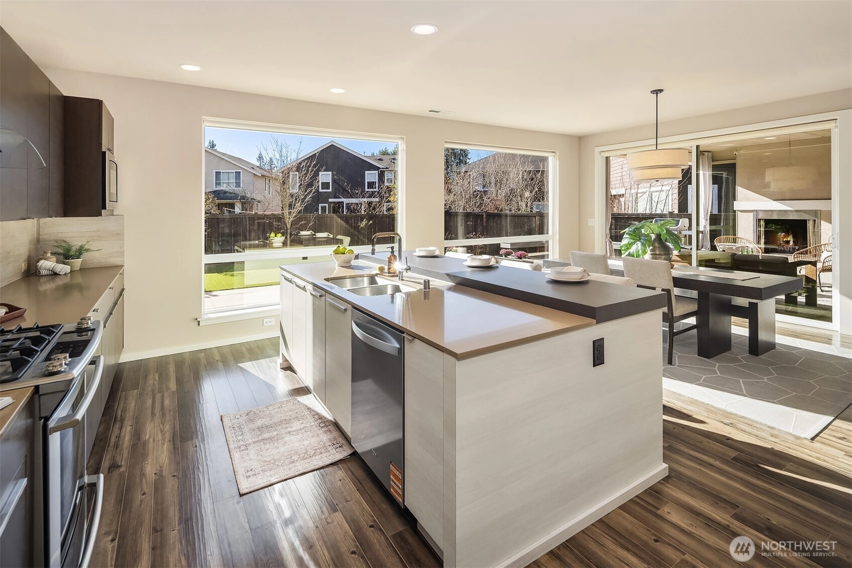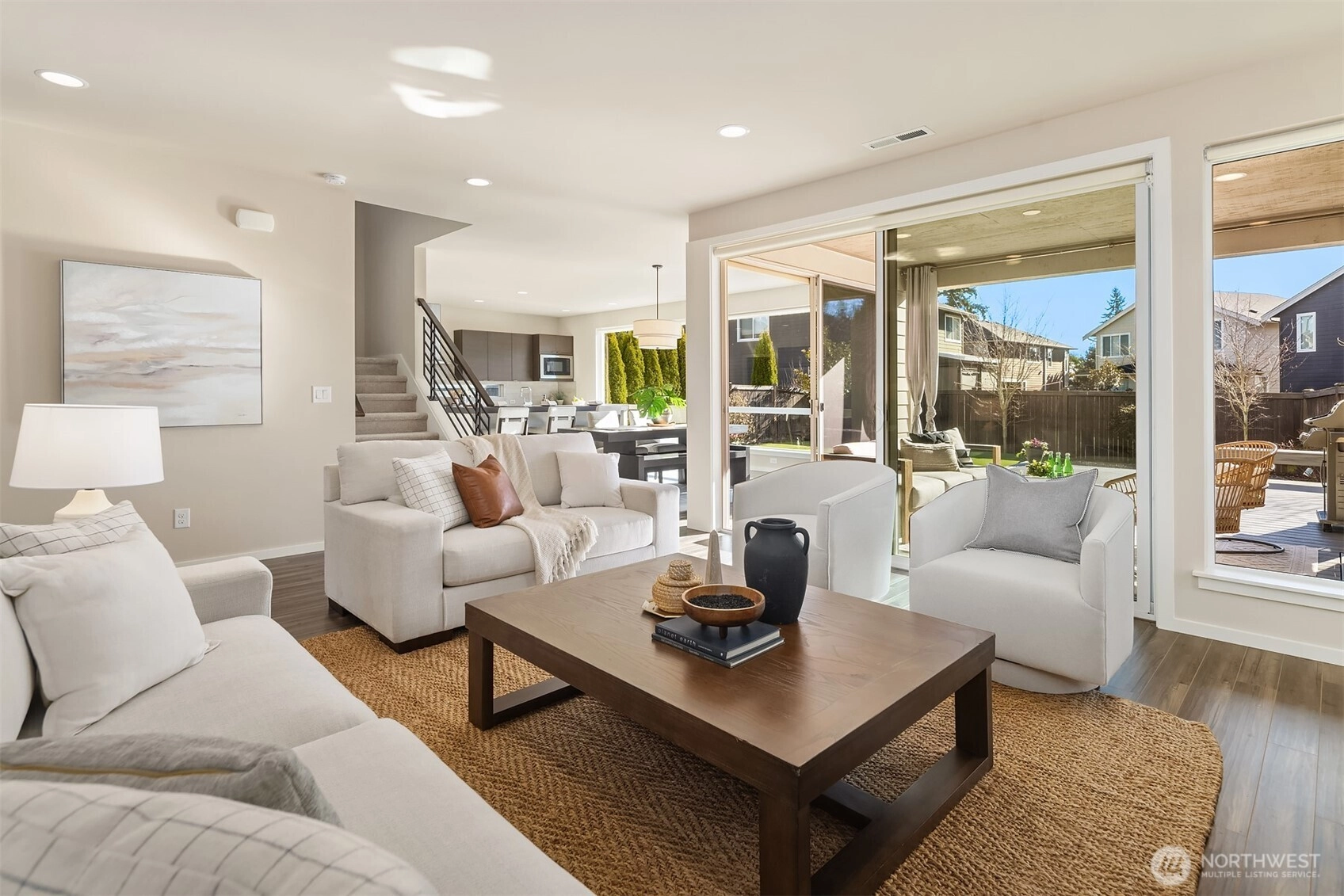 Refined and beautifully maintained, this MainVue resale in the desirable Honey Creek neighborhood offers a thoughtful design and a layout that feels spacious and inviting. The floor plan features 4 bedrooms, loft area, and a dedicated office with brand new carpet and fresh interior paint throughout. Walls of windows bring in abundant natural light and the expansive kitchen flows seamlessly into the main living area—ideal for everyday life and entertaining. Upstairs, the spa-inspired primary suite provides a private retreat with a serene, well-appointed bath designed for relaxation. Additional highlights include air conditioning, large pantry and garage with extra storage. Double sliding doors extend the living area to a covered and expanded deck with an outdoor fireplace, creating effortless indoor-outdoor living. The fully fenced, low-maintenance backyard and patio provide space to gather and unwind year-round. Ideally located with quick access to I-405, The Landing, Bellevue, nearby Gene Coulon Park, as well as shopping and dining. This home blends modern design, comfort, and everyday convenience in one exceptional package.