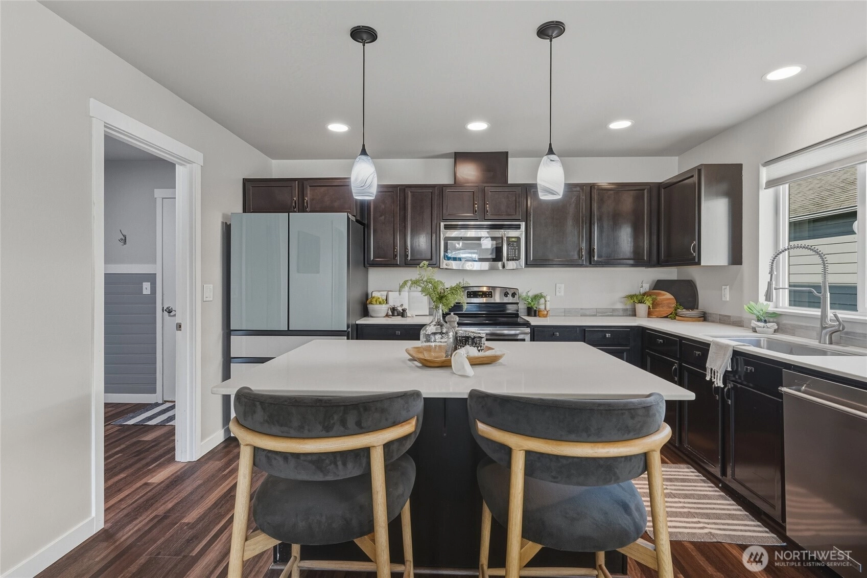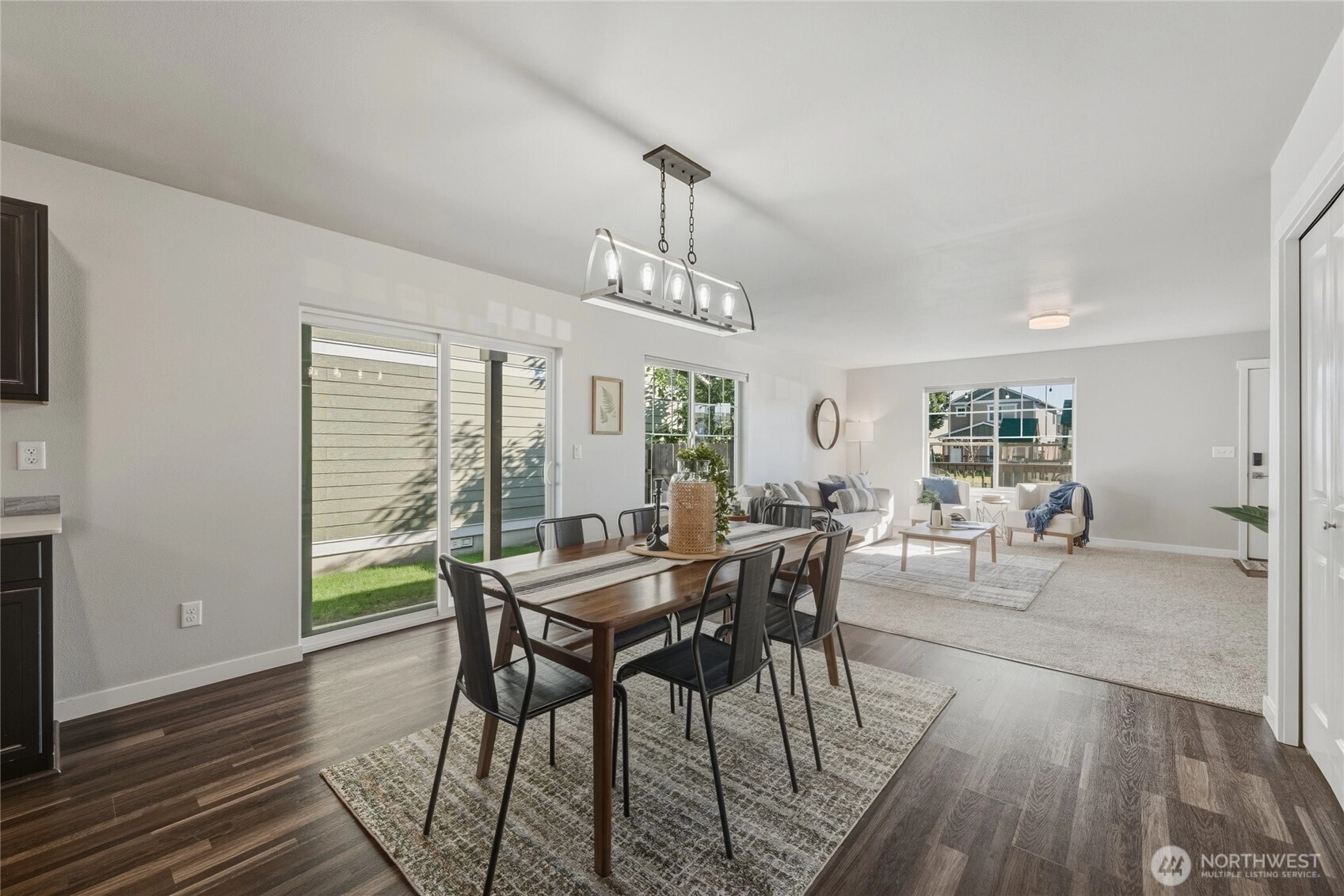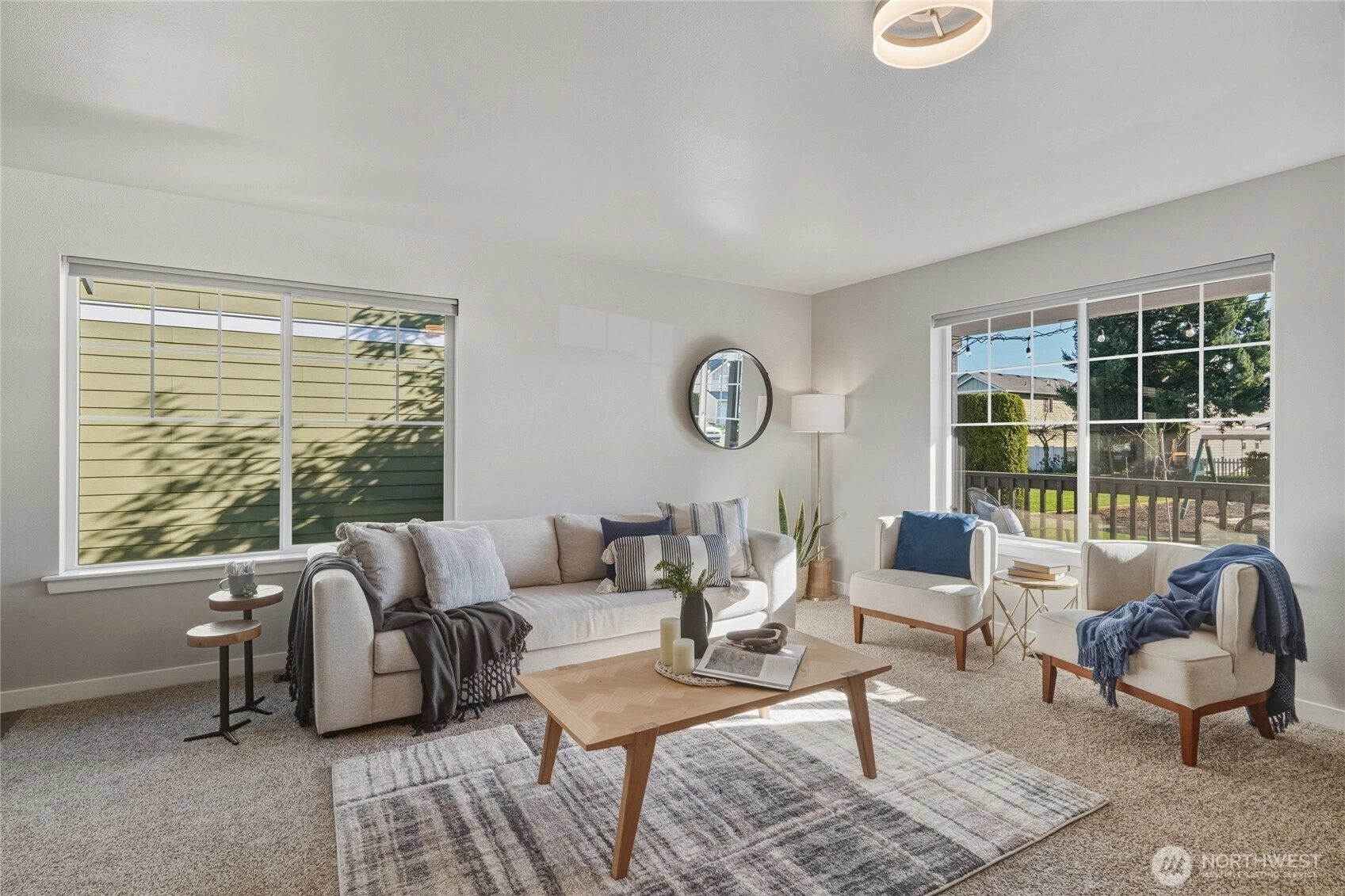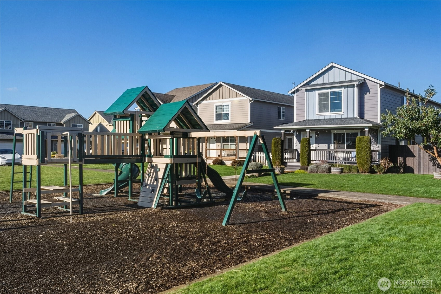 This charming Lynden home offers affordability, comfort, and privacy—w/ no shared walls and a thoughtful design that lives large. These fully detached stand-alone units provide the perks of single-family living with low-maintenance ease in a friendly community. Inside, enjoy a light-filled open-concept main floor with a spacious kitchen featuring quartz countertops, stainless steel appliances, and ample storage. The dining and living areas flow seamlessly, and a sliding glass door opens to a fully fenced patio and yard—perfect for pets, gatherings, or quiet outdoor moments. The primary suite is a true retreat w/ mountain views to the north, a walk-in closet, and en-suite bath. A large bonus space upstairs easily converts into a 4th bedroom, office, or playroom to suit your needs. Fresh interior paint, upgraded landscaping and fencing, and a 2-car attached garage with a man door to the yard add convenience. A covered front porch with southern sun exposure invites you to relax and connect with neighbors. Across from a community-maintained park with a playground and open green space, this home promotes outdoor living. Sidewalk-lined streets offer safe, scenic strolls, just minutes from Lynden’s schools, restaurants, and town center. Best of all, the HOA maintains the park and common areas—only $100/month for easy, worry-free living. Pre-inspected, move-in ready, and full of value, this home is a smart investment in space, lifestyle, and the pride of ownership.