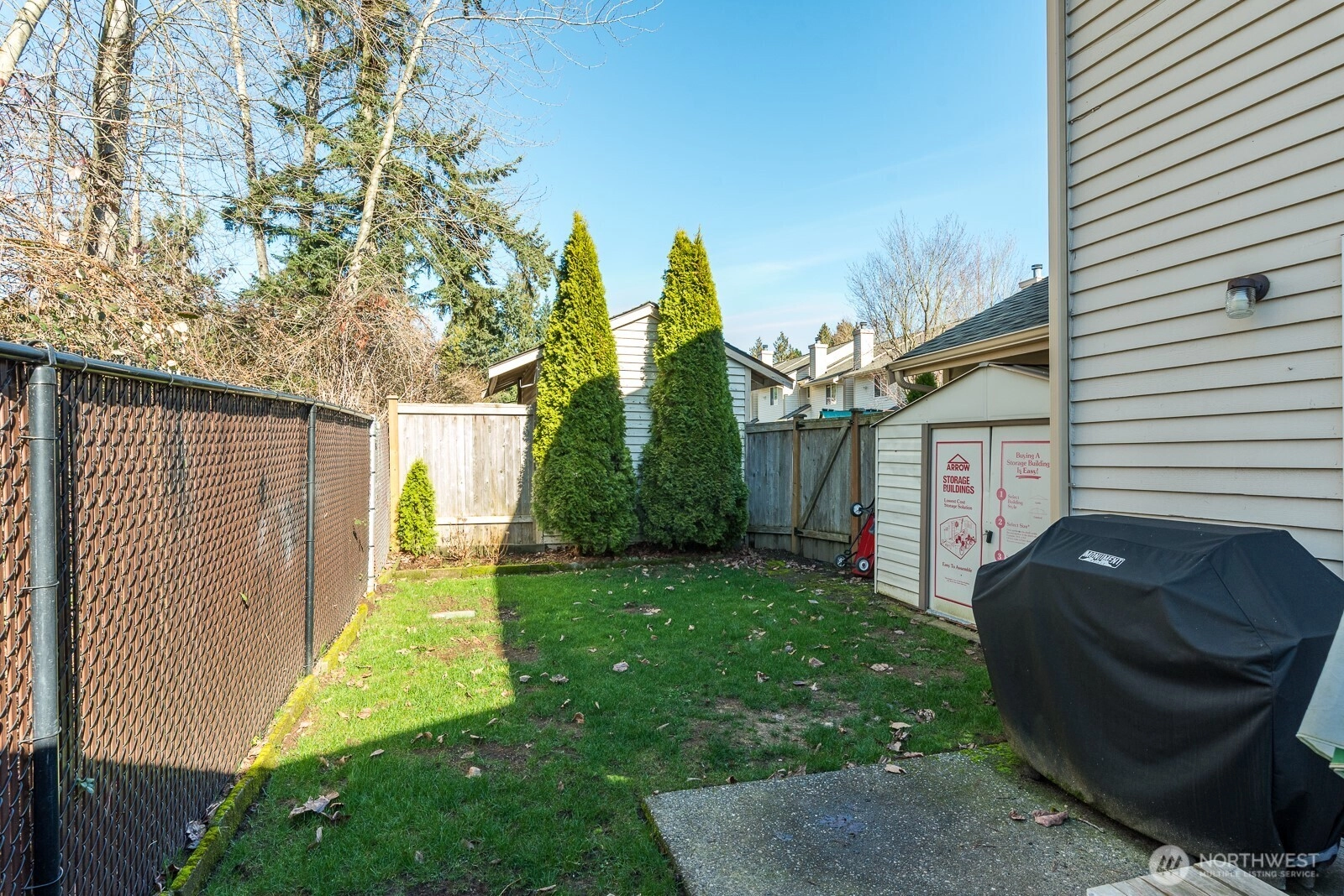 Beautifully updated private end-unit townhome offering rare privacy and functional outdoor space with a fully fenced patio, two storage sheds, and direct access to a large shared backyard area. The main level features a bedroom, hardwood floors, and a bright living room with a wood-burning fireplace, while the kitchen includes granite countertops and updated cabinetry. Upstairs offers two additional bedrooms with flexible use options. No rental cap provides flexibility for both owner-occupants and investors. Convenient I-5 access near shopping, parks, the Interurban Trail, Silver Lake, and McCollum Park, all within the Mukilteo School District. HOA dues include water, sewer, garbage, common area maintenance, two parking spaces including one covered, and mailboxes just outside the unit.