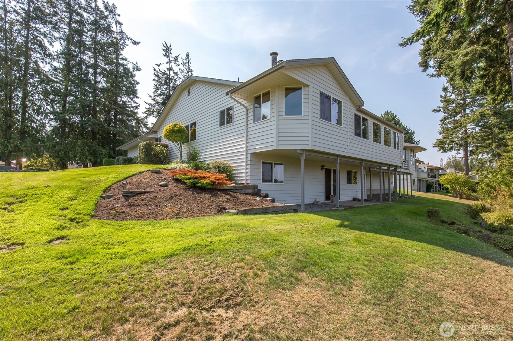 Well built and spacious condo in desirable Sunland! Low maintenace living with exterior taken care of by the HOA. Relax in the cozy living room complete with custom built-ins, or unwind in the enclosed sunroom, ideal for year-round enjoyment. Plenty of windows and skylights let the natural light in. The spacious kitchen features tile granite countertops, a double oven, a breakfast nook with a view and ample cabinetry. The private dining room right off the kitchen has built-in cabinets and a buffet with glass doors. Spacious primary bedroom with a low threshold shower. The finished downstairs area includes, a warm wood stove, direct outdoor access, a convenient bathroom and a mini bar with a sink — perfect for entertaining. Additional highlights include a utility sink and an abundance of cabinets in the garage, plus a convenient ramp for easy access. New double pane vinyl windows throughout the home, new exterior paint in 2024 and new roof in 2026! The neighborhood is a great spot for dog walking and meeting your neighbors! Community events at the club house and in the neighborhood. Sunland amenities include a seasonal pool, golf course, club house, tennis/pickle ball courts, beach cabana with beach access and RV storage (for an additional fee). Just a short drive to Sequim restaurants, stores, hiking trails and other local attractions. If you're looking for a private, quiet setting, look no further. This condo has it!