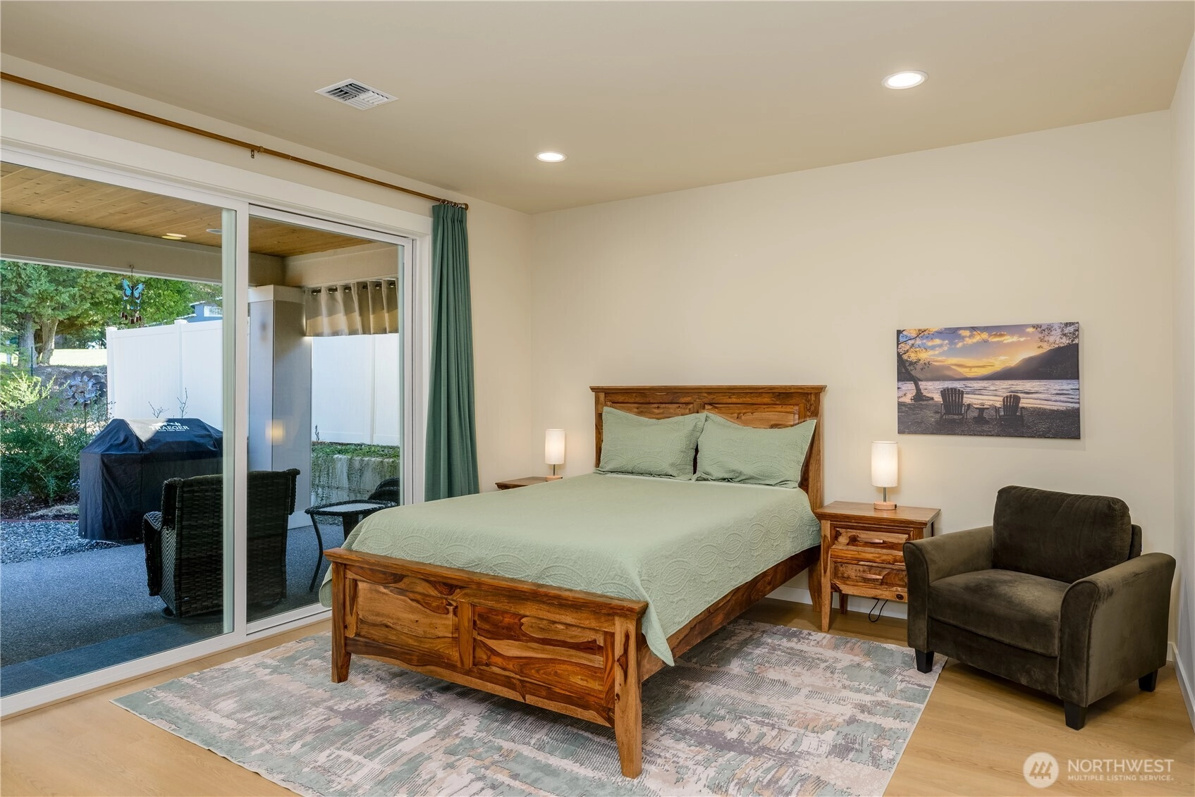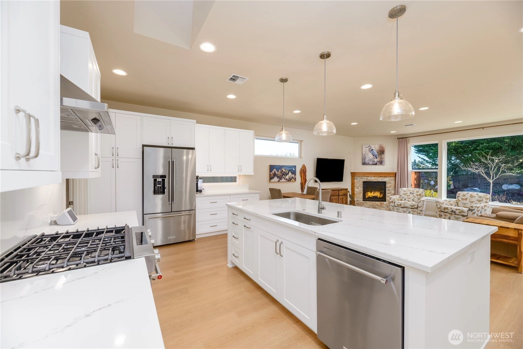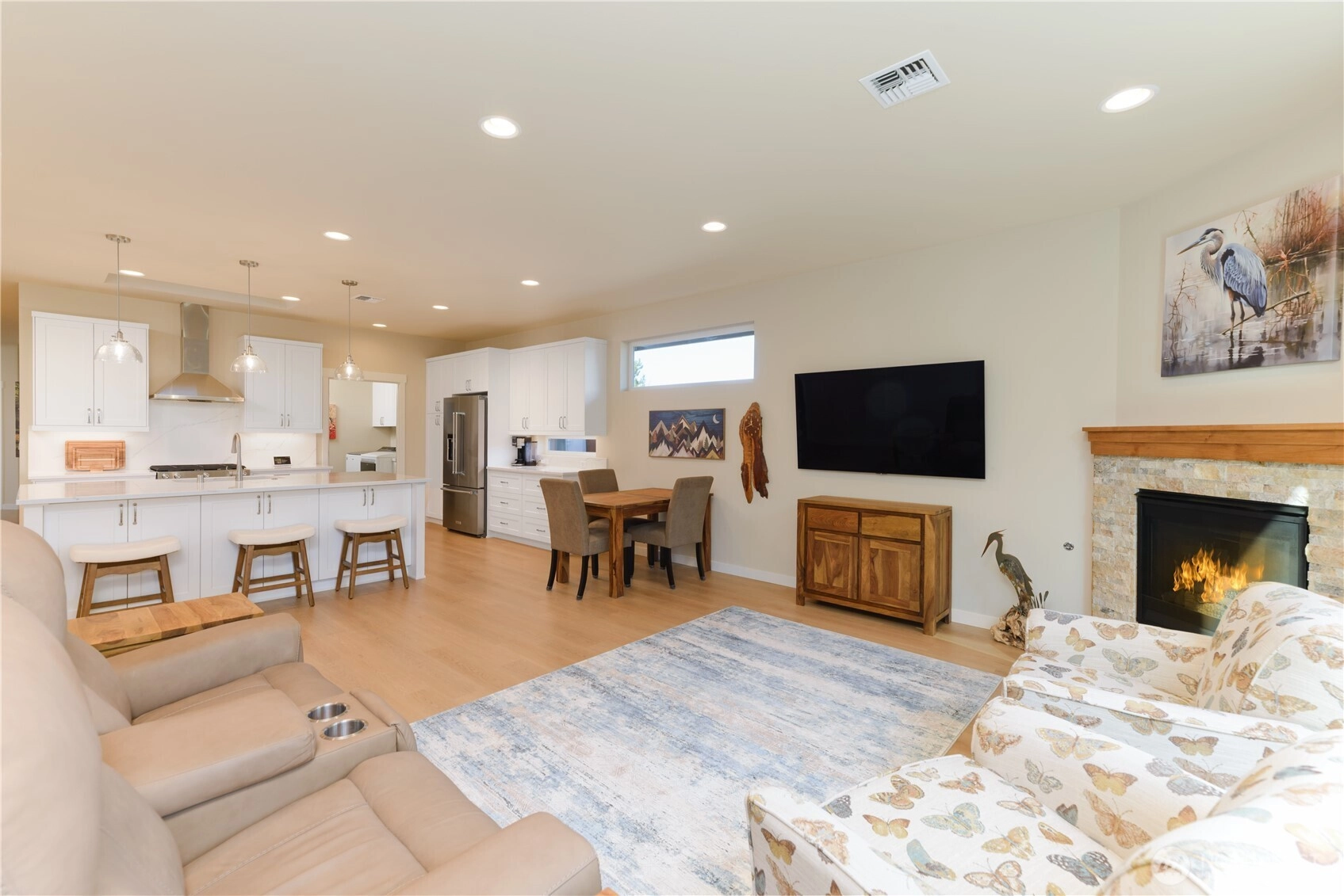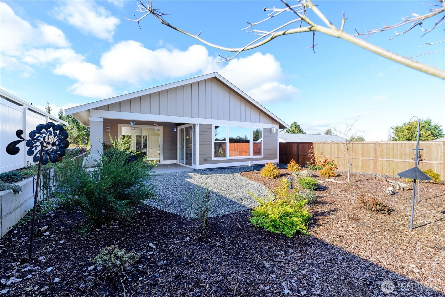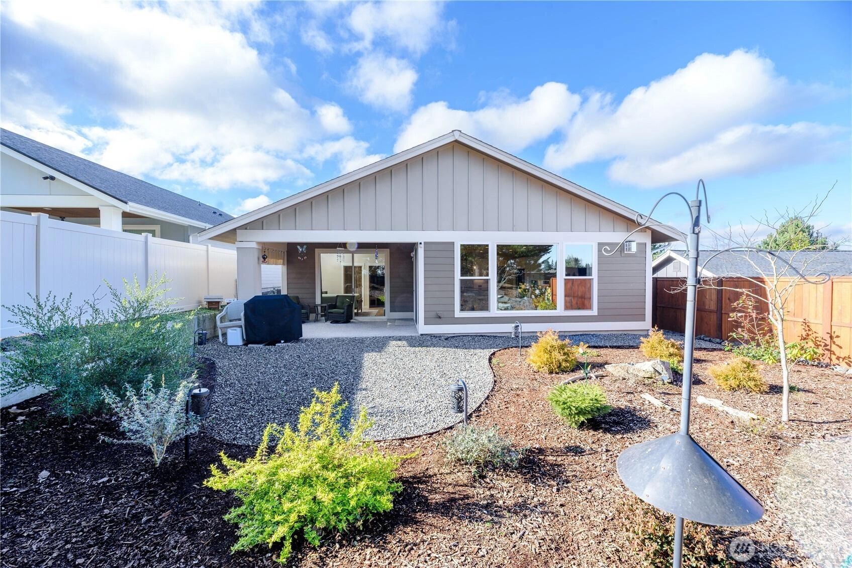 Beautiful Cedar Ridge home customized with fabulous upgrades throughout. Set on the largest, most private lot in the neighborhood, thisAnderson-built home is absolutely stunning. Spacious great room and a split floor plan that is ideal for any living situation. Gorgeous luxury vinylplank flooring throughout. Kitchen includes huge island w/quartz counters, European-style frameless cabinetry w/soft close drawers, a 5-burnerpropane stove, and a range hood. Large living room with an abundance of natural light, propane f/p, 9 ft ceilings, and a slider out to a private covered indoor/outdoor room w/gorgeous wood ceiling and a view out to your lovely fenced-in backyard. Large primary suite w/slider out to patio, large bathroom w/quartz counters, 2 sinks, large tile shower and heated towel rack. Two bedrooms situated on the opposite side of the home for maximum privacy and another full bathroom w/beautiful quartz counters. Big pantry/laundry room w/sink, fully insulated interior walls, wide hallways and no-steps throughout. Whole house generator w/transfer switch conveys. Large, flat driveway and HOA rules that allow for parking Class B RV. Irrigation water available for landscaping and two covered areas, front and back, to sit and enjoy the natural beauty. Served by Astound Cable, heat pump, hybrid water heater and recirculating hot water. $85/HOA dues allow for access to clubhouse w/exercise facilities &meeting room. Great walking trails throughout neighborhood!