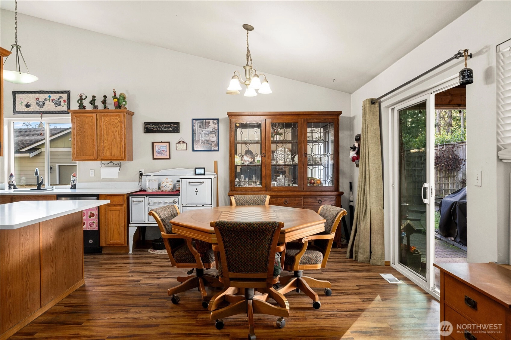 Welcome to Inlet Island at desirable Lake Tapps, where pride of ownership shines throughout this beautifully maintained rambler. Designed with an inviting open-concept layout and soaring vaulted ceilings, this home offers effortless single-level living paired with timeless comfort. The spacious kitchen features ample cabinetry, a pantry, and new quartz countertops, creating a clean, modern space that flows seamlessly into the dining and living areas. Vaulted ceilings continue through the living, dining, and family rooms, enhancing the sense of light and openness, while the cozy gas fireplace anchors the family room, perfect for relaxing evenings at home. The primary suite offers a peaceful retreat with a generous walk-in closet and a walk-in shower. Thoughtful updates and meticulous care are evident throughout. Set on a rare and usable .27-acre lot, the fully fenced yard provides ample room for entertaining, gardening, or simply enjoying the outdoors. A back deck extends your living space, and a storage shed/shop adds versatility for hobbies or additional storage. Residents of Inlet Island enjoy access to a private park and boat launch—embracing the Lake Tapps lifestyle year-round.