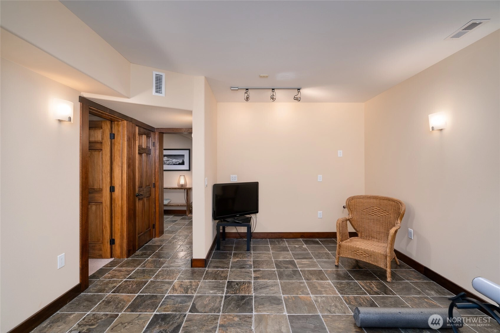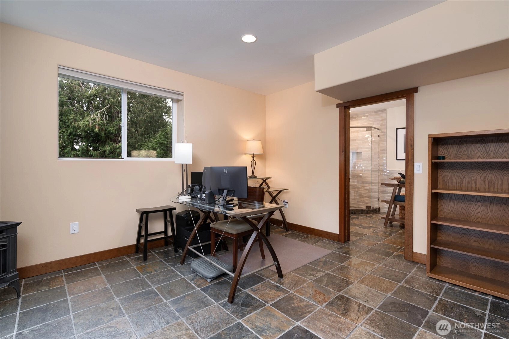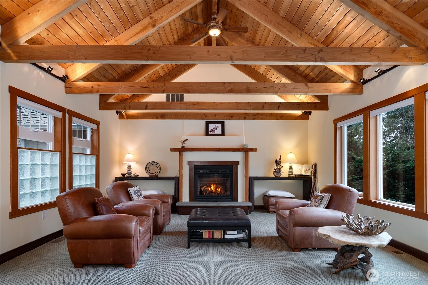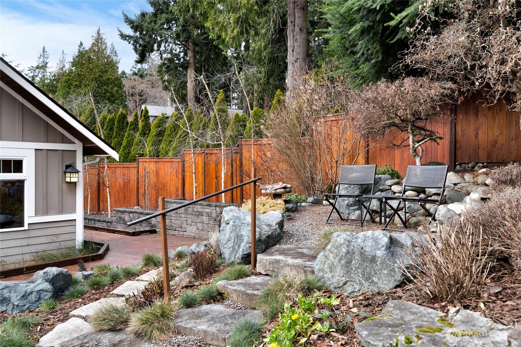 Stunning Pacific NW home showcases elegant cherry floors, creating a warm, inviting atmosphere. The interior is further enhanced by vaulted, wood-lined ceilings in the living rm featuring exposed beams that add a sense of spaciousness & architectural interest. Generous spaces on the main w/living rm, dining rm, den/office, Family rm, laundry & high-end kitchen w/premium appliances, including a Sub-Zero refrigerator & Viking six-burner stove & double ovens. For culinary enthusiasts, there is a dedicated Viking wok burner. Main flr primary suite is perfect for relaxation & comfort. Downstairs features slate tile floors, 2nd primary suite w/ensuite bath, 3rd bdrm, bonus rm & custom wine cellar. The .42 of an acre is a retreat for the senses.