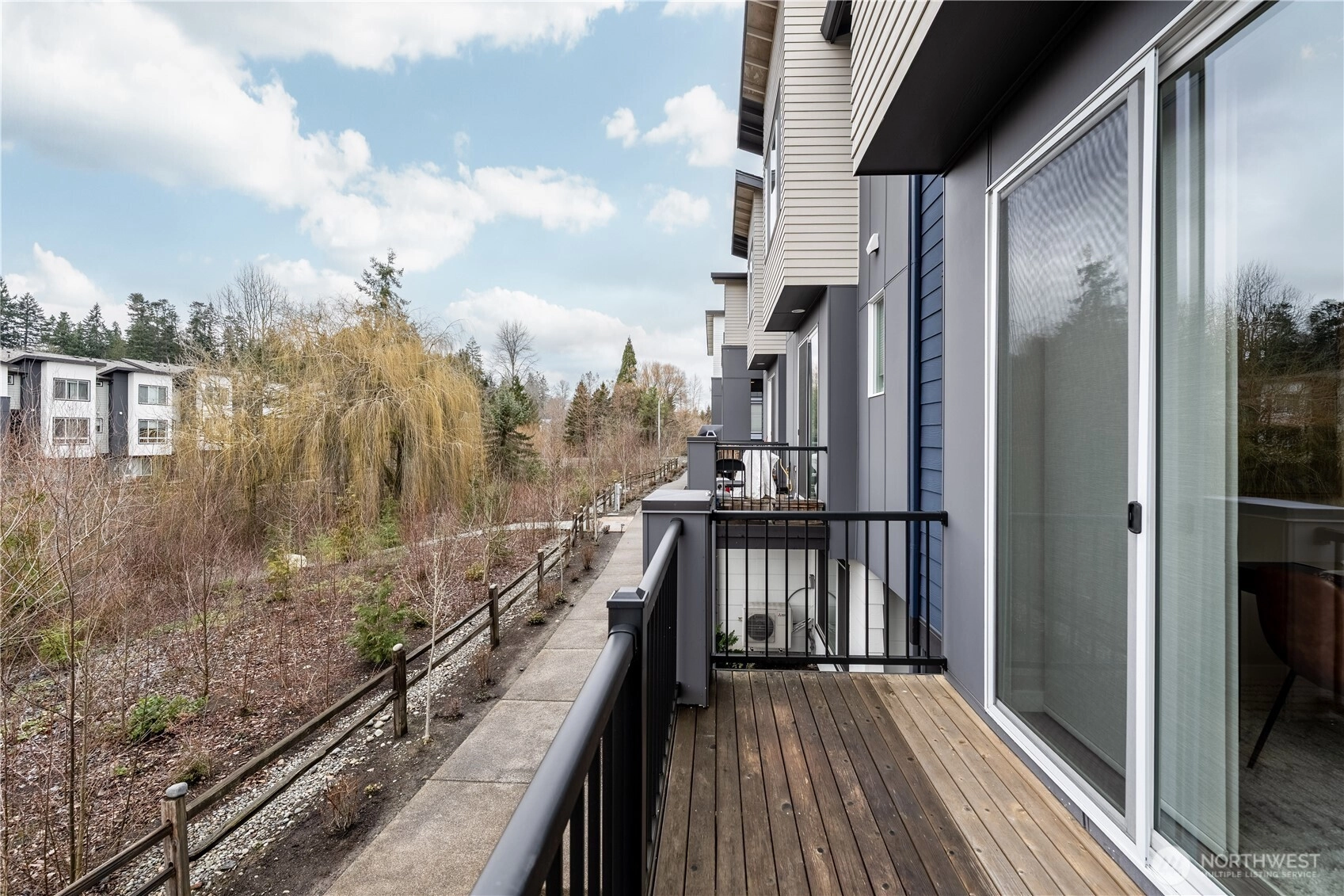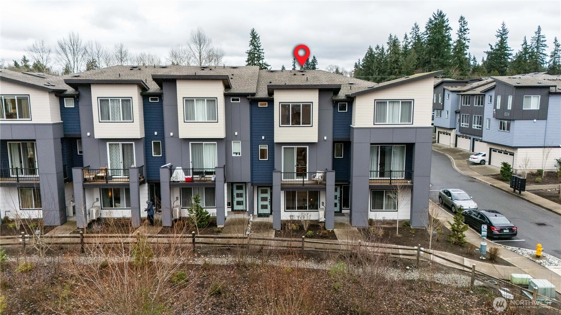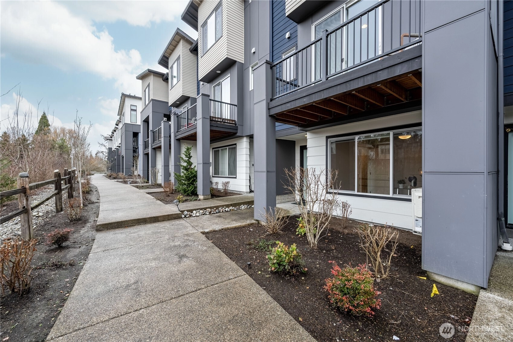 REFINED MODERN LIVING WITH TERRITORIAL VIEWS This stunning west-facing townhome, in pristine condition, borders a serene greenbelt—offering privacy, abundant natural light and a peaceful setting in a prime Bothell location. Built in 2021, it stands apart with more than $60,000 in thoughtful upgrades, high ceilings and spacious proportions rarely found in newer construction. Expansive windows illuminate the open-concept main level, highlighting hardwood/LVP floors and a beautifully appointed chef’s kitchen designed for everyday living and effortless entertaining. Generous living and dining spaces flow seamlessly, framed by tranquil greenbelt views and a private balcony extending the space outdoors. The lower level offers flexibility as a guest suite or home office with hardwood flooring and a full bath. Upstairs, the primary suite features a walk-in closet, ensuite bathroom and an extra mini-split for enhanced comfort. Additional highlights include upgraded designer finishes throughout the home, a two-car garage plus driveway parking and convenient guest parking nearby. Enjoy low-maintenance living minutes from shopping, parks and commuter routes within the quiet, well-managed Urbane Village community and the highly regarded Northshore School District. Impeccably maintained, thoughtfully designed and move-in ready—welcome home!