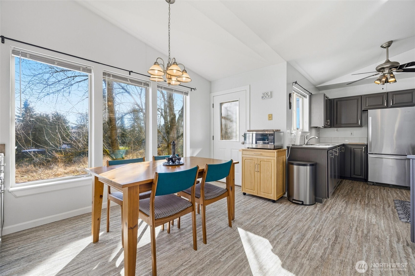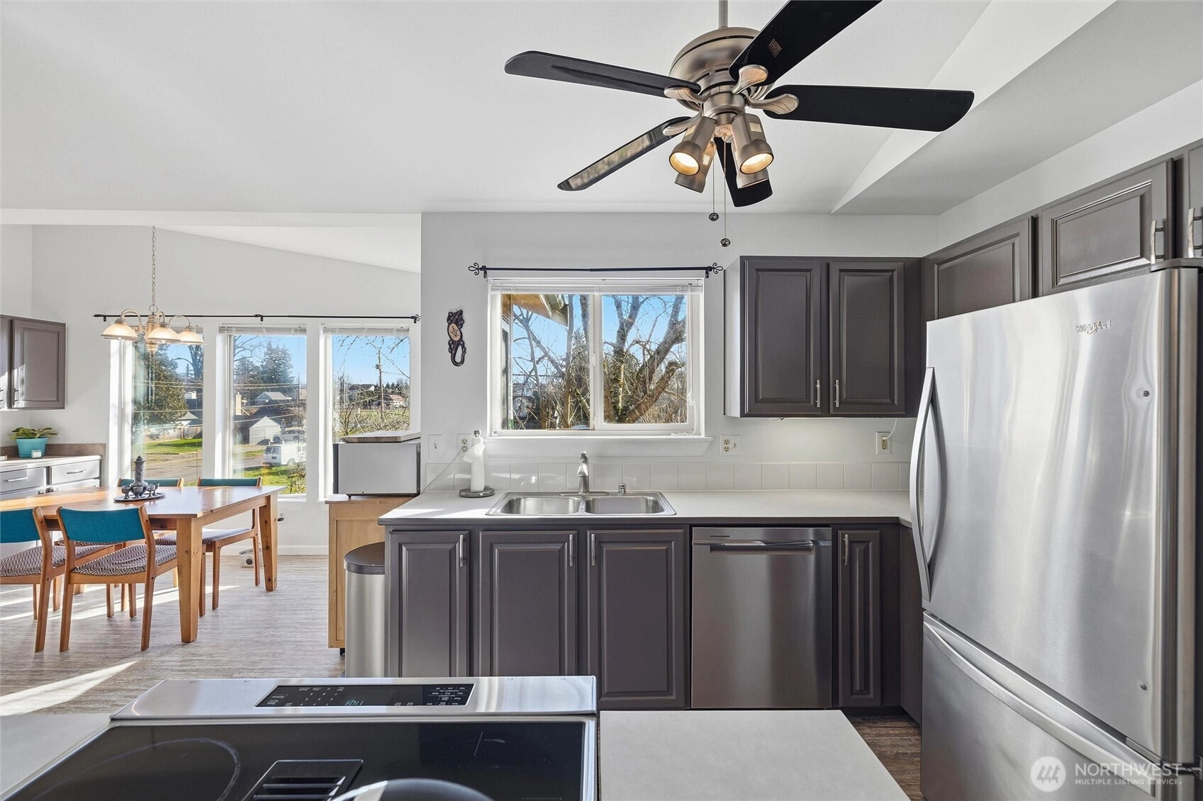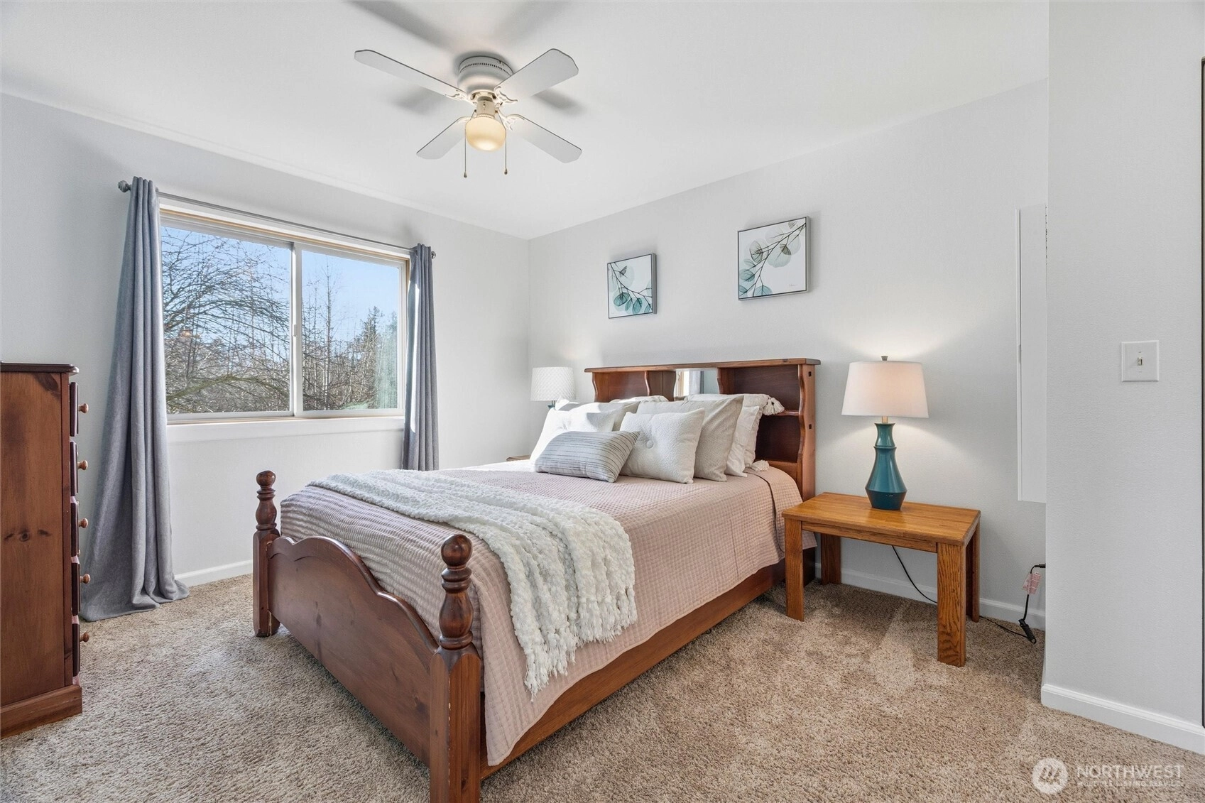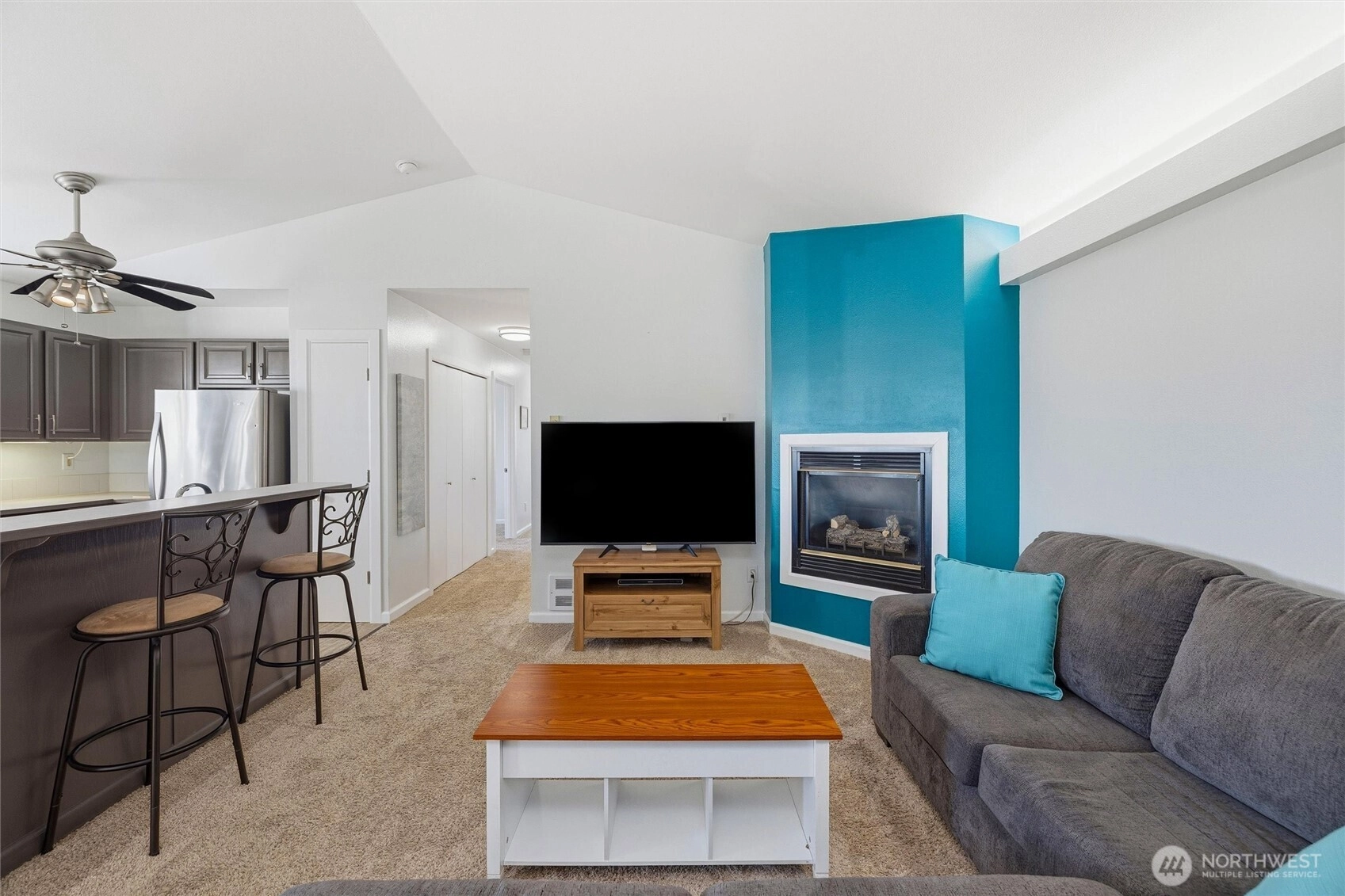 Stop renting and buy this 3-bed 2-bath condo with a private 2-car garage! Top-floor end unit with mountain views, a spacious kitchen with new stainless steel appliances, a tankless H20 heater, a gas fireplace, and laundry in the unit. The primary suite features a sunny southern exposure, a large closet, and an en suite bath. Recent updates include light fixtures, new exterior decking, all-new interior doors, and new trim & paint throughout. Watch the sunrise over Mount Baker from the east-facing deck and windows. New exterior railings are budgeted & scheduled for this spring. This turnkey condo is very well-maintained and tastefully updated. There are 3 designated parking spaces plus storage rooms in the back of the garage. This mostly owner-occupied complex has no rental cap. The HOA dues cover Water, Sewer, Garbage, Lawn Care, Insurance, Common Area Maintenance, and even electricity in the garage! All this in the heart of downtown Ferndale, within blocks of schools, restaurants, breweries, the library, parks, trails, shopping, and very near I-5. Don’t miss this great investment!