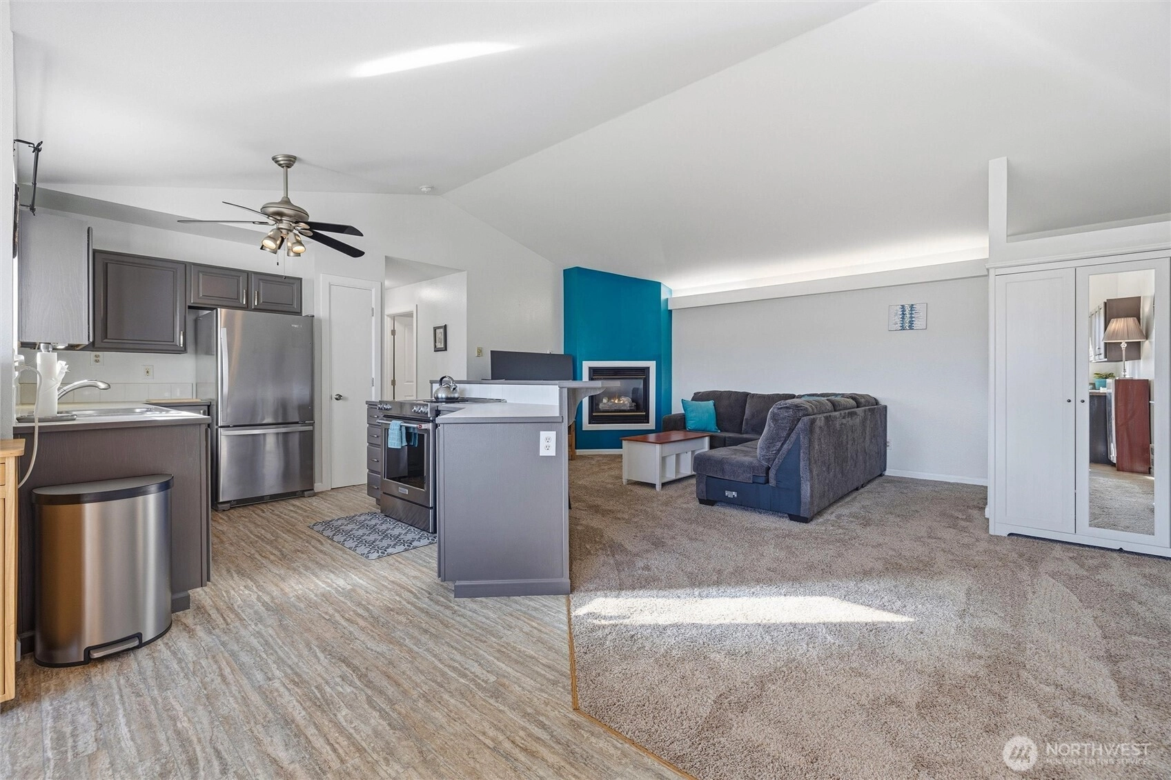 Cooking-Electric Dryer-Electric End Unit Fireplace Insulated Windows Penthouse Primary Bathroom Top Floor Vaulted Ceilings Washer Water Heater