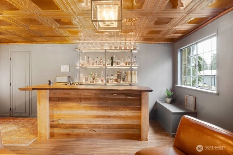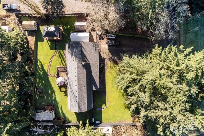 Thoughtfully updated 3-bedroom, 2.5-bath, two-story home on a shy half acre that feels like a private retreat, yet is conveniently close to amenities. Surrounded by mature landscaping and trees, including a peaceful pine grove in the front yard, this property offers privacy, space, and comfort. Inside you’ll find new laminate wood flooring and tasteful updates throughout. The updated kitchen features display cabinets, open shelving, generous counter and cabinet space, stainless steel appliances, a Bosch ultra-quiet dishwasher, and a built-in microwave drawer. Bespoke door overlays with new black hardware add custom character. The upstairs primary suite provides added privacy and includes double closets, a ceiling fan, and an updated en-suite bath with a large step-in shower and ample storage. Two additional bedrooms and a full bathroom are conveniently located on the main floor. A spacious bonus room has been transformed into a vintage-inspired speakeasy bar with a copper-tone tin ceiling—perfect for entertaining. Outdoor living includes large deck, brand-new gazebo, stamped concrete patio, two storage sheds, and gated R/V parking. Recently treated roof includes a transferable 3-year warranty and the seller is offering a 1-year home warranty.