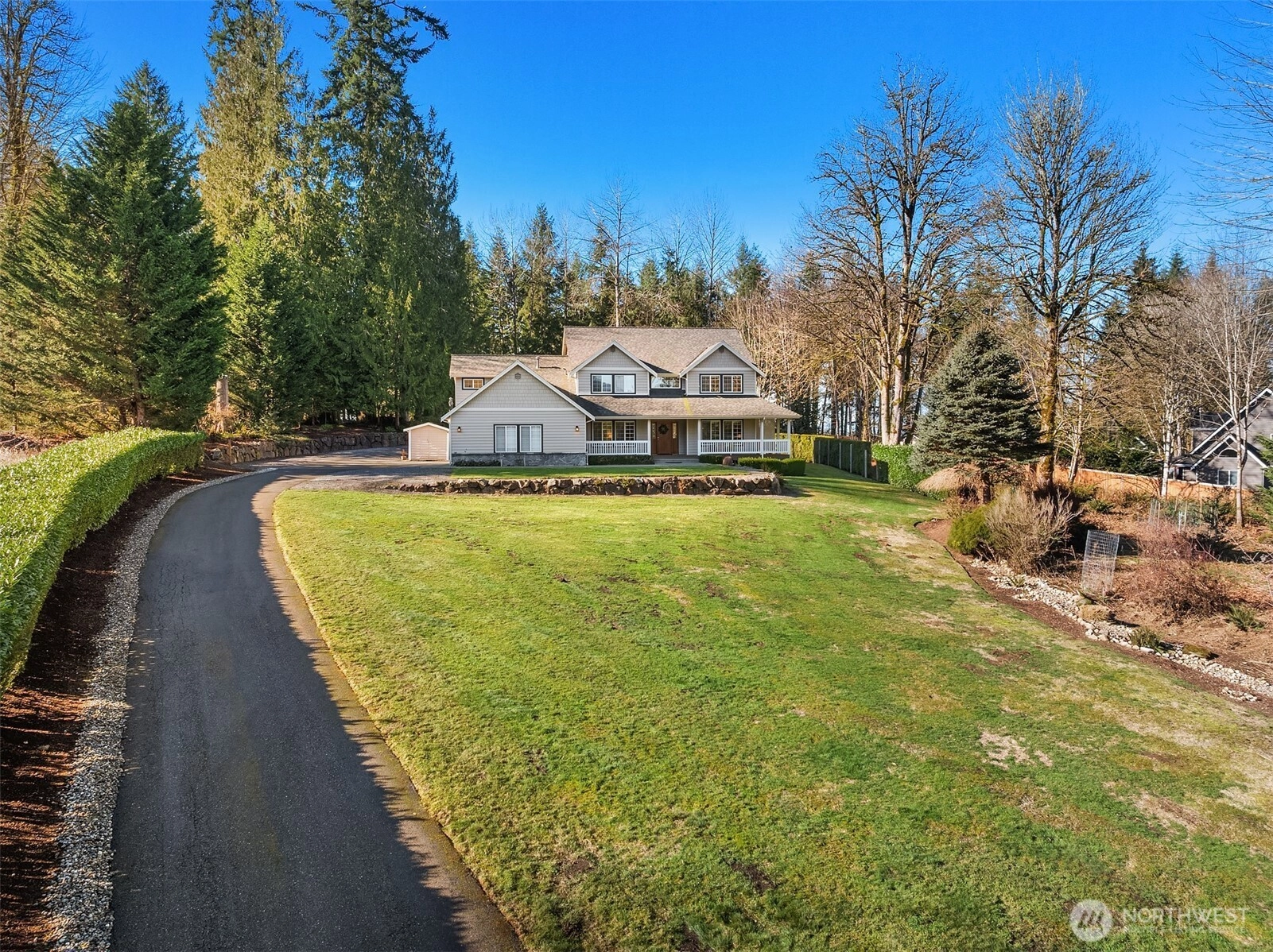Attention country loving, auto enthusiasts or hobbyists! Move-In ready Lake Joy classic country home with 4-bay shop. Sited on 2.44 scenic acres and featuring beautiful mountain and territorial view, this 3,130 SF home is lovingly maintained and offers 4 BD, 2.5 Bath and Den/Office. The main level offers formal & casual living spaces with living room, dining room w/French doors leading to the patio, large open-concept family room with vaulted ceilings & fireplace adjacent to the kitchen w/breakfast nook and walk-in pantry. The upper-level offers 4 good size bedrooms, including a spacious primary suite with walk-in closet and 5-piece bath. Move-in ready with all new interior paint plus newly refinished hardwood floors. There is no shortage of storage space here with a 3 Car attached Garage plus a detached 4 Car Garage/Shop with pellet stove & car lift & 3 sheds. Plenty of room for all your toys and hobbies! Tons of extra parking and easy front or back access to the property. Exterior living area includes a large covered patio and covered country porch to enjoy the view. This sweet property is located just around the corner from the public Lake Joy access and only minutes to miles of trails for walking, biking, riding, or just enjoying nature. Be sure to add this to your list of homes to tour if you are a "car buff", hobbyist, or just want to enjoy the good country life surrounded by nature. Easy access to all amenities. Only 10-15 minutes to Duvall or Carnation. Pre-inspected.