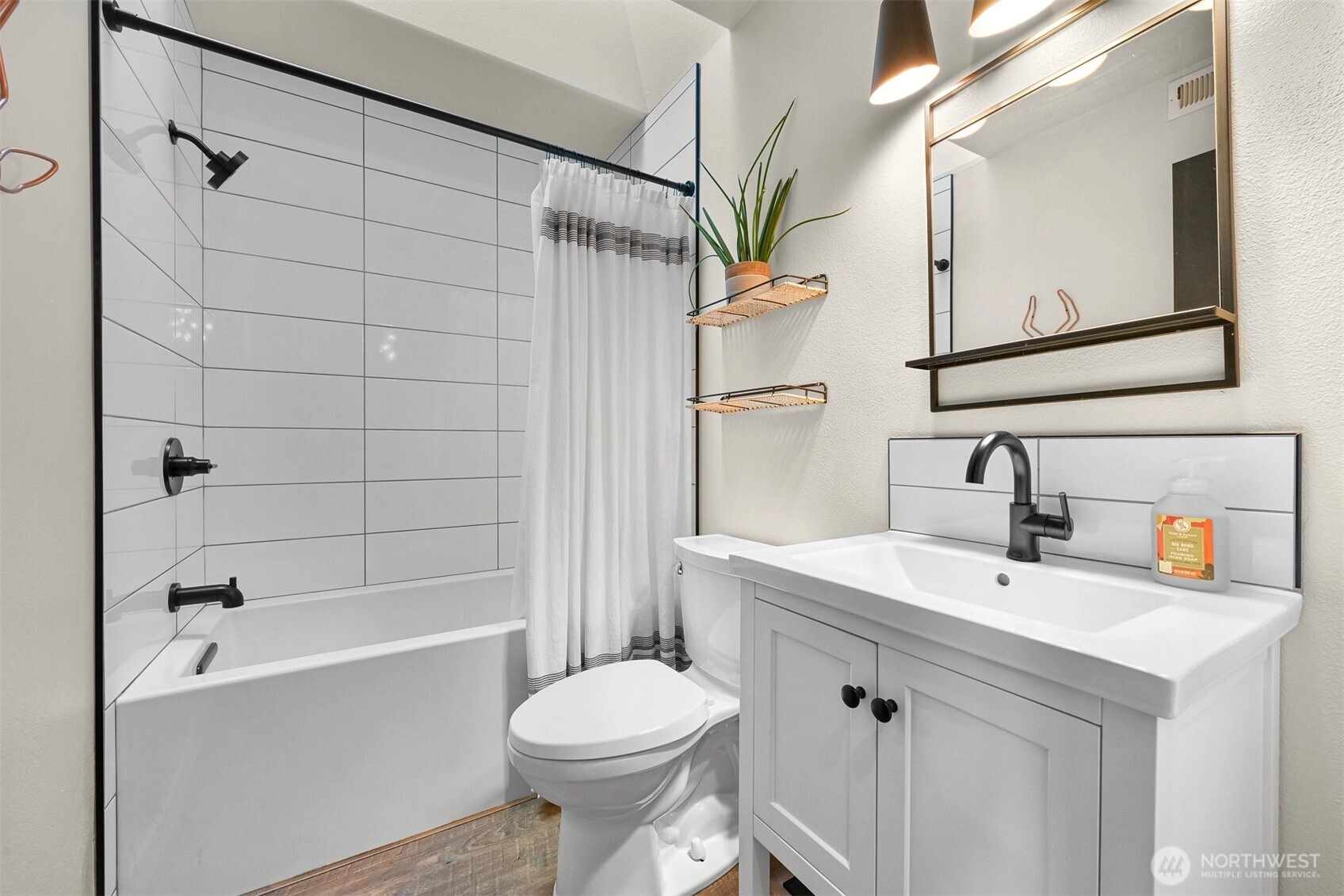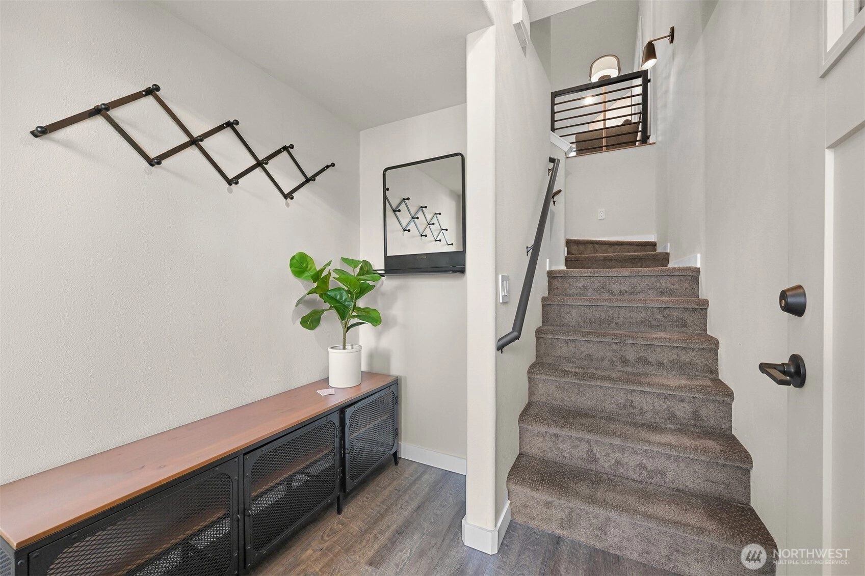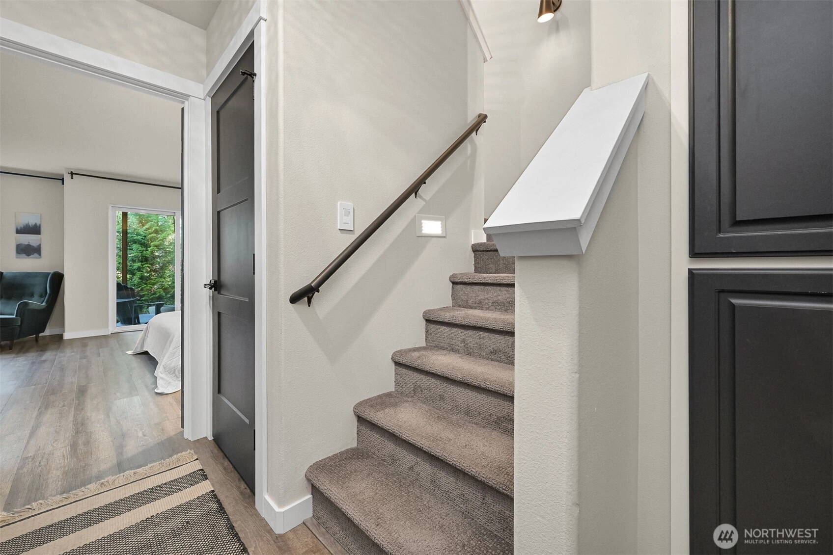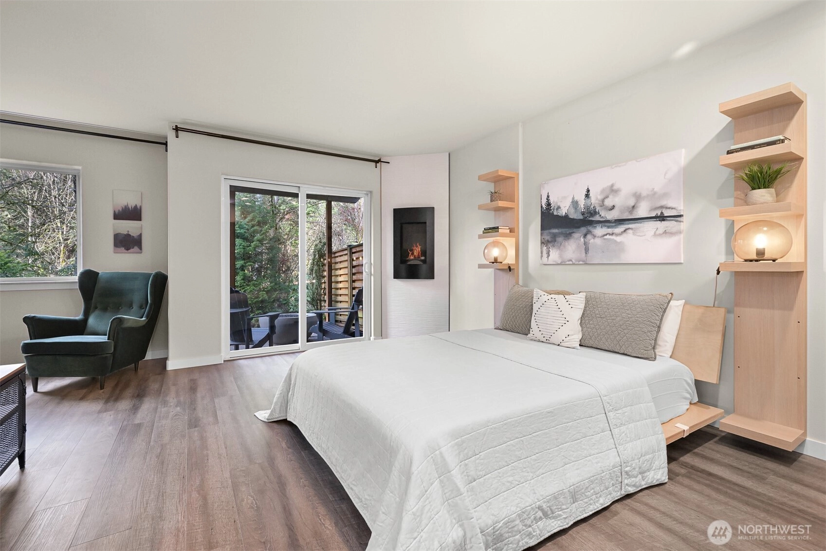 Tucked quietly along Rosewood Lane, bordering the Interurban Trail & Padden Creek greenbelt, this beautifully remodeled Fairhaven condominium lives like a private retreat. Occupying two levels & featuring vaulted ceilings with generous skylights bathing the main living space in natural light. The exquisitely updated kitchen anchors the home with clean lines & thoughtful finishes, flowing effortlessly into the dining & living areas. A gas fireplace on each level creates warmth & atmosphere year round. The upper deck overlooks the protected Padden Creek nature corridor. It's a peaceful, elevated perch that feels miles from town, yet Fairhaven Village is just around the bend. The layout offers flexibility with 3 bedrooms including a spacious primary suite complete with a designer bath featuring a sleek glass shower, modern vanity, & walk-in closet. Two additional bedrooms & a full bath upstairs provide separation for guests or office space. Outside, a covered patio courtyard with gas fire feature creates an intimate gathering space framed by ferns, cedar fencing, and Northwest greenery. This move-in ready home blends indoor comfort with outdoor connection. Additional highlights include an attached private garage, newer furnace, artfully updated fixtures, & a well managed HOA with 100% owner occupancy. With direct access to trails, proximity to Fairhaven’s shops & restaurants, & a setting that feels both serene and connected, this is Pacific Northwest living at its best.