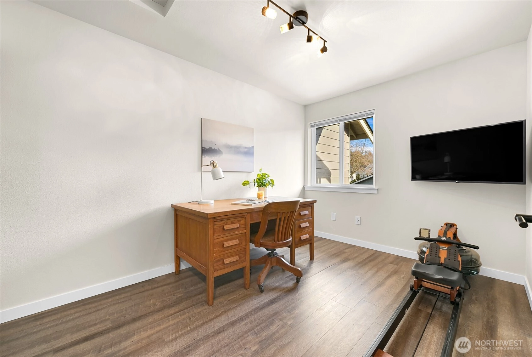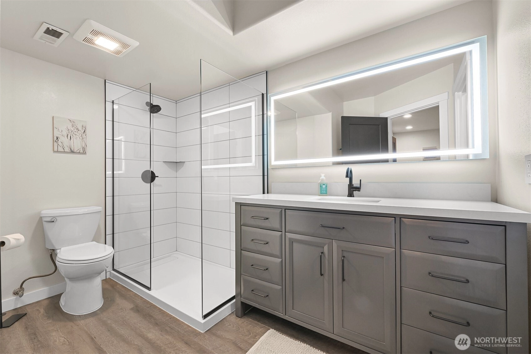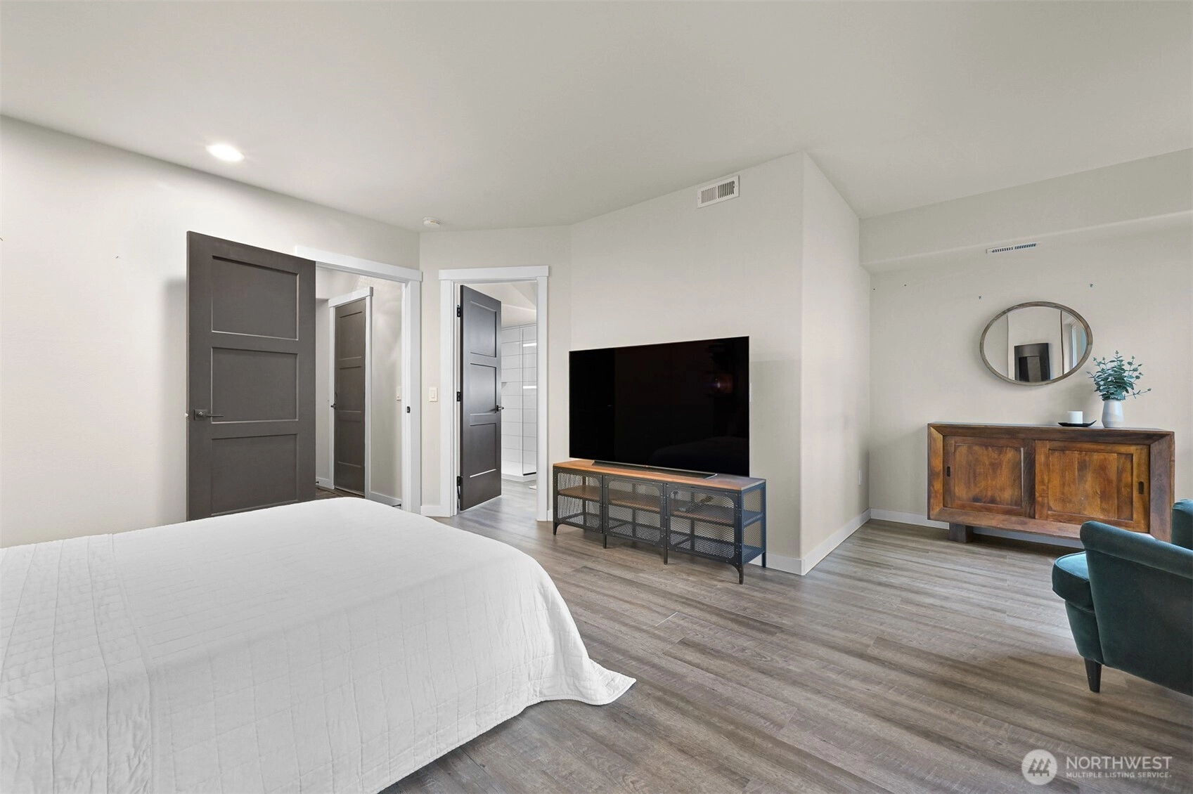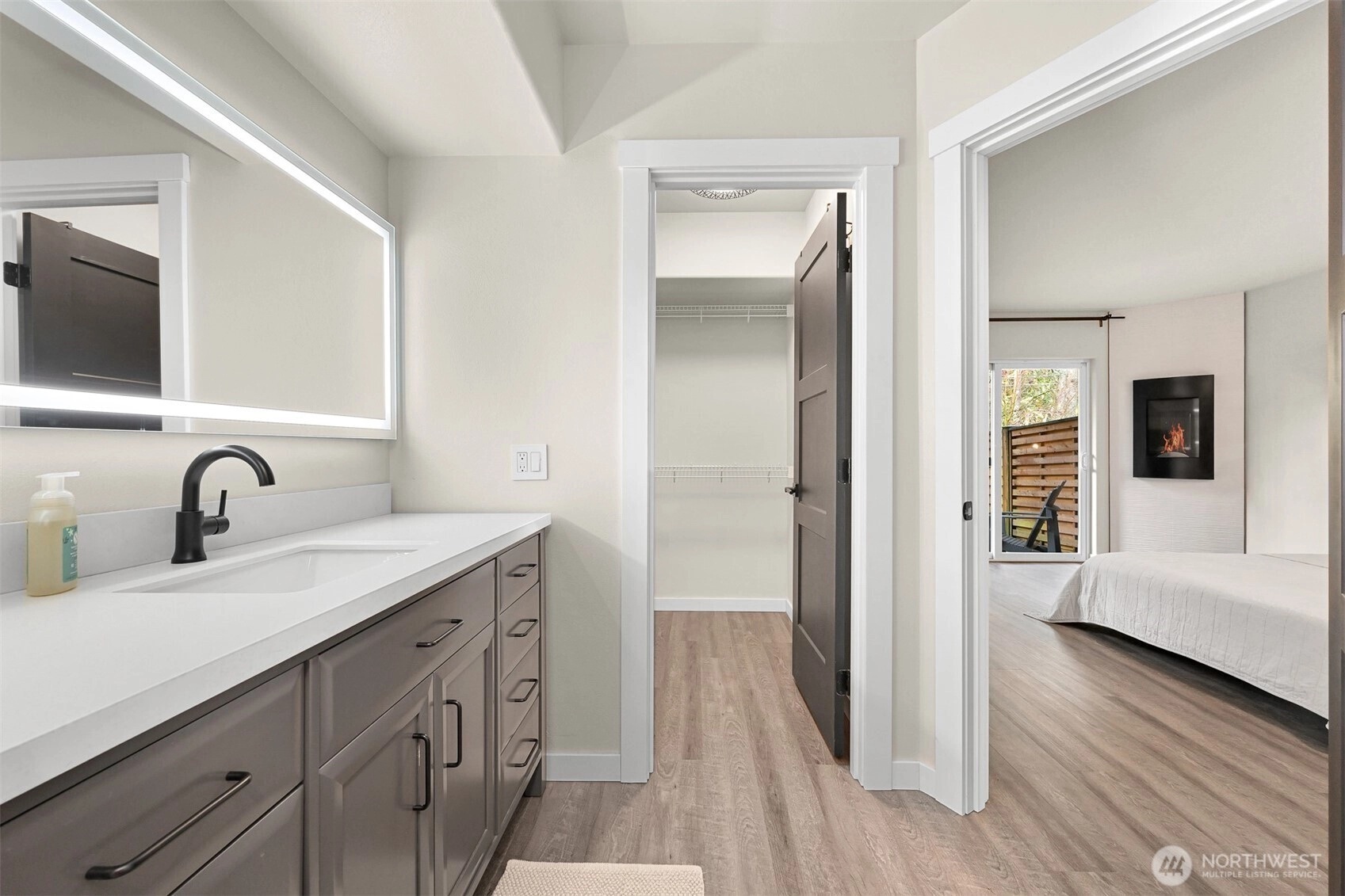 Tucked quietly along Rosewood Lane, bordering the Interurban Trail & Padden Creek greenbelt, this beautifully remodeled Fairhaven condominium lives like a private retreat. Occupying two levels & featuring vaulted ceilings with generous skylights bathing the main living space in natural light. The exquisitely updated kitchen anchors the home with clean lines & thoughtful finishes, flowing effortlessly into the dining & living areas. A gas fireplace on each level creates warmth & atmosphere year round. The upper deck overlooks the protected Padden Creek nature corridor. It's a peaceful, elevated perch that feels miles from town, yet Fairhaven Village is just around the bend. The layout offers flexibility with 3 bedrooms including a spacious primary suite complete with a designer bath featuring a sleek glass shower, modern vanity, & walk-in closet. Two additional bedrooms & a full bath upstairs provide separation for guests or office space. Outside, a covered patio courtyard with gas fire feature creates an intimate gathering space framed by ferns, cedar fencing, and Northwest greenery. This move-in ready home blends indoor comfort with outdoor connection. Additional highlights include an attached private garage, newer furnace, artfully updated fixtures, & a well managed HOA with 100% owner occupancy. With direct access to trails, proximity to Fairhaven’s shops & restaurants, & a setting that feels both serene and connected, this is Pacific Northwest living at its best.