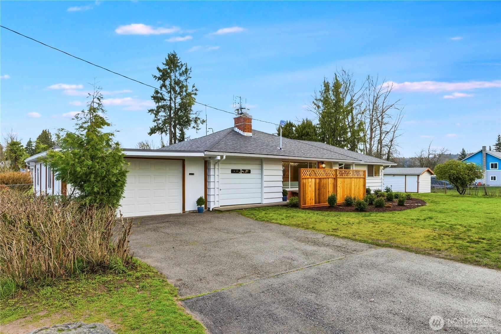 Come fall in love! Available to the market for the first time in several decades, this sweet rambler offers so many features for its new owner. Make favorite meals in the new kitchen, with new cupboards, countertops, flooring, and appliances. The home also features beautiful, newly refinished original hardwoods, fresh interior paint, a wood burning fireplace, a brand new roof, and a new electrical panel. Looking for garage space? Bring your hobbies, recreational vehicles, and tools – plenty of space in the 832 sq ft of garage bays. Come relax on the enormous, covered back deck overlooking the yard, a place to enjoy anytime of the year. Sited on a generous .44 acre lot, fully level and fenced, there are many possibilities for gardening, play, an ADU, RV parking, or a dream shop! A side vehicle gate to the backyard allows access, and the cement slab has already been done for you. Septic has passed inspection. Easy access to amenities and freeways. This property is a rare find! Come and make it yours.