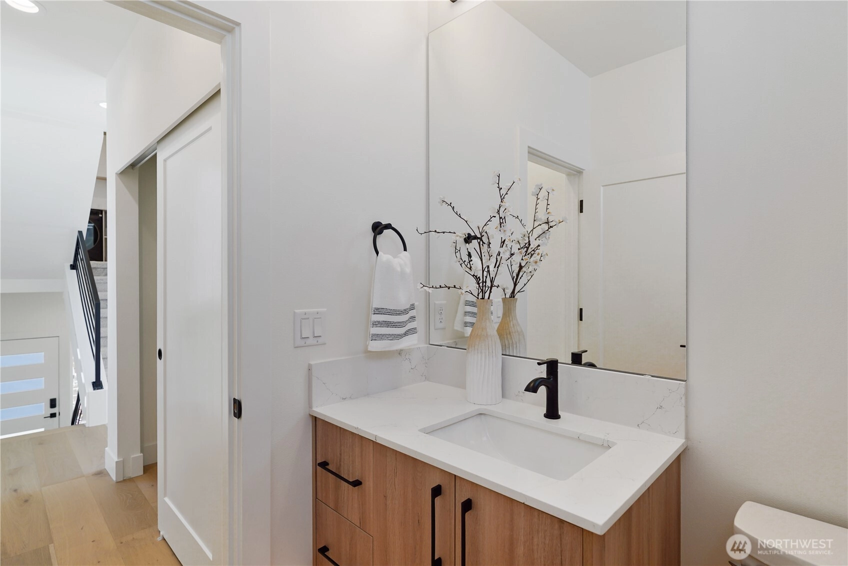 Exquisite living in Highland Park, West Seattle! Stunning 2025-built 3bd, 2.5ba home, one of four unique units, radiates luxury. Chef’s kitchen dazzles w/ custom cabs, quartz counters & pantry. Light-filled open-concept main flr boasts vaulted ceilings, eng. hardwood & custom lighting. Primary suite stuns w/ private deck & 5-pc spa bath w/ heated flrs, soaker tub, dual rain shower, designer tile, dbl vanity & custom closet. Two bdrms, full ba & family rm down; utility rm & pwdr add ease. Ductless mini-splits in every rm ensure comfort. Exterior w/ lush landscaping, fencing & cozy side patio deck. EV-ready parking, no HOA. Walkable Highland Park offers vibrant cafes, parks & rapid transit for effortless city access.