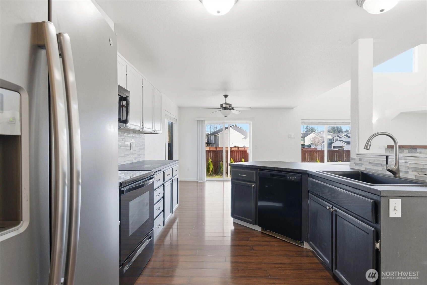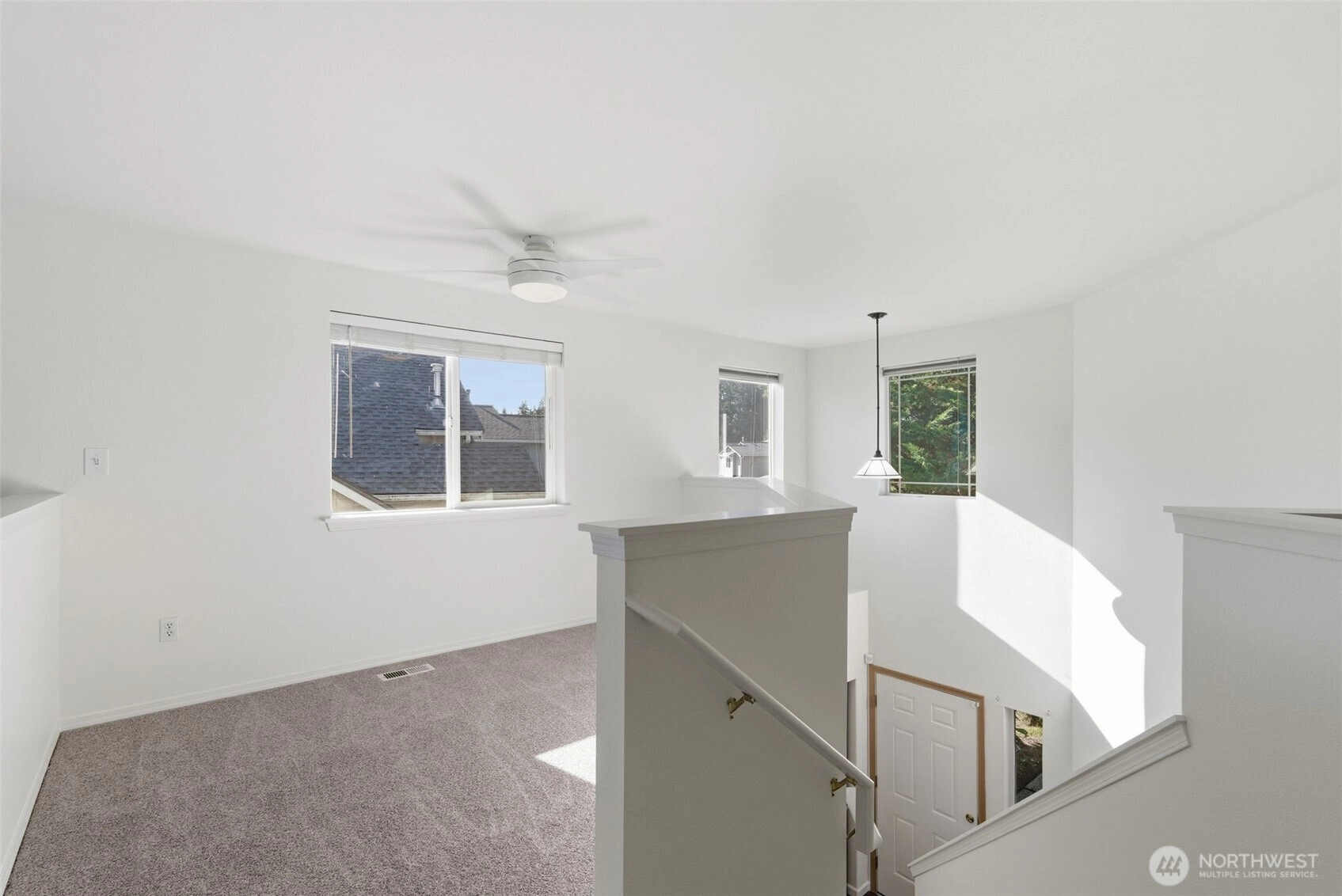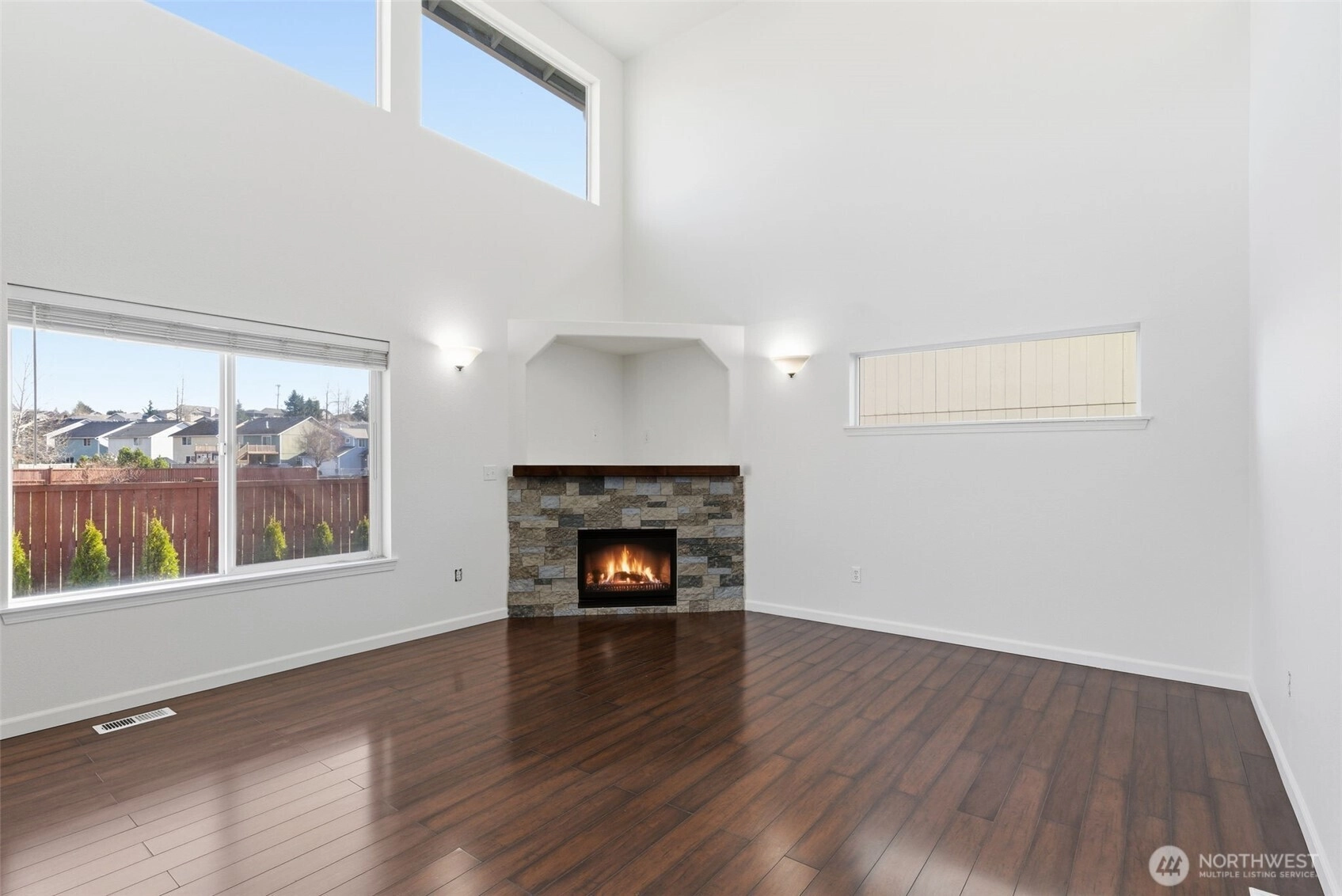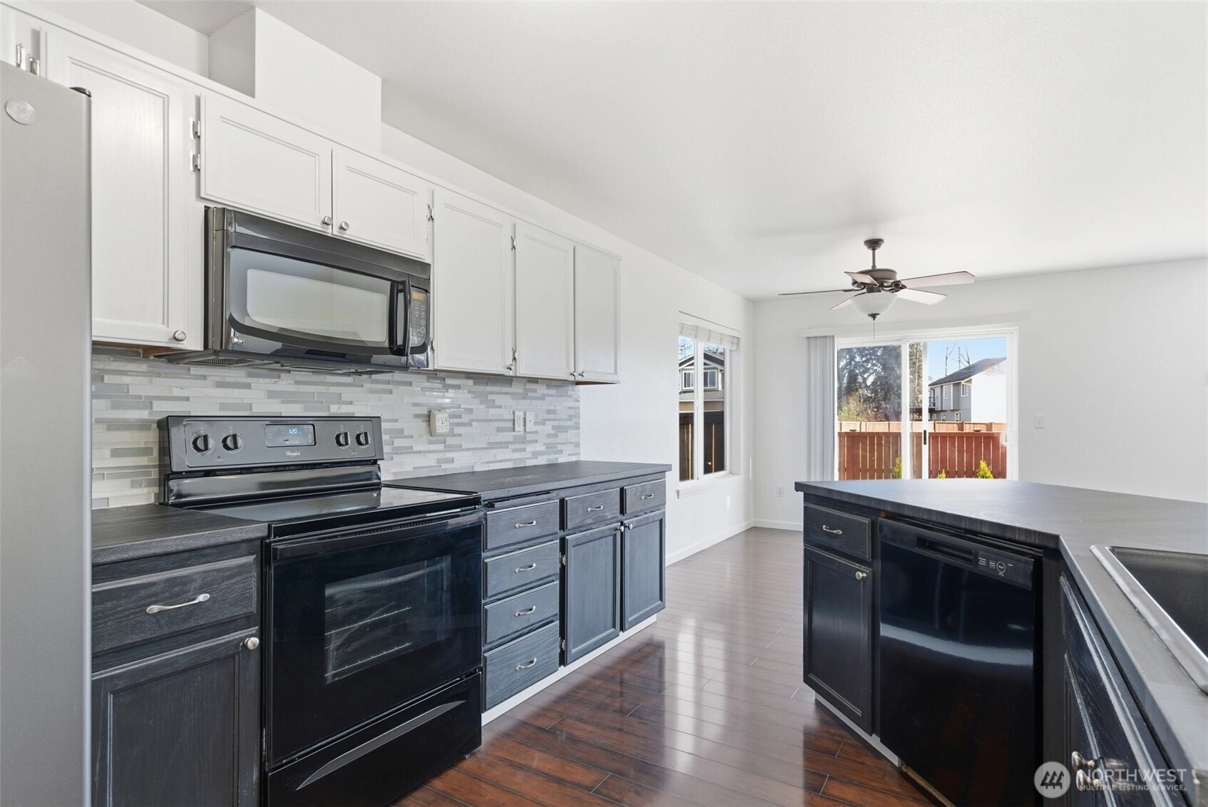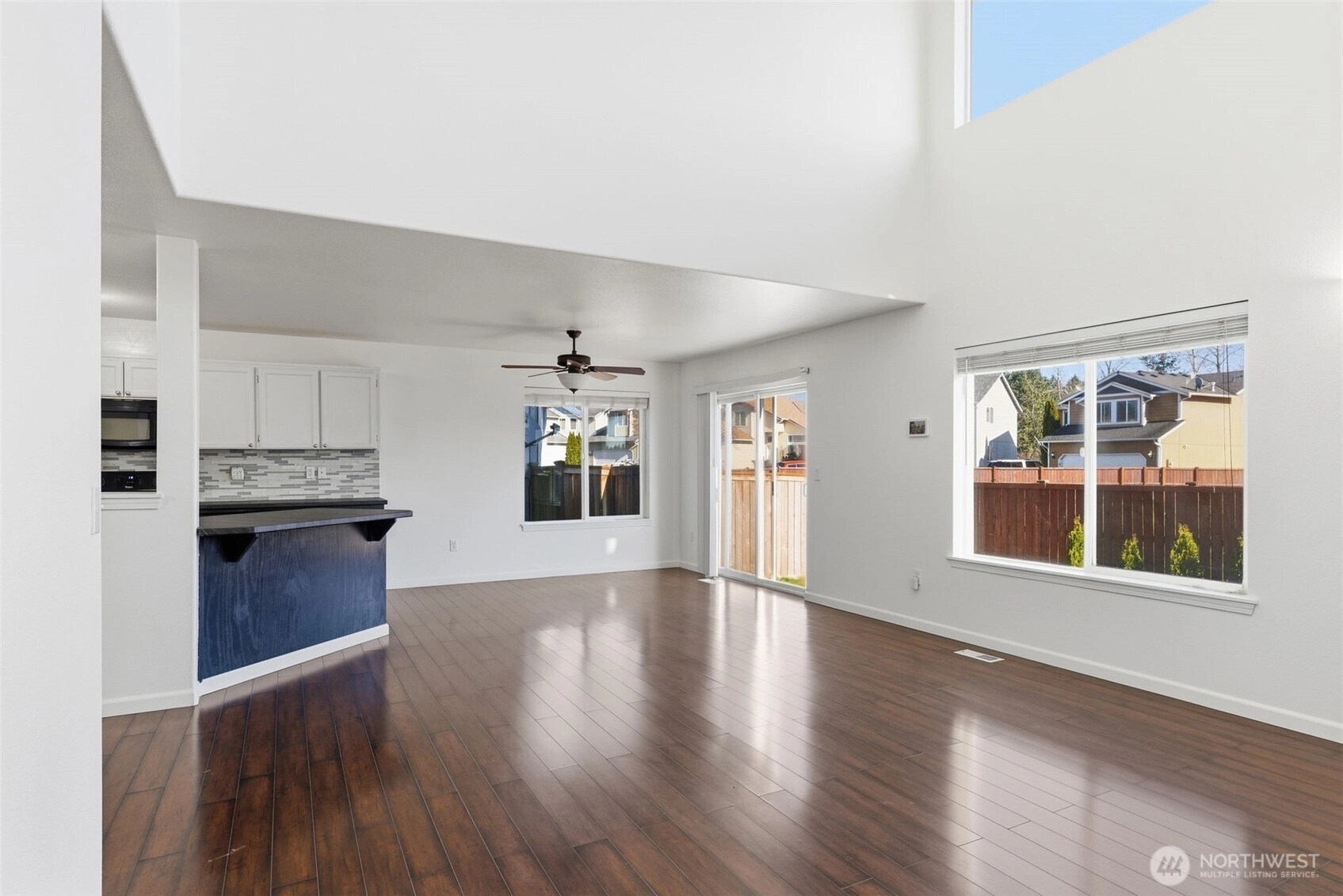 Beautifully refreshed home in the desirable gated community of Crescent Pond offering 3 bedrooms, 2.5 baths and 1,838 square feet of thoughtfully designed living space. The light-filled great room is anchored by a stunning gas fireplace and flows seamlessly into the open-concept kitchen and dining area, creating the perfect space for everyday living and entertaining. The main level features a versatile office that can easily serve as a 4th bedroom, while the spacious upstairs loft/bonus area provides flexible space for a media room, playroom, or additional home office.The chef’s kitchen is equipped with abundant counter and prep space, a walk-in pantry, and a welcoming eating area ideal for gatherings. Recent upgrades include a newer roof, fresh interior paint throughout, and durable laminate flooring across the main level, offering a clean, modern, move-in ready feel. Step outside to a large, fully fenced backyard—perfect for pets, play, gardening, or relaxing summer evenings. Residents enjoy community amenities including a playground and park, all within the security of a gated setting. Conveniently located with easy access to JBLM, major highways, shopping, dining, and everyday essentials, this home combines comfort, updates, and location in one exceptional opportunity.