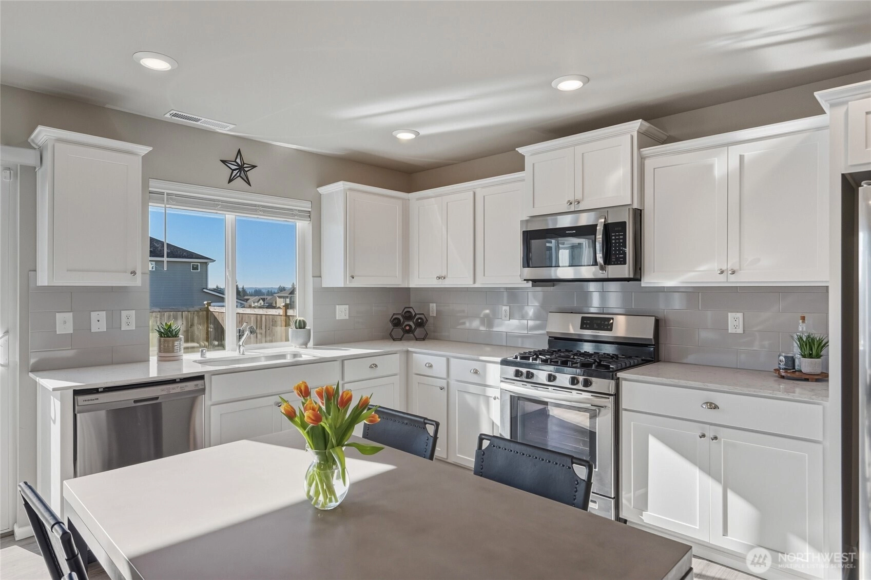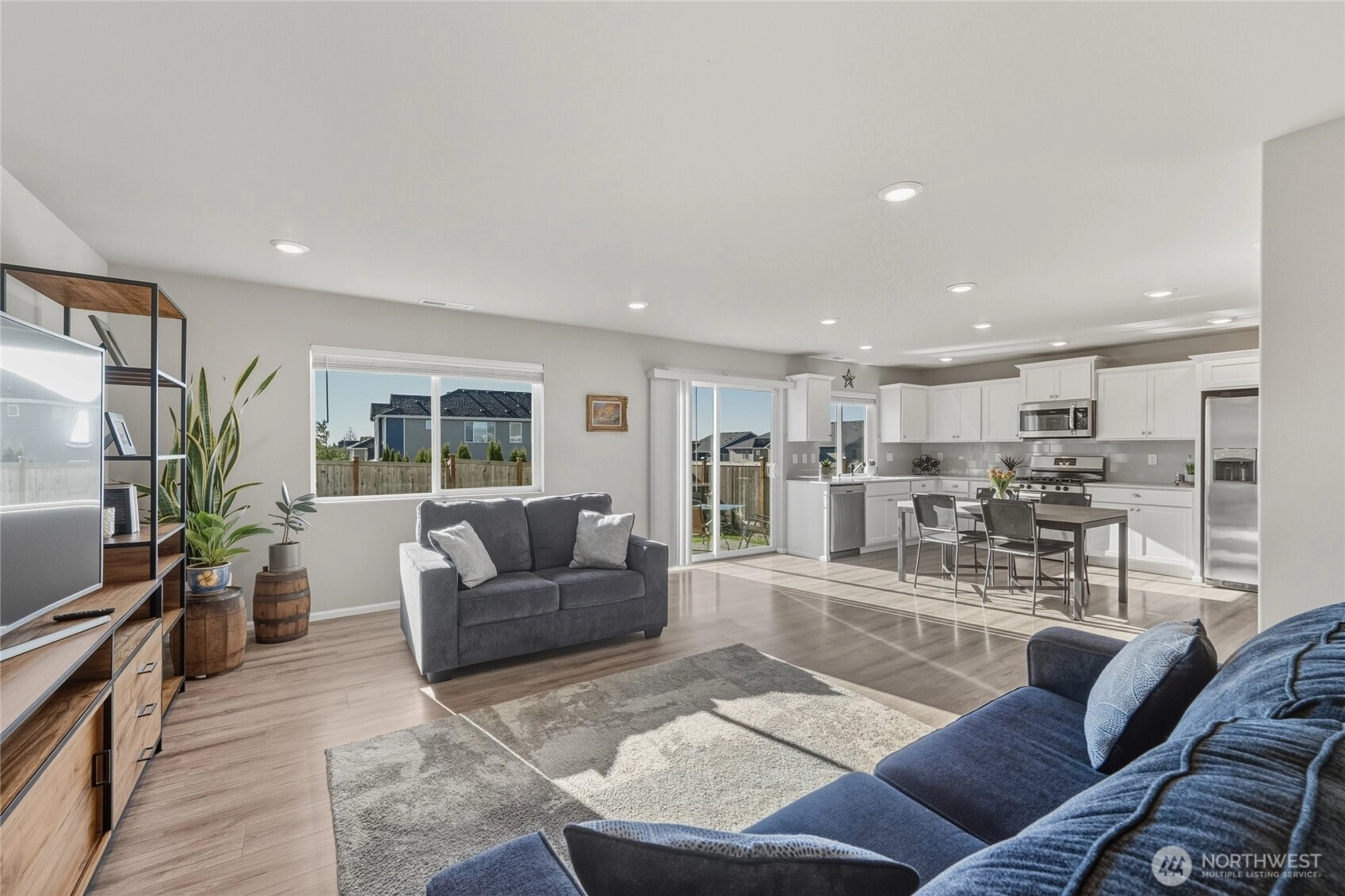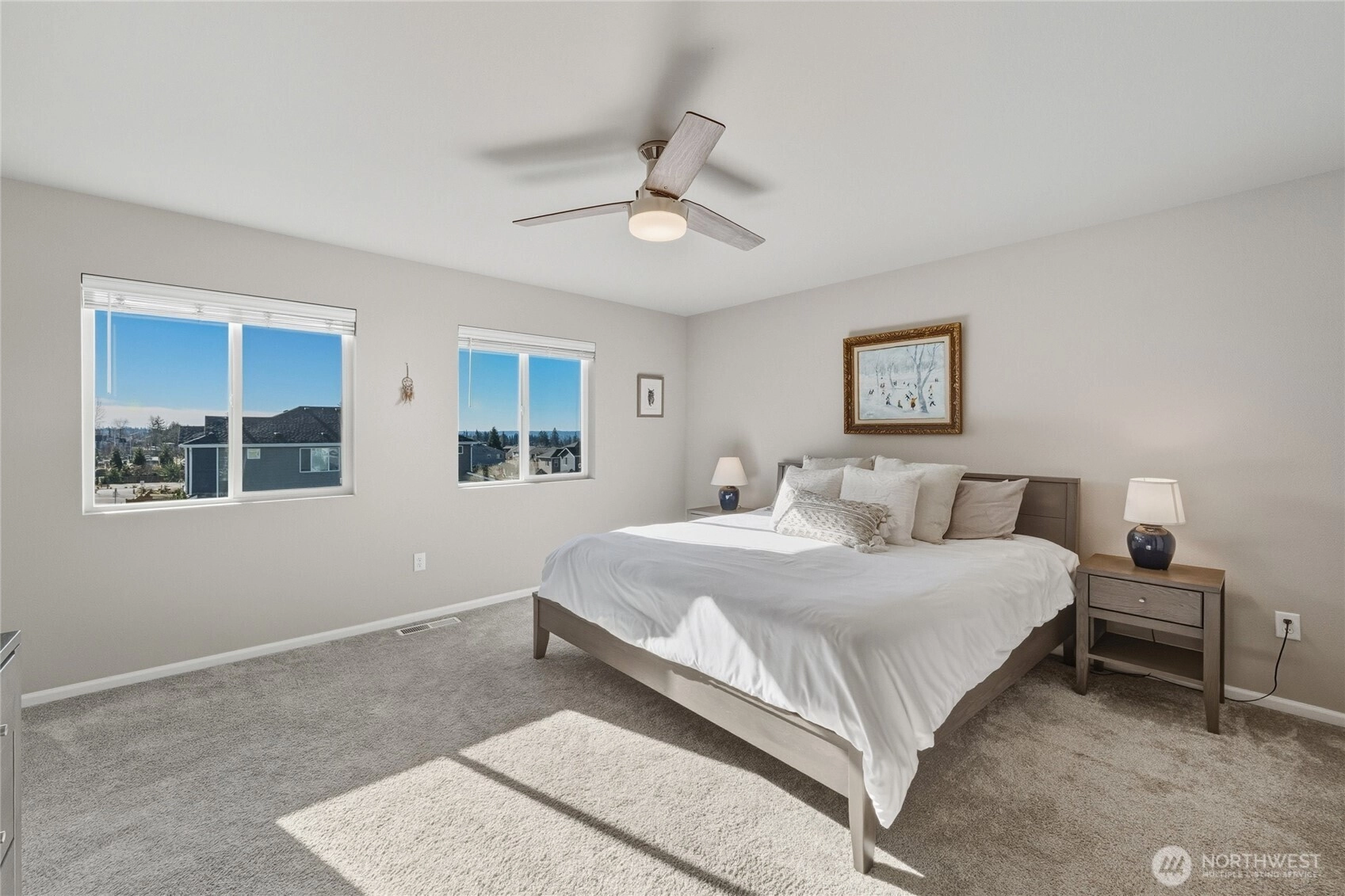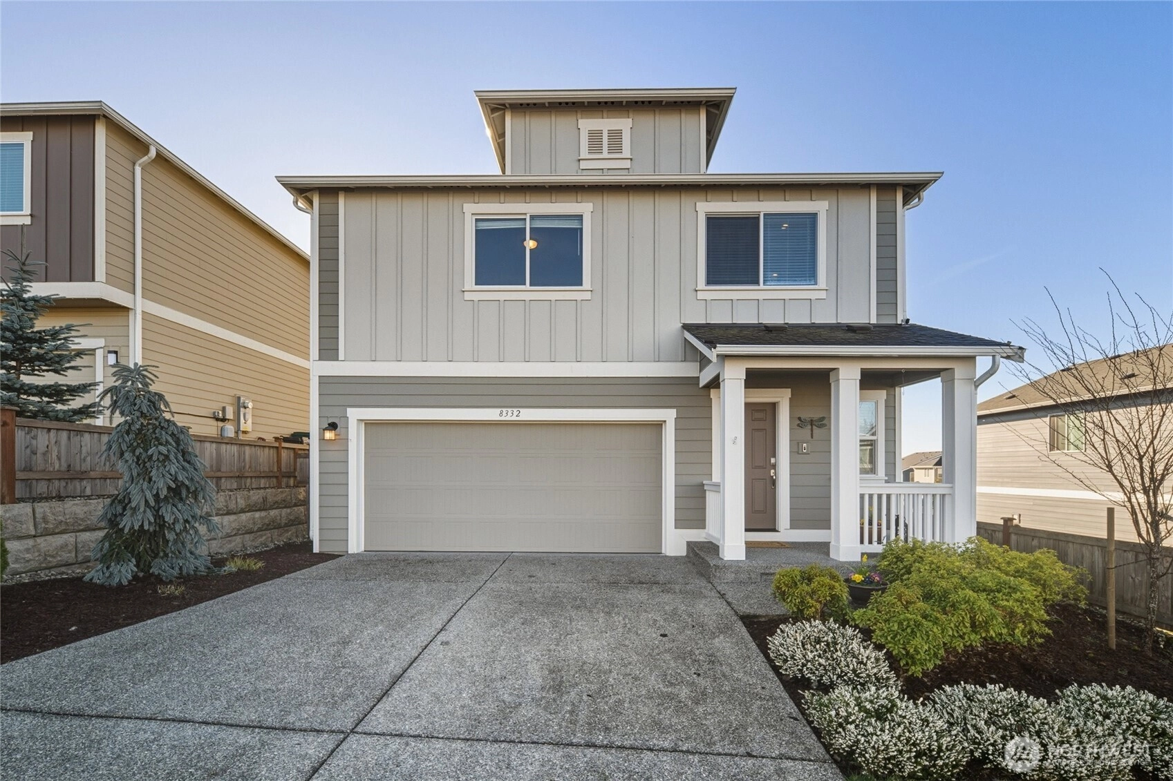 Beautifully maintained 2021 built home on a quiet street with a Marysville address & in the sought after Lake Stevens school district. Fully fenced backyard boarders open space which allows for a bit more privacy while you enjoy the sweeping Sound and mountain range views & glorious sunsets that make coming home the best part of your day. Inside, the home feels fresh, bright, and effortlessly livable. Quartz countertops, stainless steel appliances, a walk-in pantry, and durable hardwood laminate flooring create a stylish yet functional space. Central A/C, tankless hot water, & SMART wiring add efficiency and convenience, while the open layout invites connection whether you’re hosting friends or enjoying a quiet evening in. Upstairs, three bedrooms are complemented by a flexible loft- create a cozy study space, home gym, playroom, or creative retreat. The spacious primary suite feels like a true escape with the views featuring abundant light, a spa like ensuite & a huge walk-in closet that makes everyday routines easy. Outside your door, two parks are just a short walk away, encouraging an active and connected lifestyle. Enjoy close proximity to Lake Stevens amenities, restaurants, shopping, and convenient Hwy 9 access for commuting. Modern, low-maintenance living -this lightly lived in home is also offering a seller credit at closing to replace the builder grade carpet on 2nd floor so you can choose flooring that fits your needs & style!