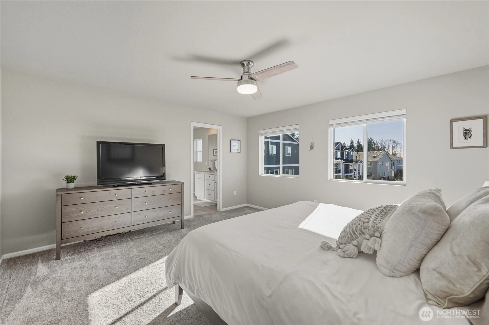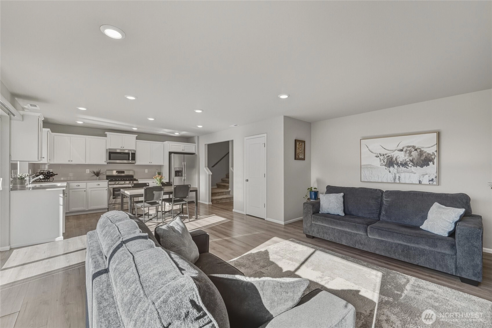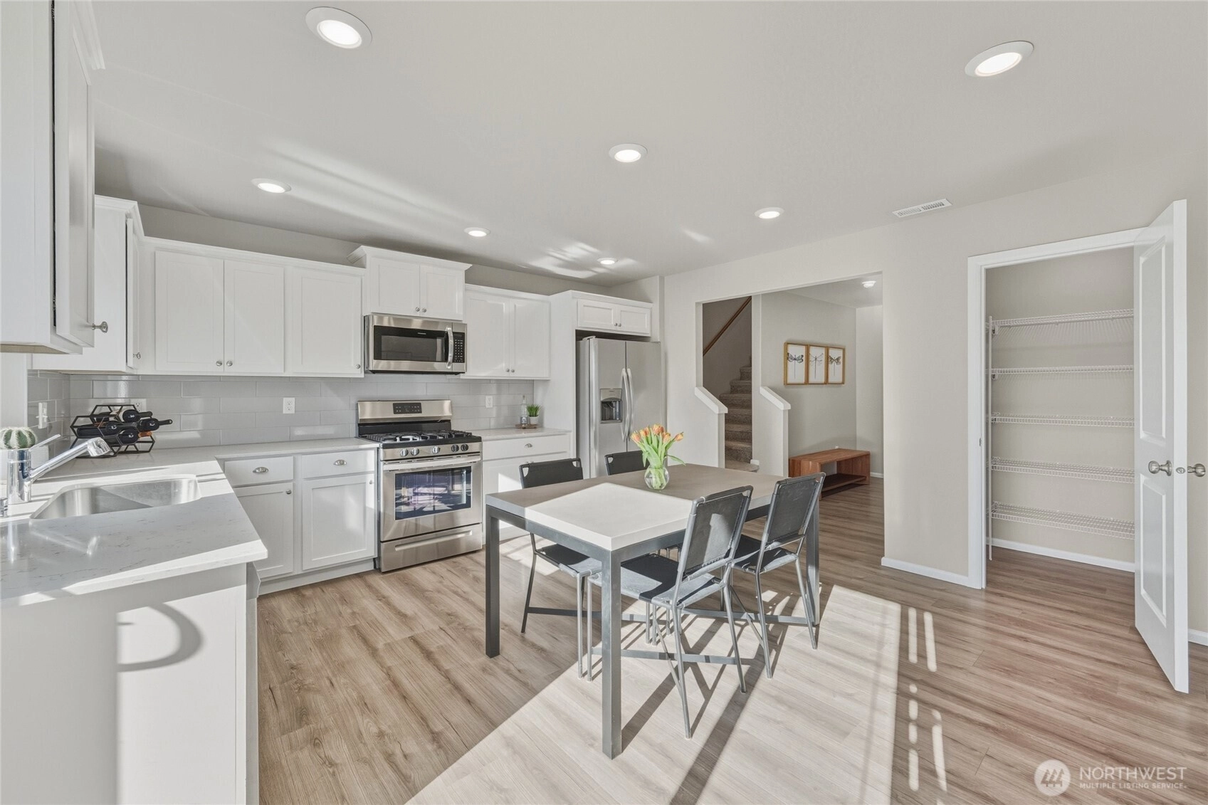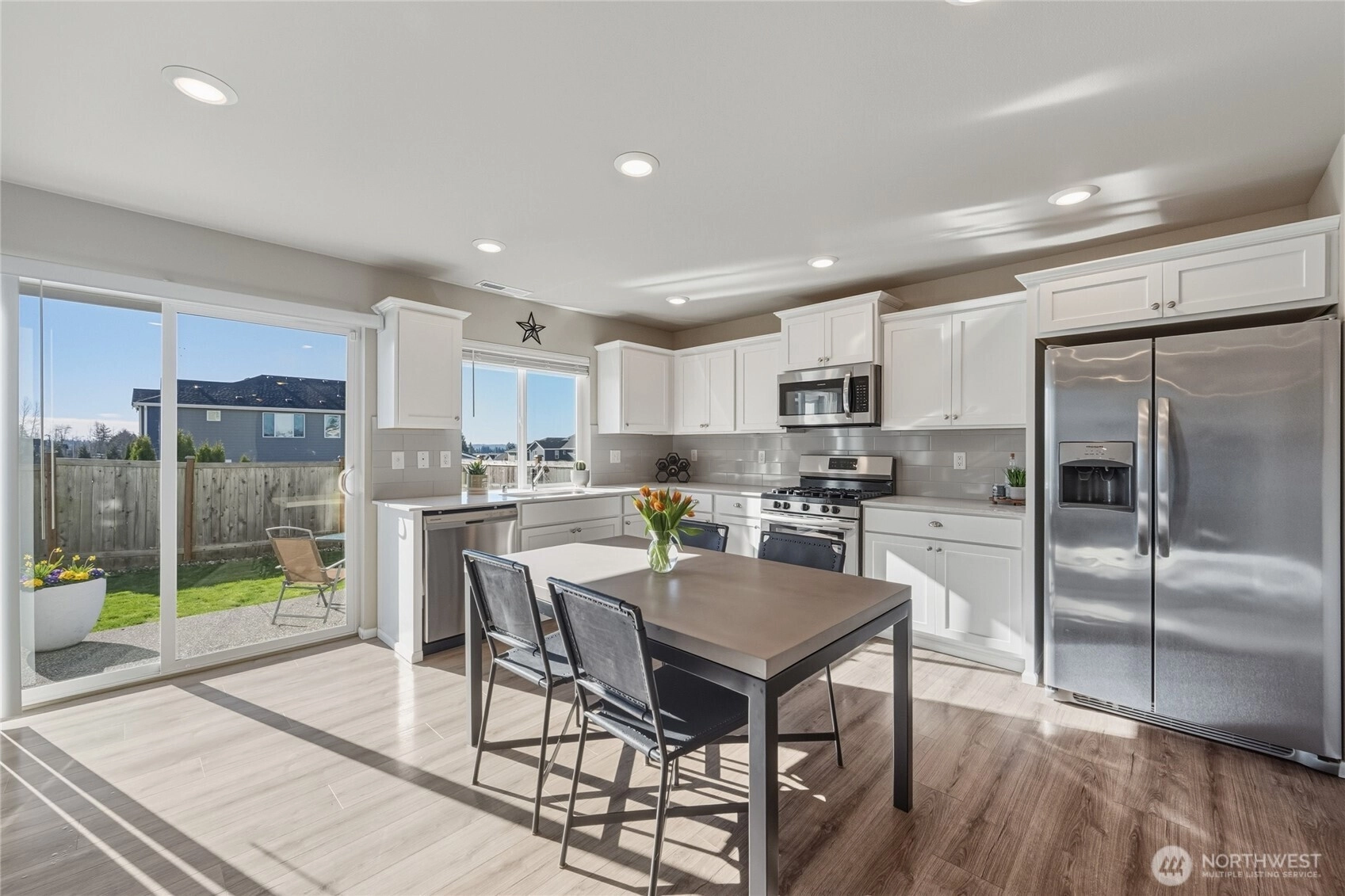 Beautifully maintained 2021 built home on a quiet street with a Marysville address & in the sought after Lake Stevens school district. Fully fenced backyard boarders open space which allows for a bit more privacy while you enjoy the sweeping Sound and mountain range views & glorious sunsets that make coming home the best part of your day. Inside, the home feels fresh, bright, and effortlessly livable. Quartz countertops, stainless steel appliances, a walk-in pantry, and durable hardwood laminate flooring create a stylish yet functional space. Central A/C, tankless hot water, & SMART wiring add efficiency and convenience, while the open layout invites connection whether you’re hosting friends or enjoying a quiet evening in. Upstairs, three bedrooms are complemented by a flexible loft- create a cozy study space, home gym, playroom, or creative retreat. The spacious primary suite feels like a true escape with the views featuring abundant light, a spa like ensuite & a huge walk-in closet that makes everyday routines easy. Outside your door, two parks are just a short walk away, encouraging an active and connected lifestyle. Enjoy close proximity to Lake Stevens amenities, restaurants, shopping, and convenient Hwy 9 access for commuting. Modern, low-maintenance living -this lightly lived in home is also offering a seller credit at closing to replace the builder grade carpet on 2nd floor so you can choose flooring that fits your needs & style!