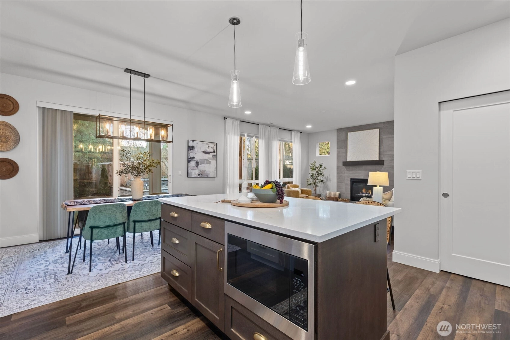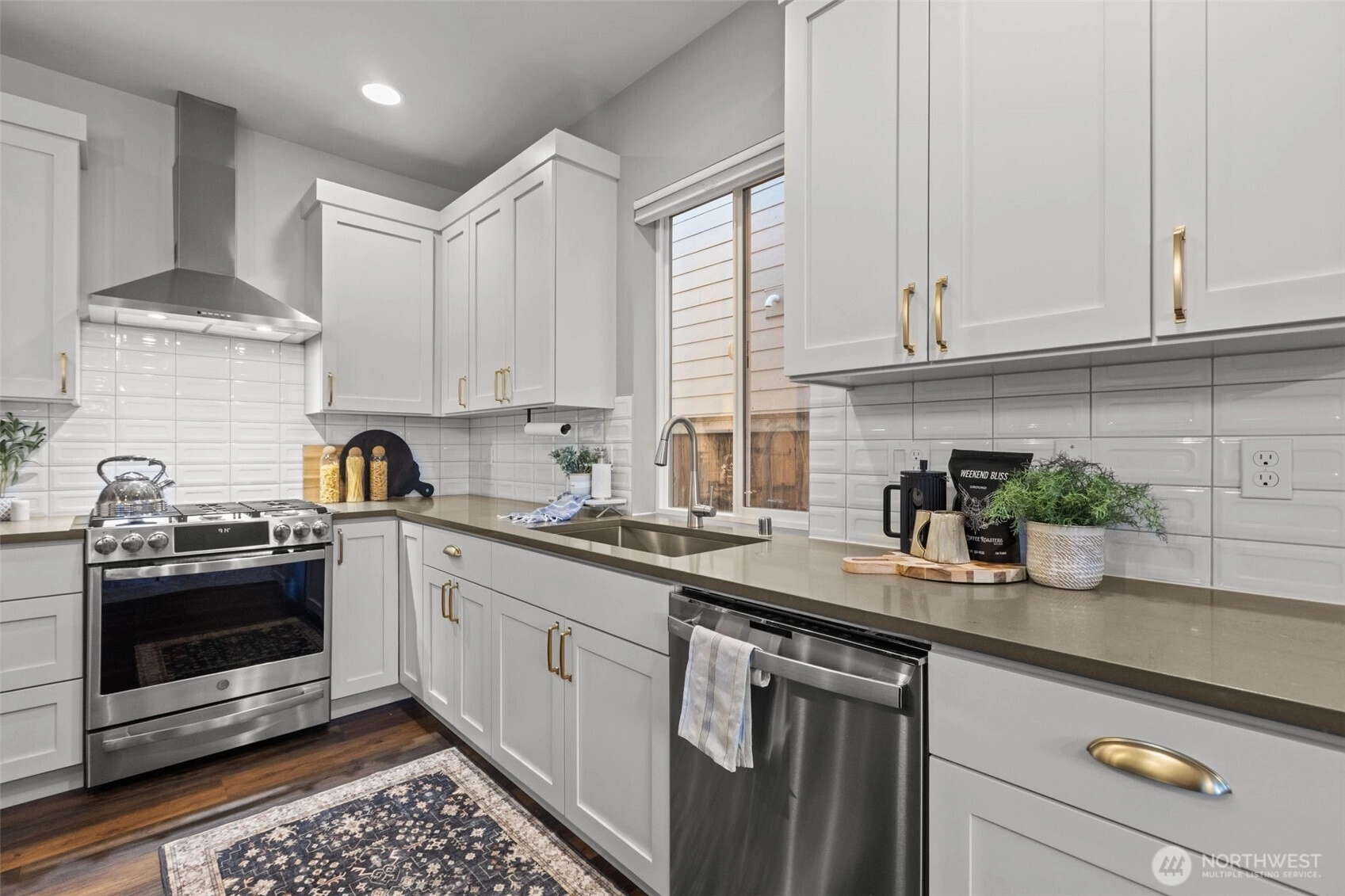 Tucked on a quiet cul-de-sac, this beautifully updated 5-bedroom residence offers the perfect blend of comfort, style, and convenience. Designed for both everyday living and effortless entertaining, the open-concept layout centers around a stunning kitchen complete with slab quartz countertops, stainless steel appliances, and easy access to a covered outdoor patio.The backyard is a true extension of the home, showcasing professionally upgraded landscaping with low-maintenance turf and thoughtfully designed garden terraces—ideal for relaxing, gathering, or cultivating your favorite plants. Inside, the inviting living space is warmed by a gas fireplace, creating a cozy focal point year-round. Upstairs, the spacious primary suite provides a peaceful retreat with a spa-inspired five-piece bath. Generously sized secondary bedrooms and flexible living space offer room for work, play, or hosting. A main-level bedroom adds versatility for guests or a private office. Oversized windows invite in natural light and frame serene greenery, enhancing the home’s tranquil feel. Located just minutes from shopping, dining, grocery stores, parks, and the light rail station, this home delivers both peaceful surroundings and unbeatable everyday access. Pre-inspected for your convenience. Welcome home!