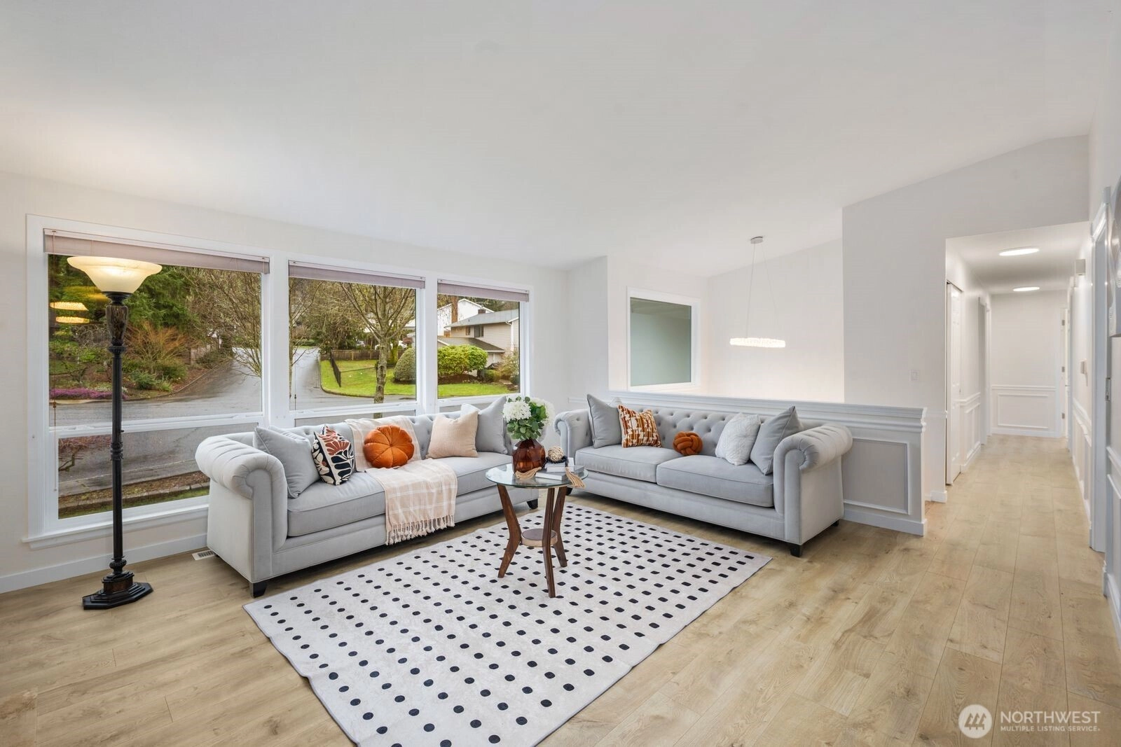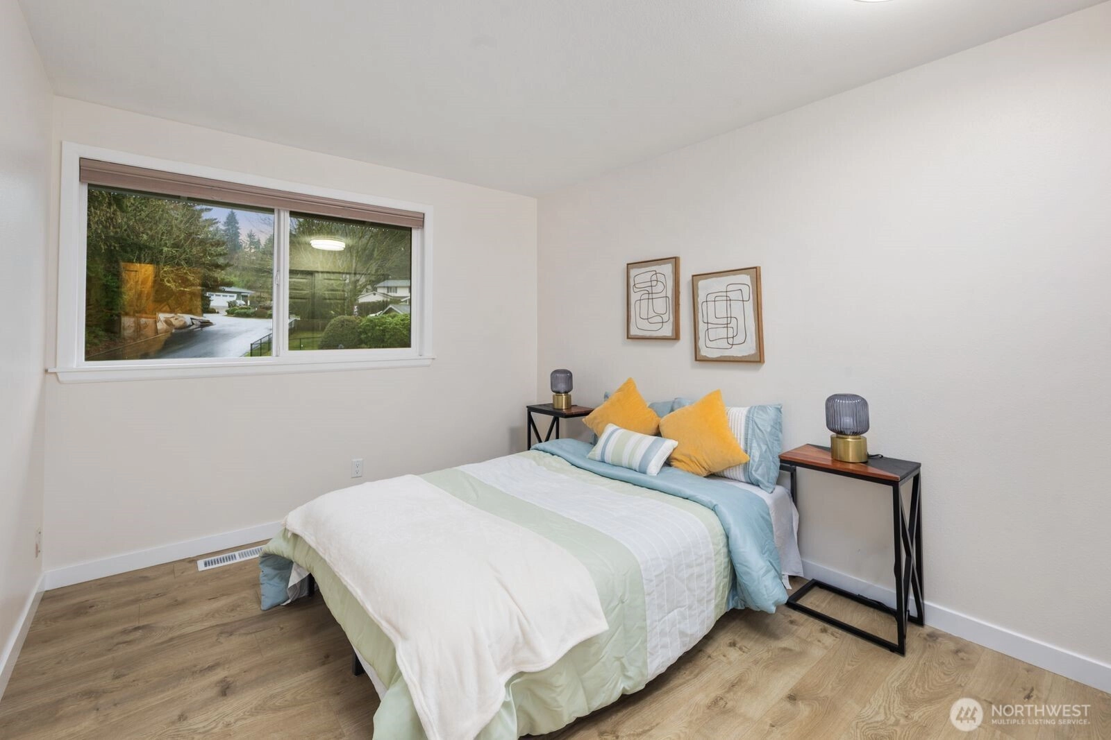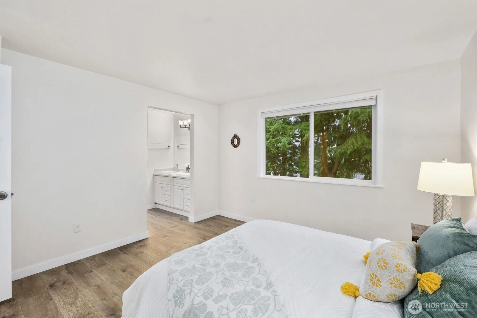 Beautifully updated 4-bedroom, 3-bath split-entry home in a quiet and convenient Bellevue location, ideal for multi-generational living. Features include fresh new interior paint, new flooring, new light fixtures, updated kitchen with new appliances, updated bathrooms, and a newer roof. Bright layout with abundant natural light throughout. The upper level offers a private primary suite, while the lower level includes a spacious family room, a full bathroom, and a bedroom—perfect for guests, or a separate living area. Large lot, peaceful setting, and close to parks, schools, shopping, and everyday conveniences. Move-in ready.