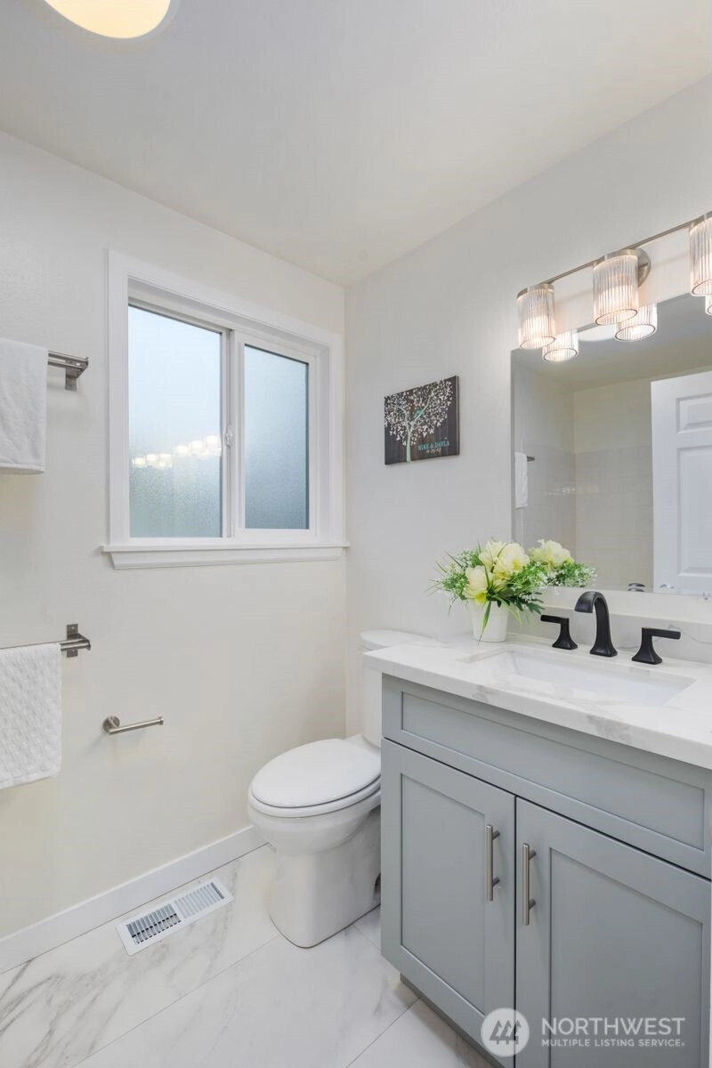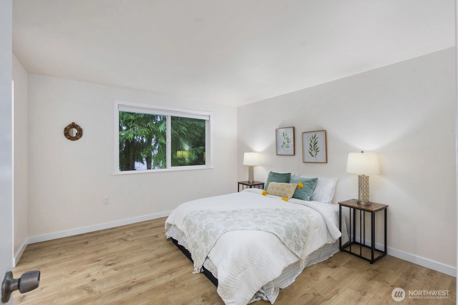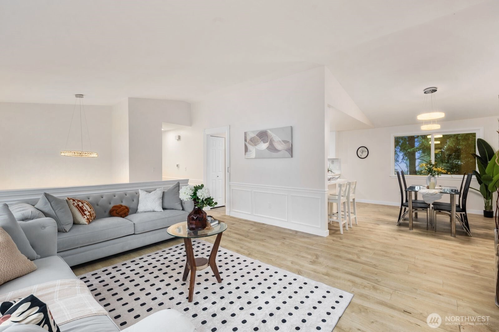 Beautifully updated 4-bedroom, 3-bath split-entry home in a quiet and convenient Bellevue location, ideal for multi-generational living. Features include fresh new interior paint, new flooring, new light fixtures, updated kitchen with new appliances, updated bathrooms, and a newer roof. Bright layout with abundant natural light throughout. The upper level offers a private primary suite, while the lower level includes a spacious family room, a full bathroom, and a bedroom—perfect for guests, or a separate living area. Large lot, peaceful setting, and close to parks, schools, shopping, and everyday conveniences. Move-in ready.