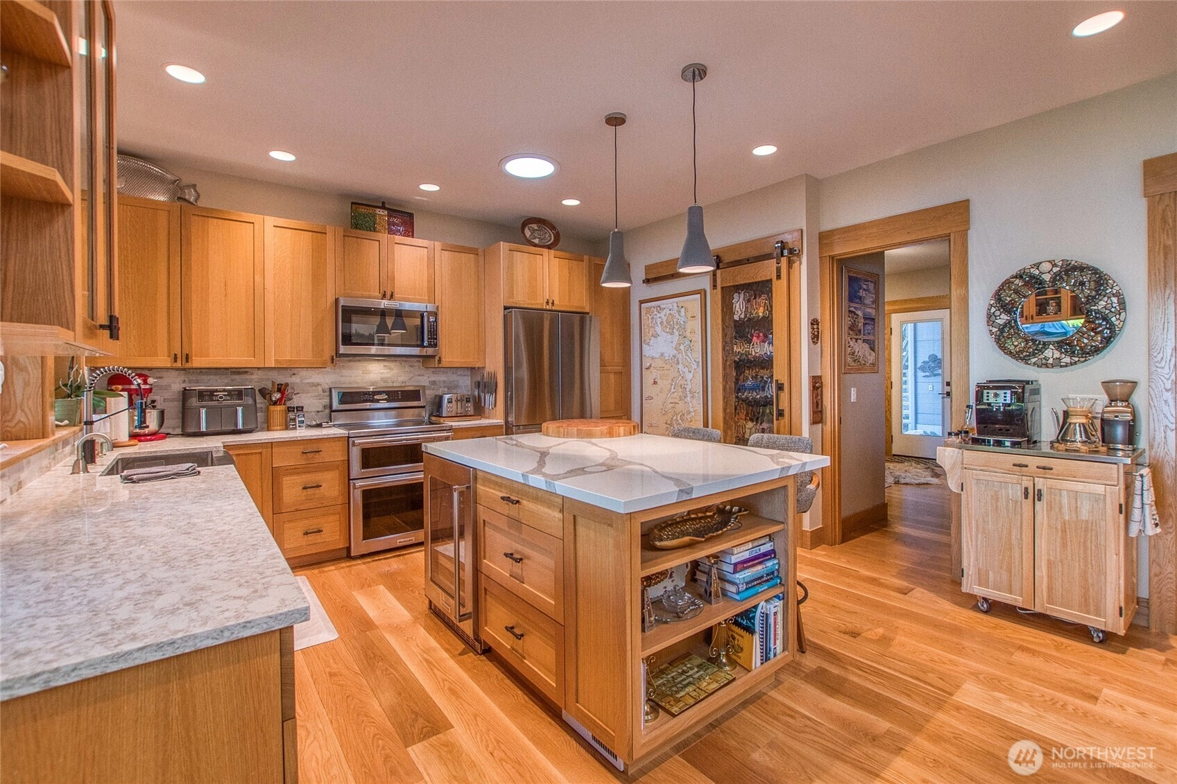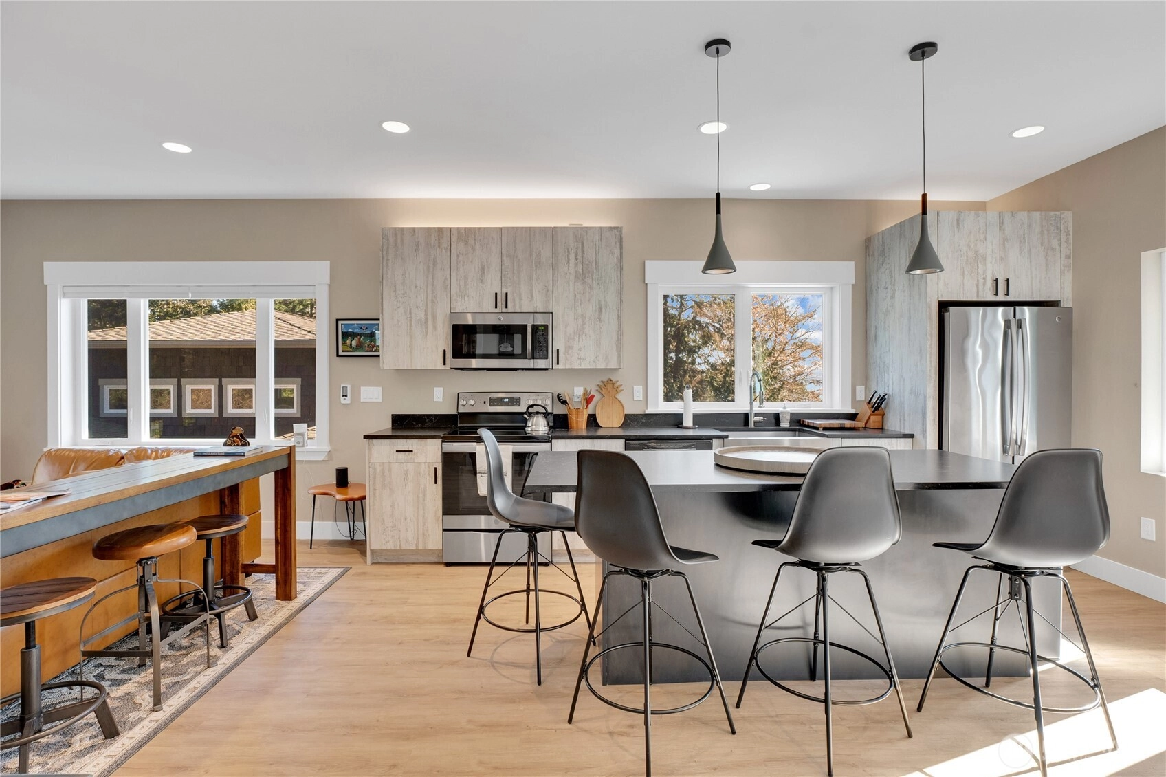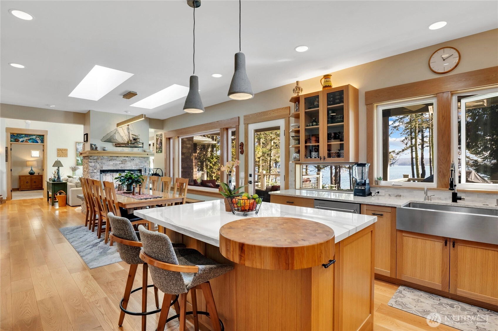 Effectively built in 2022 with modern systems and design, this waterfront home on San Juan Island features expansive views and durable, high-quality finishes throughout. Outdoor features include a hot tub, sauna, outdoor shower, and fire pit. The kitchen is well equipped with premium appliances, solid white oak cabinetry, quartz countertops, and a walk-in pantry. Over 100 feet of private beachfront allows for kayaking, beach walks, and regular wildlife viewing... a migration path for Orca Whales right in your own backyard. A separate two-bedroom, one-bath bunkhouse with full kitchen and views of the San Juan Channel provides flexibility for guests or permitted short-term rental use. Located near Roche Harbor and Roche Harbor Airfield, offering a balance of access and privacy.