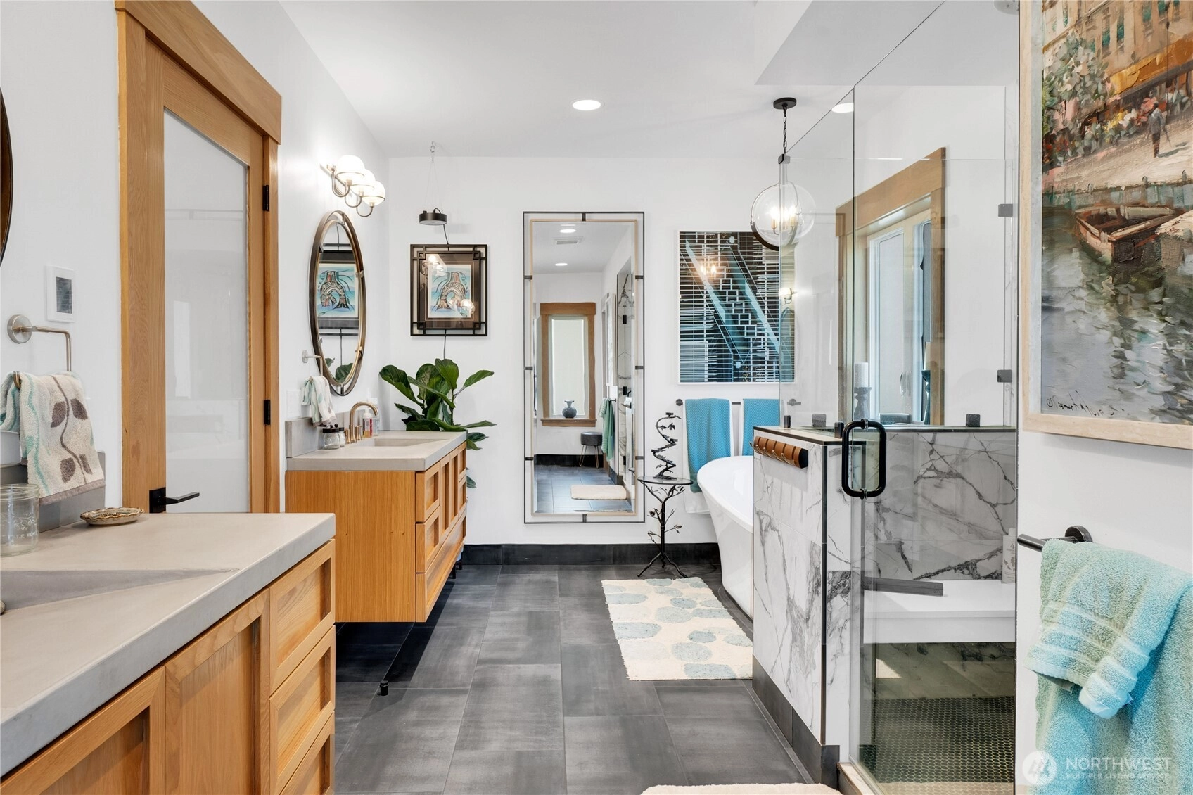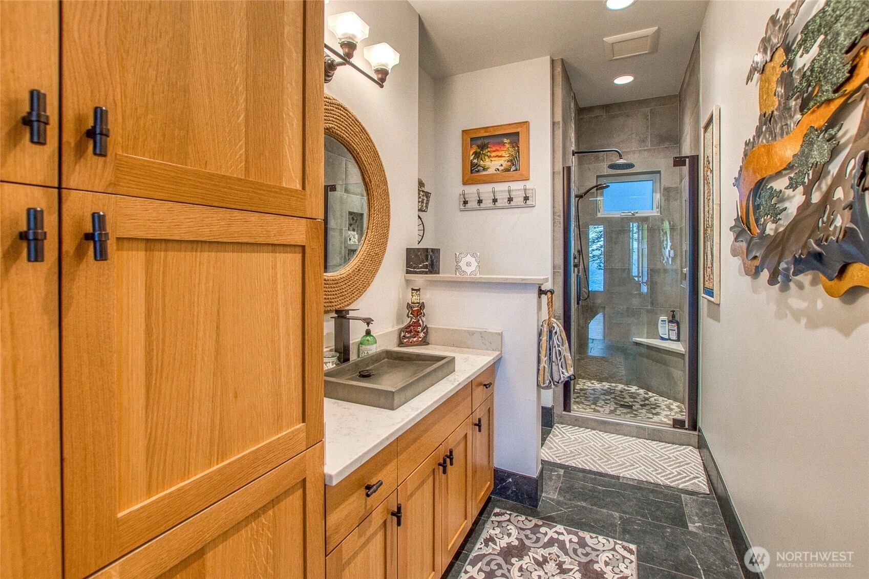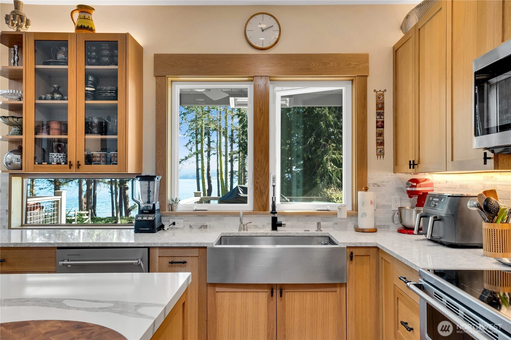 Effectively built in 2022 with modern systems and design, this waterfront home on San Juan Island features expansive views and durable, high-quality finishes throughout. Outdoor features include a hot tub, sauna, outdoor shower, and fire pit. The kitchen is well equipped with premium appliances, solid white oak cabinetry, quartz countertops, and a walk-in pantry. Over 100 feet of private beachfront allows for kayaking, beach walks, and regular wildlife viewing... a migration path for Orca Whales right in your own backyard. A separate two-bedroom, one-bath bunkhouse with full kitchen and views of the San Juan Channel provides flexibility for guests or permitted short-term rental use. Located near Roche Harbor and Roche Harbor Airfield, offering a balance of access and privacy.