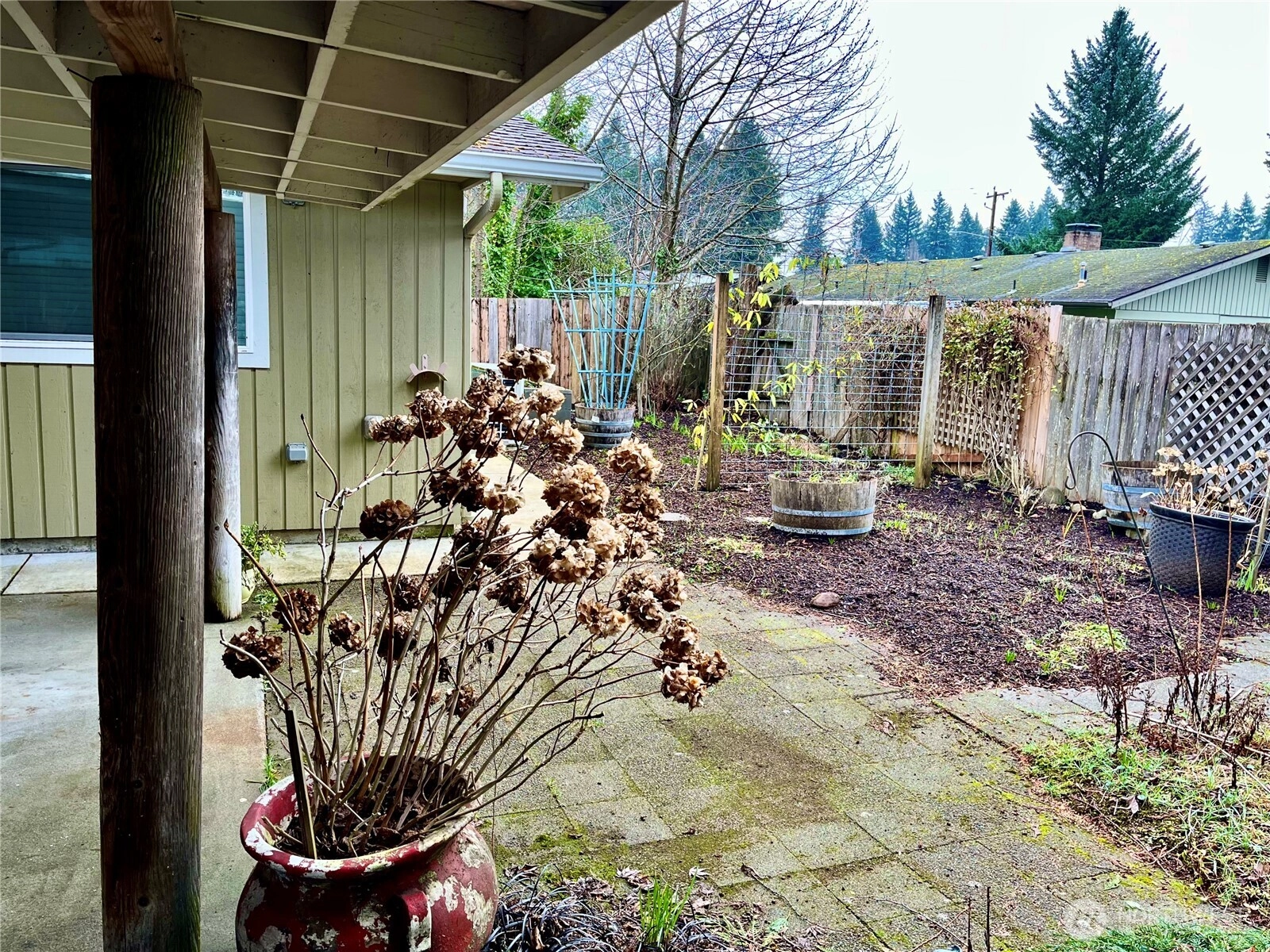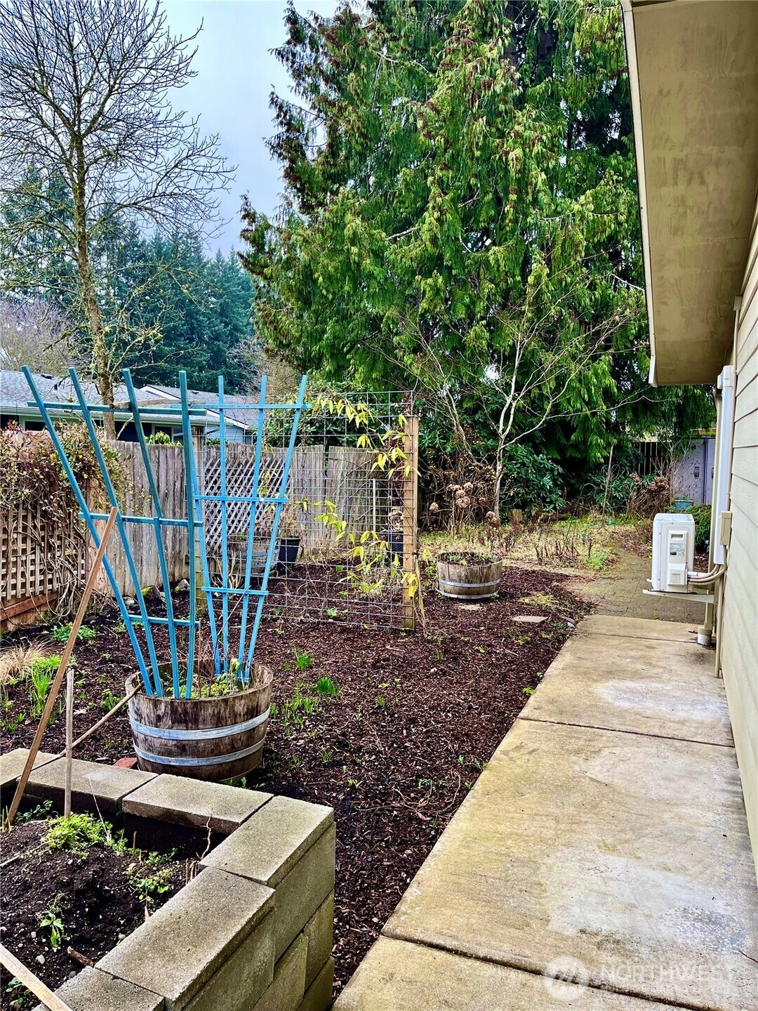 Lovely Move-In Ready single story home in quiet, well established neighborhood and in great commute location close to all conveniences! With thoughtful interior upgrades, the home features lovely natural light, gleaming original hardwood floors as well as carpet, ceramic tile, and easy care vinyl in the kitchen. The living room offers easy access thru sliding glass doors to the large covered patio area for all season entertaining & enjoyment. The comfortable & private primary bedroom suite features an impressive custom tiled walk-in shower plus large walk-in closet with built ins, access to outside covered patio, plus a ductless mini-split added for enhanced all season comfort. Additional amenities include spacious laundry/craft room/office area, an efficient kitchen w/dining area, and an easy flow layout with upgrades to accommodate senior/handicapped needs. Exterior features include small greenhouse and paved walkways thru planting areas and garden. Outdoor privacy is enhanced by lovingly curated perennials, fruit bearing plantings, and well manicured trees for shade and seasonal color. Simply a wonderful place to call home.