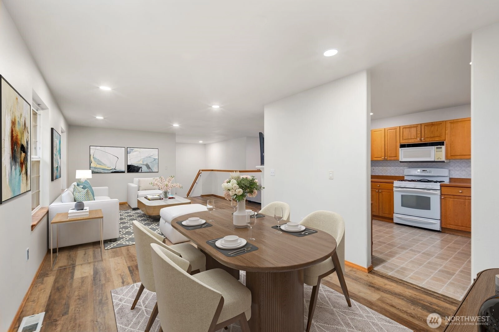 Immaculate 5-bedroom home tucked away in a quiet cul-de-sac on Auburn’s desirable Lea Hill! This beautifully maintained residence features a spacious great room with a cozy gas fireplace and A/C—perfect for everyday living and entertaining. The home has been freshly painted and updated with new LVP flooring throughout and new roof. The large kitchen offers a gas range, and a walk-in pantry, seamlessly flowing into the main living area. The generous primary suite includes a luxurious 5-piece bath and walk-in closet. The fully finished basement provides incredible flexibility with an oversized family/media room, two additional bedrooms, and a ¾ bath. A jumbo garage accommodates two large vehicles plus a third bay ideal for storage or a workshop. Conveniently located just minutes from Hwy 18 & 167—perfect for commuters. A must see!