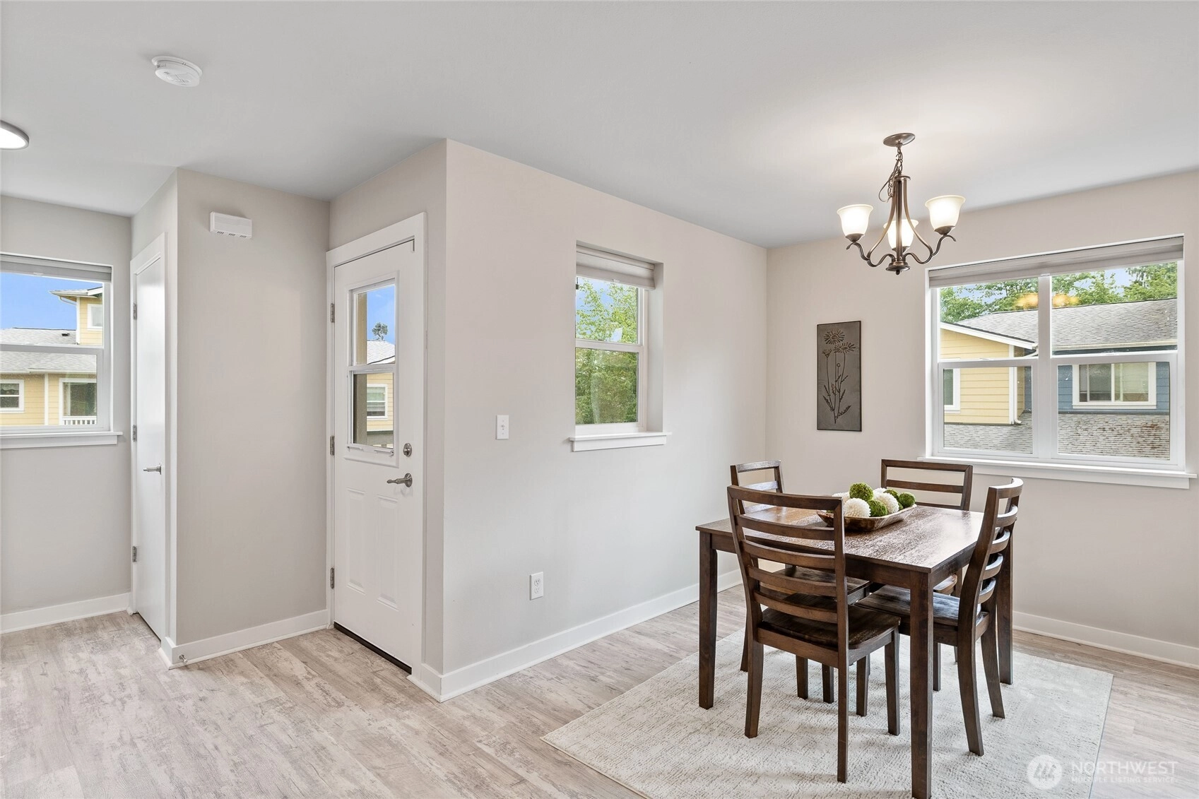 A Delightful Downtown Townhouse that Lives Large ~ Thoughtfully Designed, Stylish & Filled with Natural Light, the seemlessly Integrated Main Floor Living space will become your welcome retreat. The Spacious Kitchen is Well Appointed with Loads of Cabinets, Counterspace, Breakfast Bar, Pantry & Lovely Stainless Appliances. Upstairs finds the Primary Bedroom w/En-suite & Two Additional Bedrooms. With Fresh Paint & Tastefully Updated Fixtures, this home represents a true Move-in-Ready Experience. In the Summer stay Cool Inside with the Heatpump; head just outside your front door for an expansive lawn & room for plenty of fun! Large 2-car garage w/storage. Conveniently close to Shopping, Library, Parks & Playfields, Plus Easy Commuting & VERY LOW DUES, $136 NO ASSESSMENTS!