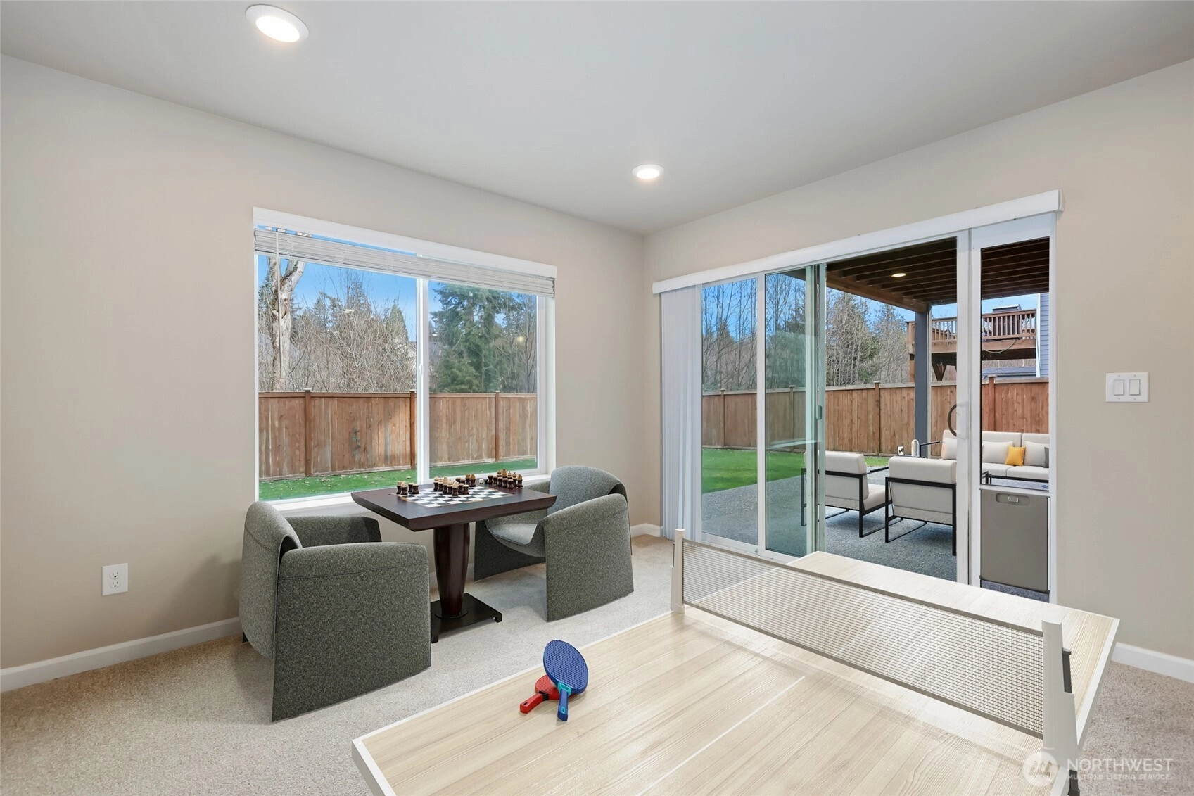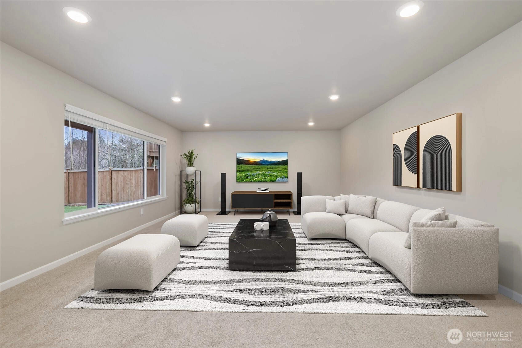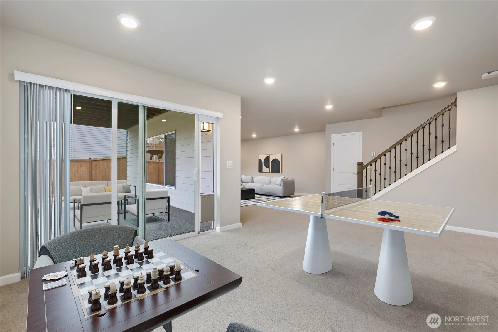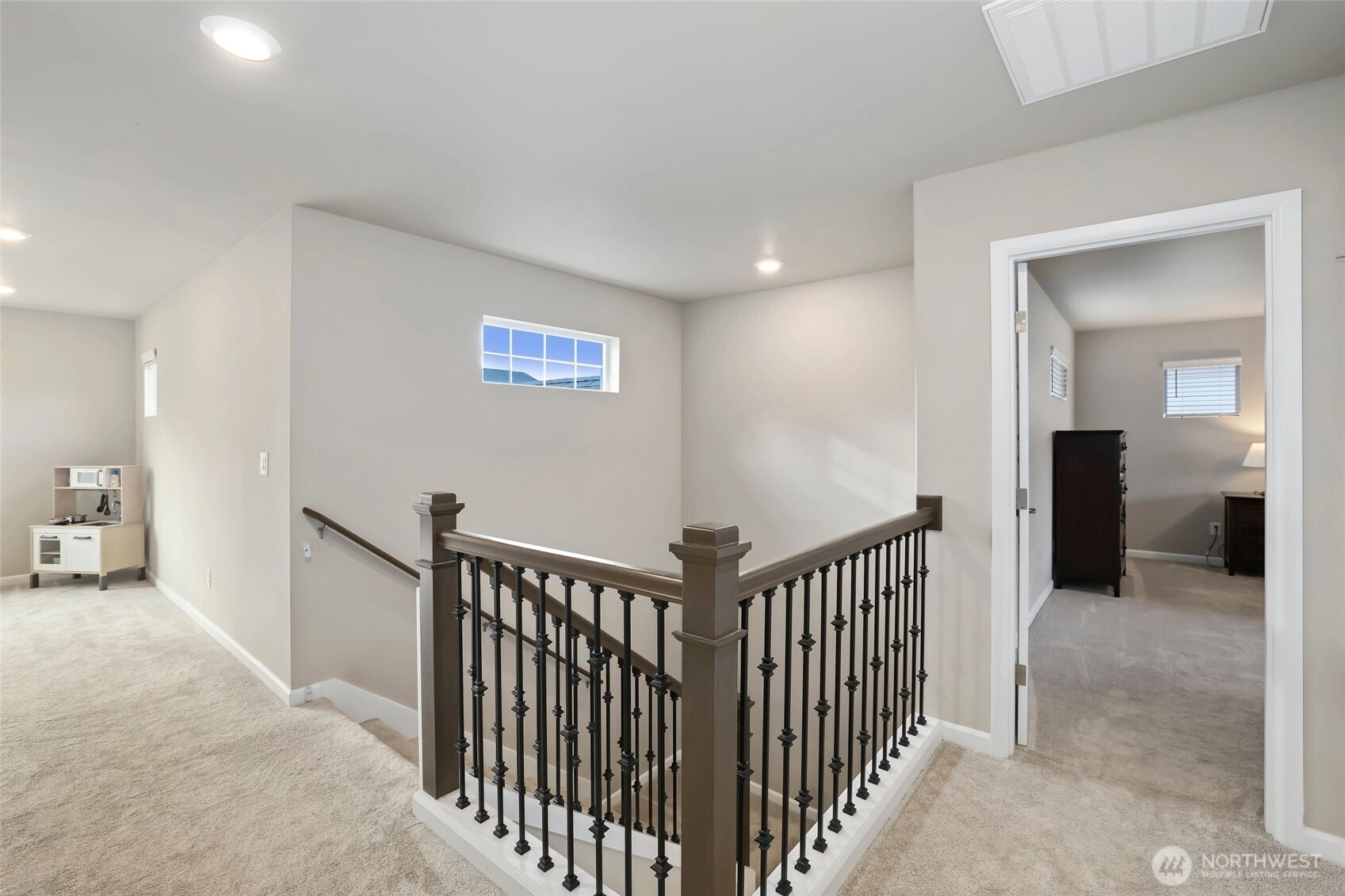 Privately set against a scenic greenbelt in the sought-after Maple Hills community, this like-new 2019 Lennar three-story home with a full daylight basement offers comfort, space, and modern elegance. The open-concept layout features generous rooms, tall ceilings, oversized windows, and abundant natural light throughout. The flexible floorplan includes six bedrooms, four baths, two laundry areas, and excellent potential for suite-style living across all three levels. High-end finishes and luxury upgrades shine throughout, including iron-rail open staircases and smart-home wiring. The chef's kitchen impresses with a massive quartz island, abundant cabinetry, and a walk-in pantry. The spacious primary suite offers a serene retreat with a beautifully tiled five-piece bath. A top-floor bonus room provides flexible space for media, recreation, or remote work needs, while the mudroom includes a built-in bench and smart storage. The lower level features new carpet, washer and dryer hookups, a 3/4 bath with shower, and flexible space ideal for an ADU or multi-generational living. Enjoy year-round outdoor living with covered patios, an upper deck, and a sun-filled level backyard backing to green space for added privacy. Additional highlights include a raised side-yard garden bed with room to expand, air conditioning, an electric car charger, and recent updates throughout, making this home truly move-in ready.