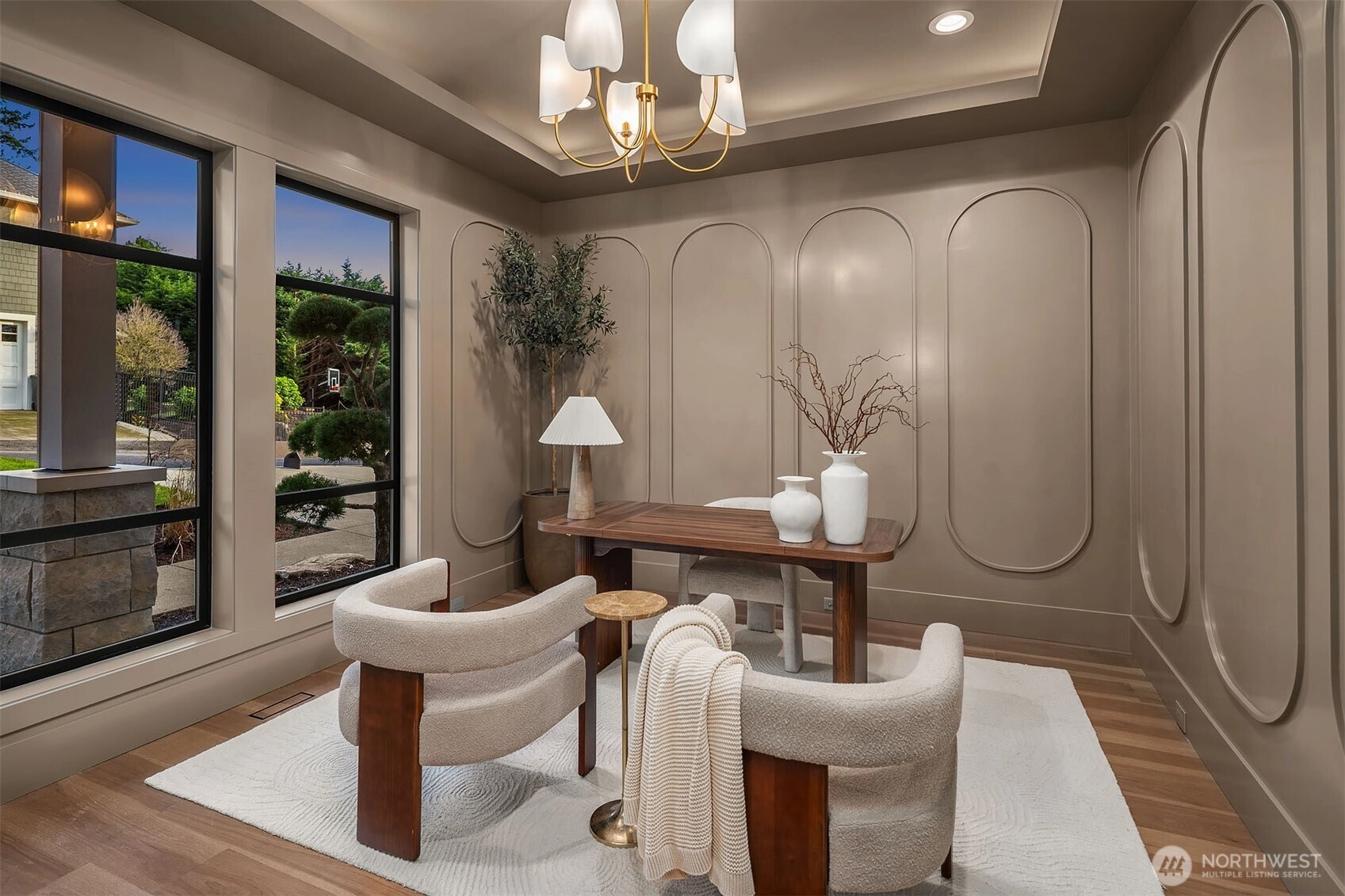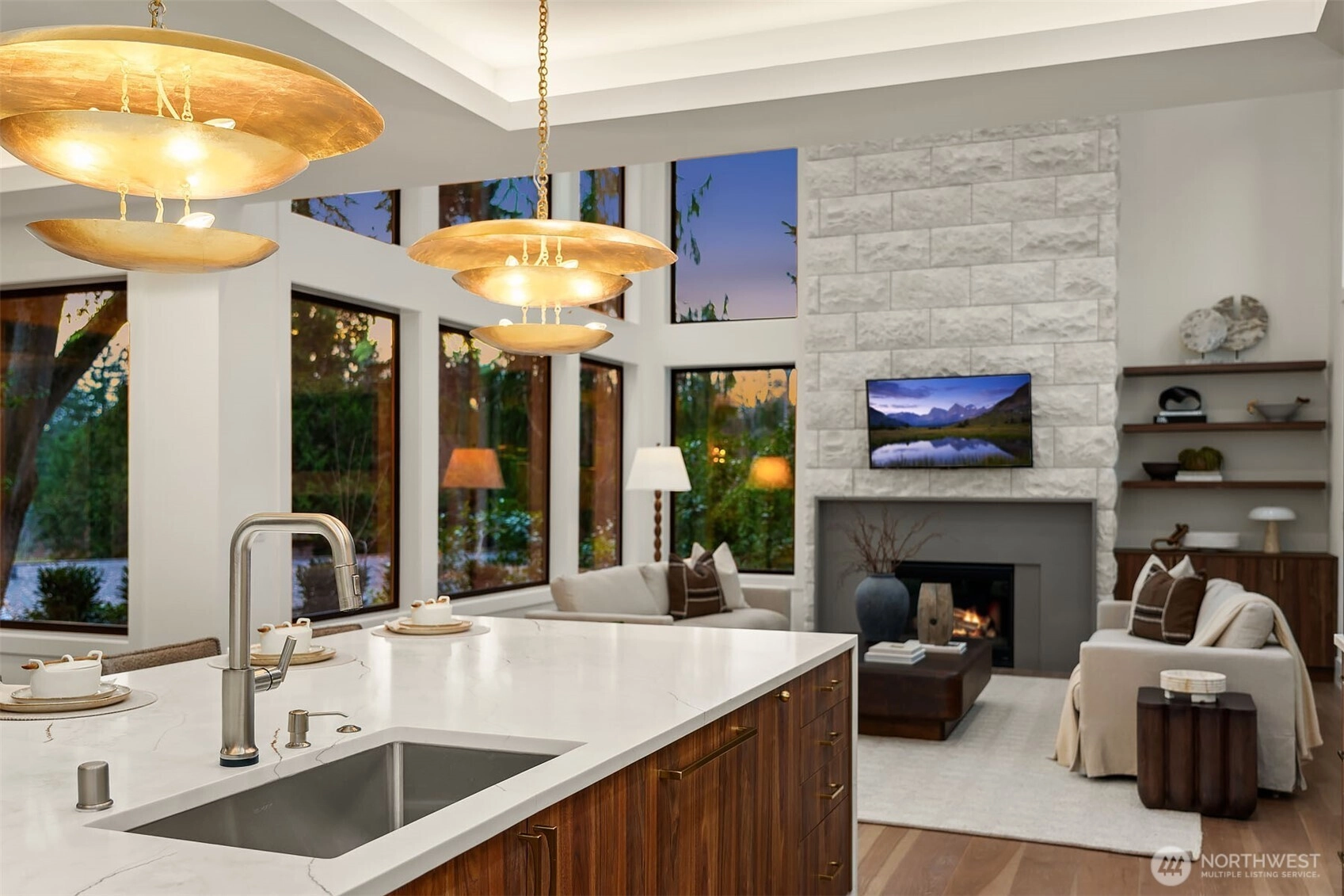 MN Custom Homes presents a stunning transitional design in the heart of West Bellevue. Two story great room, wall of windows, abundant natural light, and floor to ceiling fireplace. Luxurious kitchen, spacious island, warm design elements. Primary suite with fireplace, spa quality bath, and skylights. Five bedrooms anchored by a main floor guest suite. Extensive use of hardwoods. Bonus room, perfect for movie night. Flex room: workout room, craft room, 2nd office. Outdoor living space retreat: fireplace, skylights, heaters, and built-in BBQ. Quiet, private backyard. Sought after Medina Elementary. Just blocks to Downtown Bellevue's world class amenities.