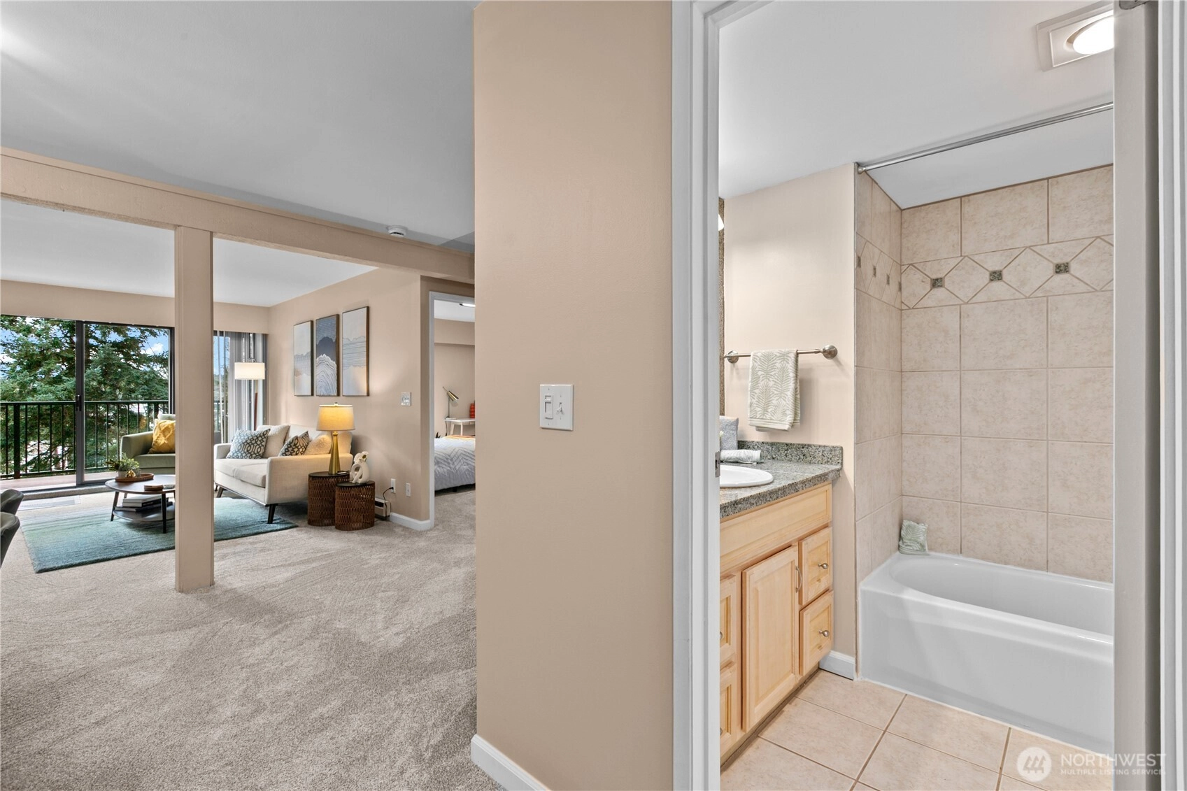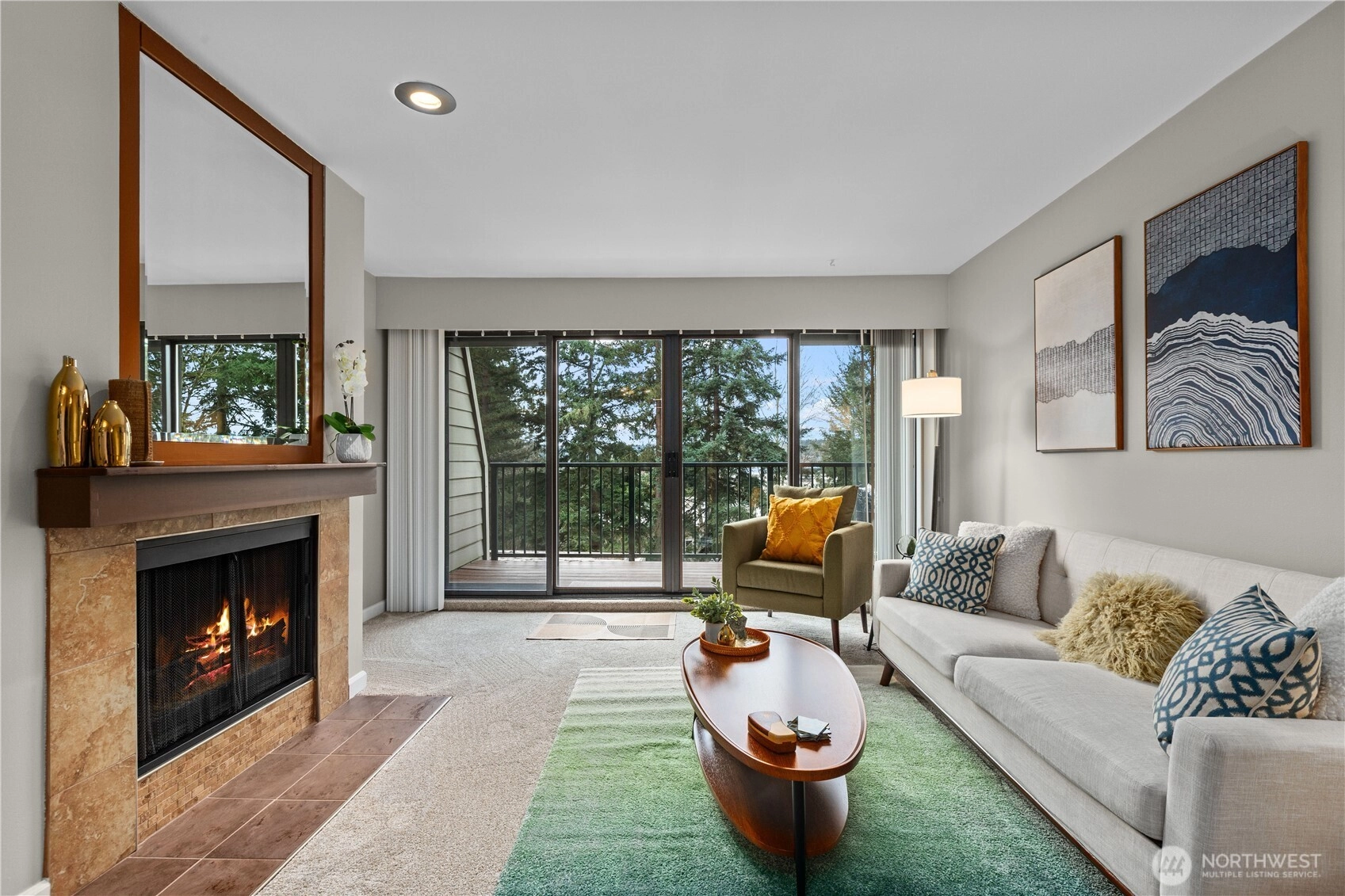 Stunning, updated 2-bed, 2-bath home with 2 reserved parking spots, No rental cap, No special assessment in the heart of Redmond! Enjoy rare privacy and two private outdoor living spaces. An oversized south-facing deck with great views, plus a fenced front patio—perfect for summer entertaining. Rare zero-step entry adds to everyday convenience and accessibility. Recently refreshed with new carpet, LVP flooring, and fresh interior paint. Light-filled living room features expansive windows and flows seamlessly to the main deck. Spacious primary suite includes an en-suite bath and ample storage throughout. Well-run HOA covers water, sewer, and garbage and has no rental cap. Pre-inspected with no special assessments. Prime location is less than a mile to Downtown Redmond dining, shopping, parks, and the light-rail station. Award-winning Lake Washington schools. Two reserved parking spaces—one covered carport plus one uncovered—and plenty of guest parking. Privacy, convenience, and unbeatable walkability—don’t miss! All designer furnishings and staging items are brand new and are available for purchase.