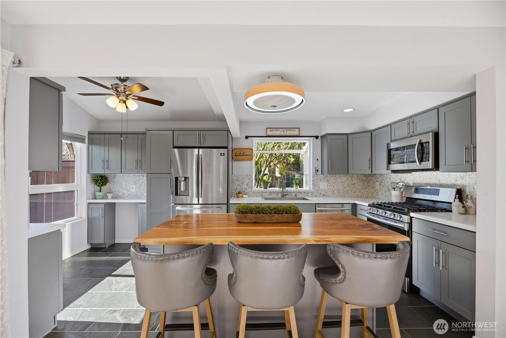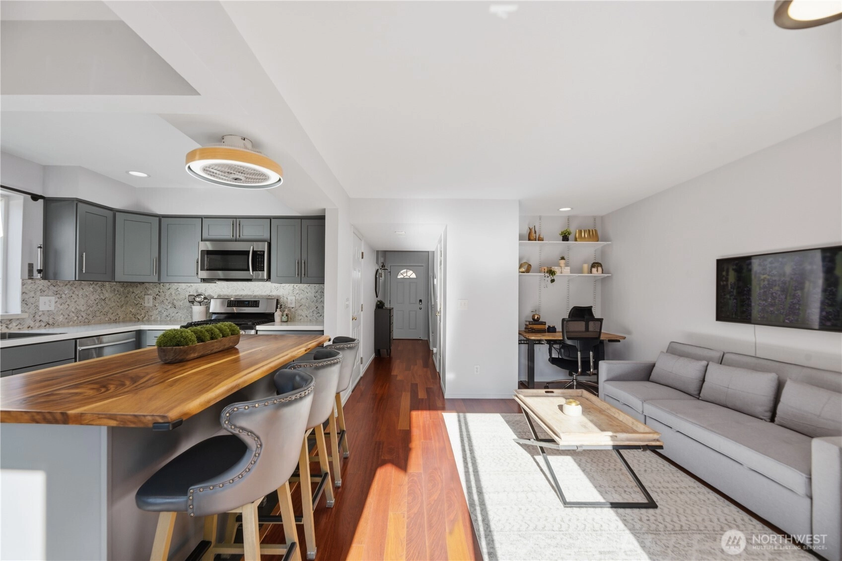Welcome home to this beautifully updated  townhome in a small, well-maintained complex in the heart of downtown Issaquah. Just steps from the charming shops and restaurants of Gilman Village, and close to scenic parks and walking trails, this unbeatable location offers the perfect blend of convenience, community, and outdoor living. Inside, you’ll find thoughtful updates throughout, including a stunning designer kitchen with newer appliances, Quartz counters, designer backsplash, gas range, and modern finishes. Rich cherry hardwood floors add warmth and elegance, while the inviting gas fireplace creates the perfect gathering space. Updated bathrooms provide a fresh, contemporary feel. This spacious 2-bedroom, 2.5-bath home features a luxurious primary suite with vaulted ceilings, a walk-in closet, and custom California Closets organization system. Enjoy exceptional storage throughout, plus a private fenced deck ideal for relaxing or entertaining. As a desirable corner unit, the home offers added privacy and abundant natural light. Additional highlights include a 2-car garage with EV charger, newer systems, and a well-run HOA with low dues that include water, sewer, and landscaping. Home has been pre-inspected. A rare opportunity to own a move-in ready home in one of Issaquah’s most sought-after downtown locations.