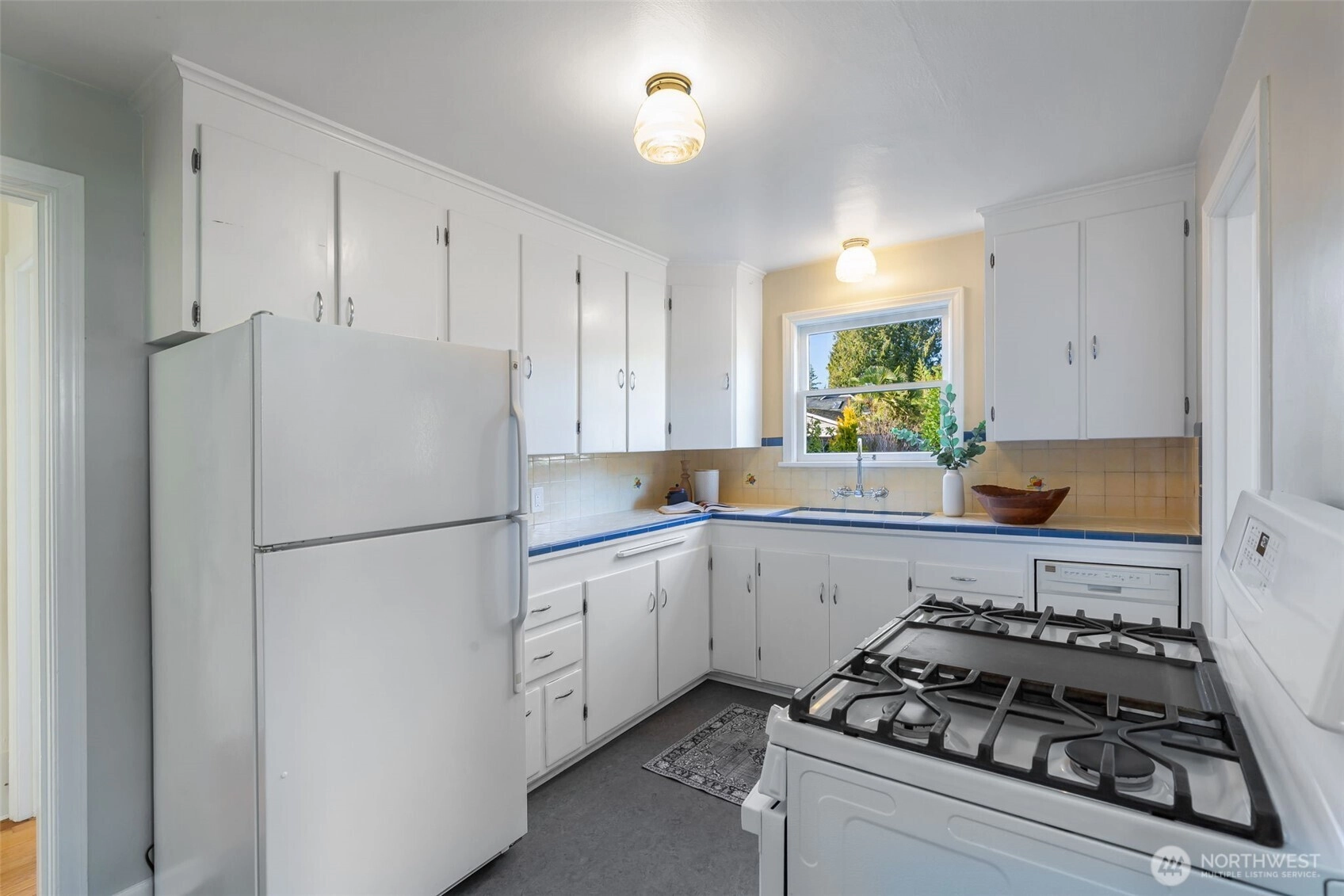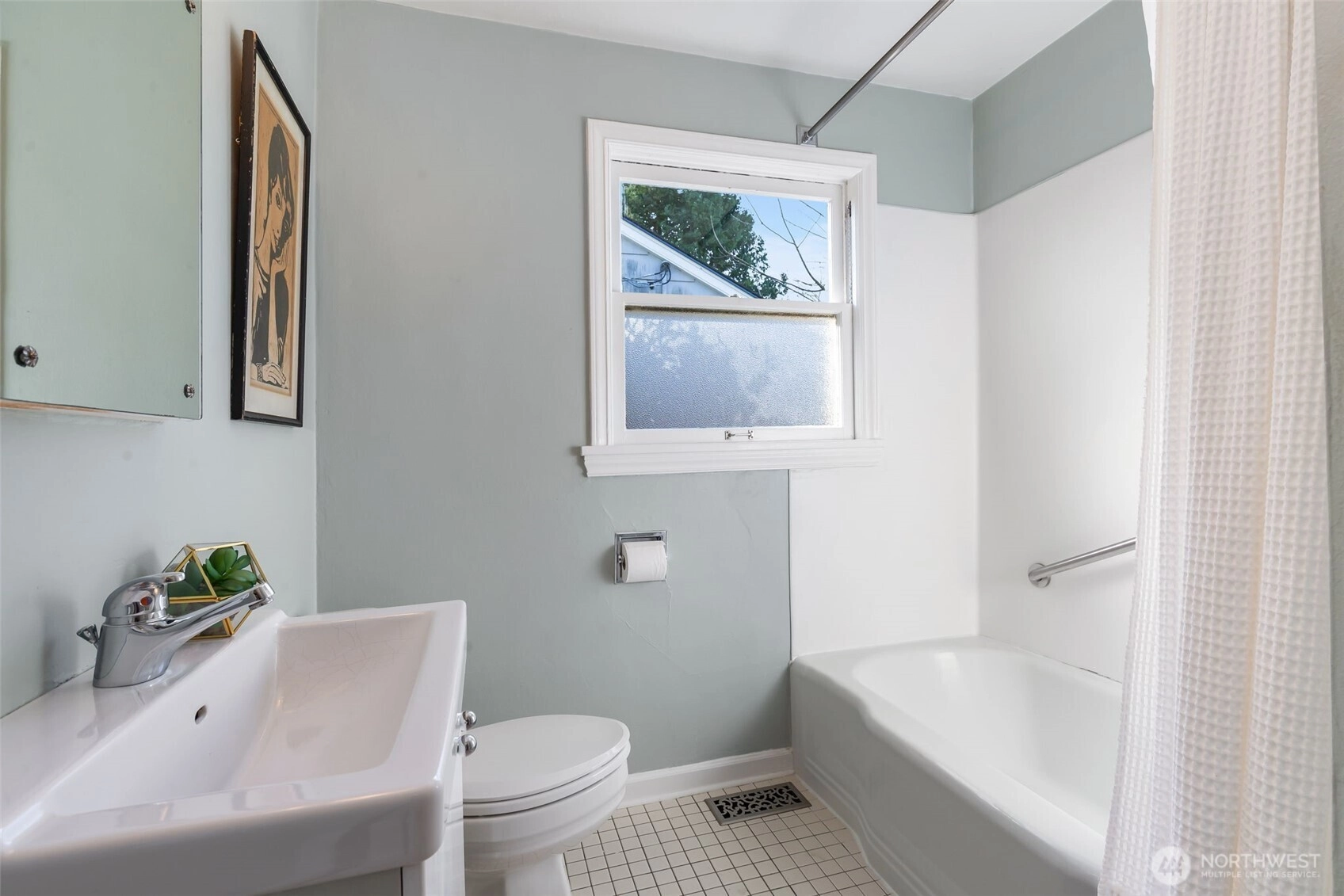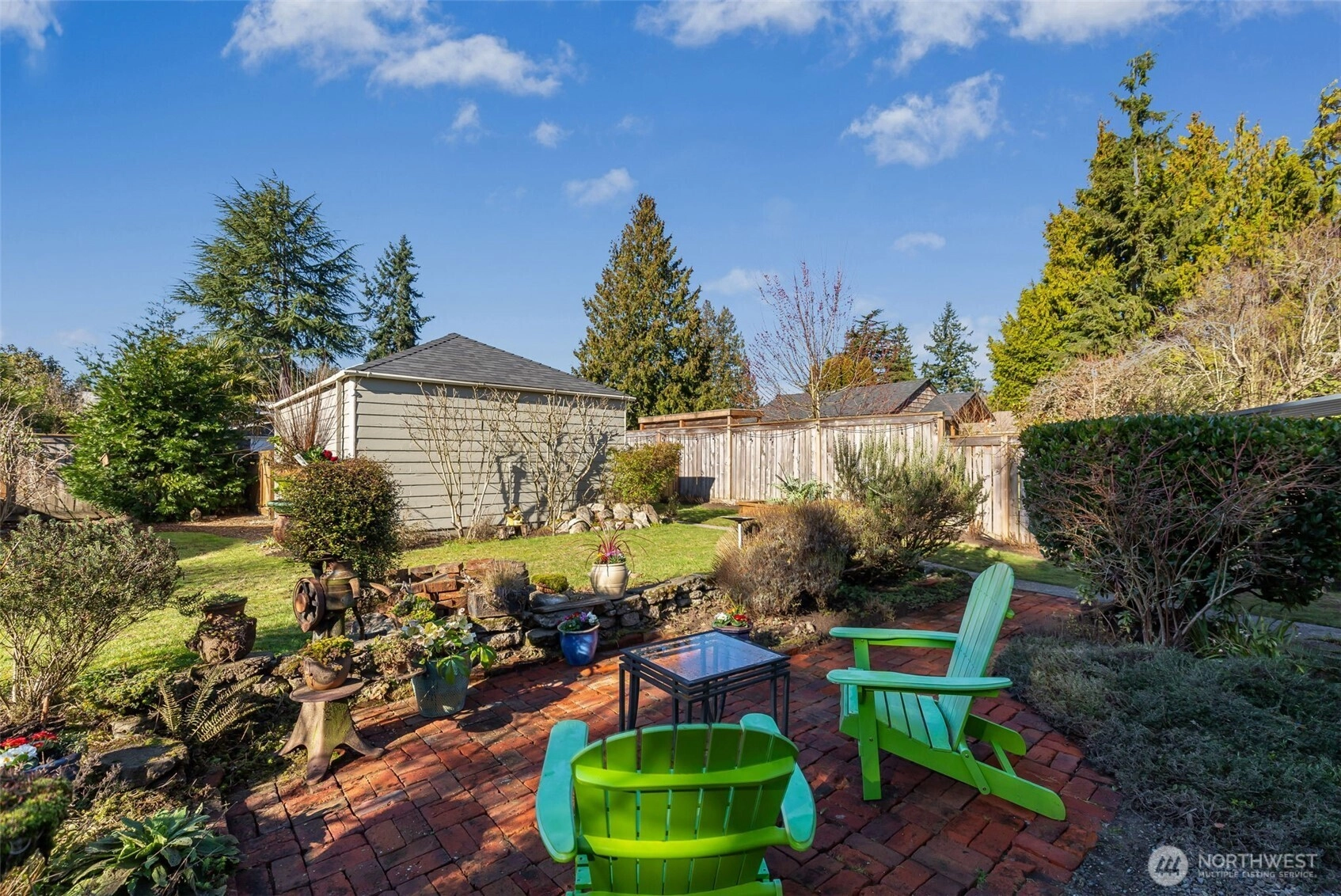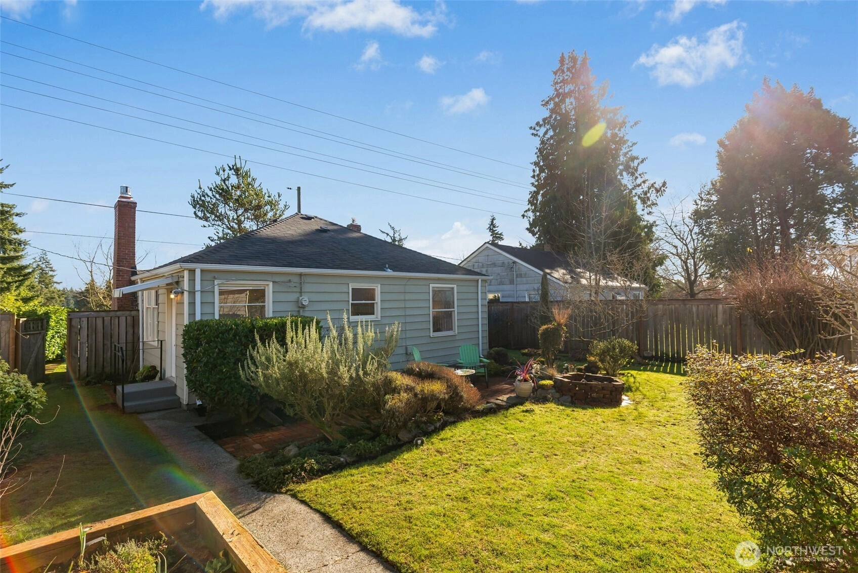 Light-filled mid-century gem nestled on a designated "Healthy Street," this updated home offers a safer, quieter setting for walking and biking with reduced traffic. Inside, you'll find original hardwoods gracing the cozy living room with a gas fireplace. 1940 charm fills this one-level home sited on a large lot with beautiful landscaping ready to bloom in the Spring. Detached garage with alley access plus ample off-street parking including space for an RV. Excellent future potential for a backyard DADU or middle housing development. Unbeatable location for outdoor lovers with a park next door, the Interurban Trail across the street, and Carkeek Park just blocks away. Easy access to transit and a vibrant array of international dining. Great value in this adorable home brimming with potential.