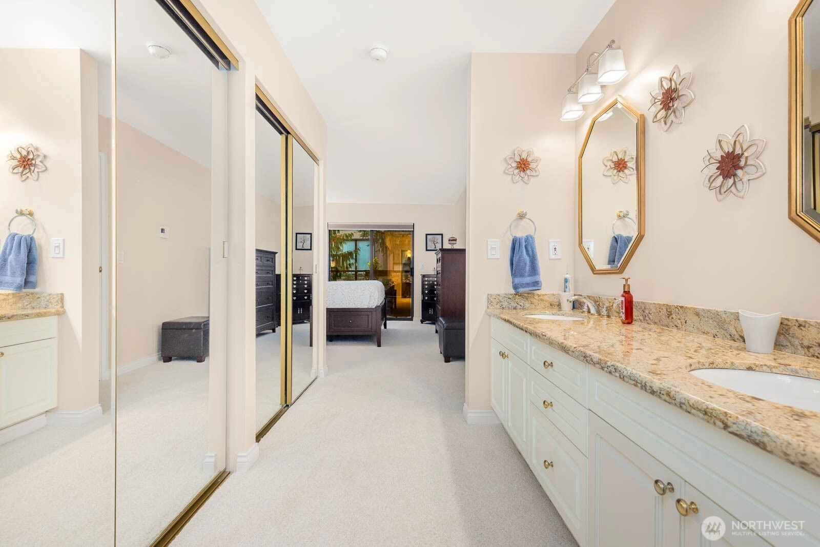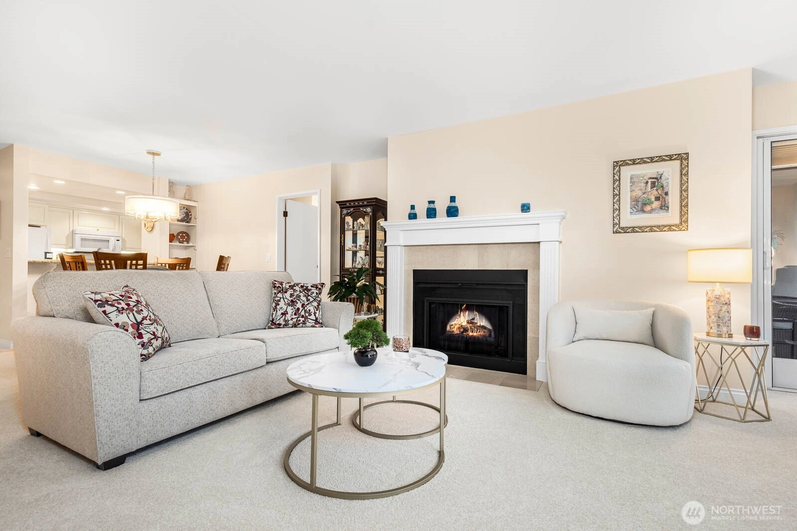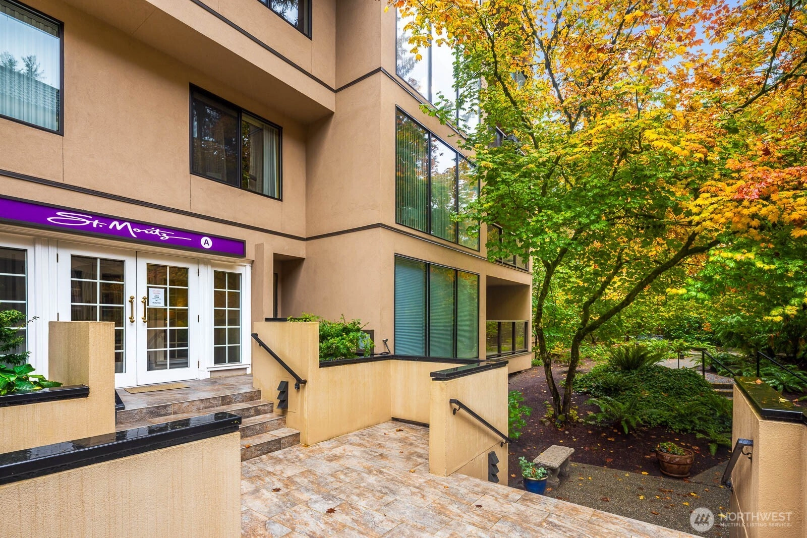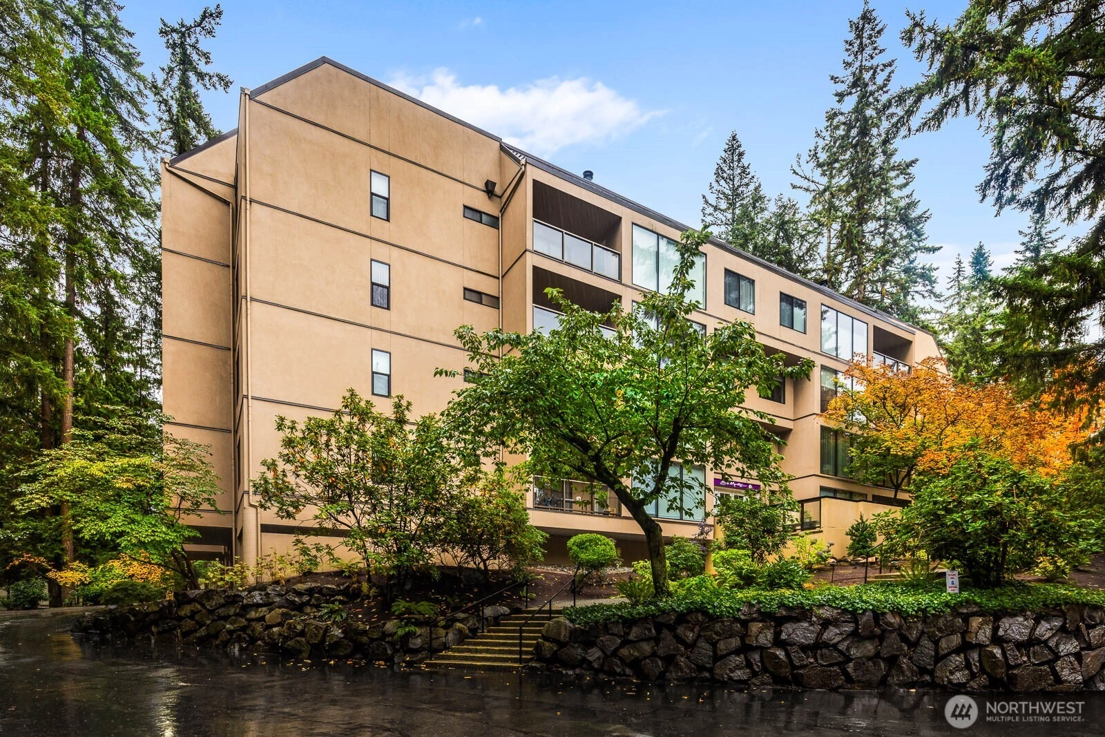 0.1 mi to Mill Creek Country Club • Serene tree-lined views • Granite kitchen & gas fireplaceThis inviting 3rd-floor condo in sought-after St. Moritz blends comfort and elegance moments from Mill Creek Town Center. Sun-filled living spaces showcase floor-to-ceiling windows framing lush evergreens. The granite kitchen w/white cabinetry and new appliances opens to a dining area and electric fireplace. Relax on the covered, tiled deck surrounded by seasonal color. The spacious primary suite features dual-sink granite vanity and mirrored closets; the guest suite offers a 3/4 bath and walk-in closet. Laundry room with storage, secure lobby with elevator, garage parking #38. HOA includes water/sewer/garbage. Video tour included.