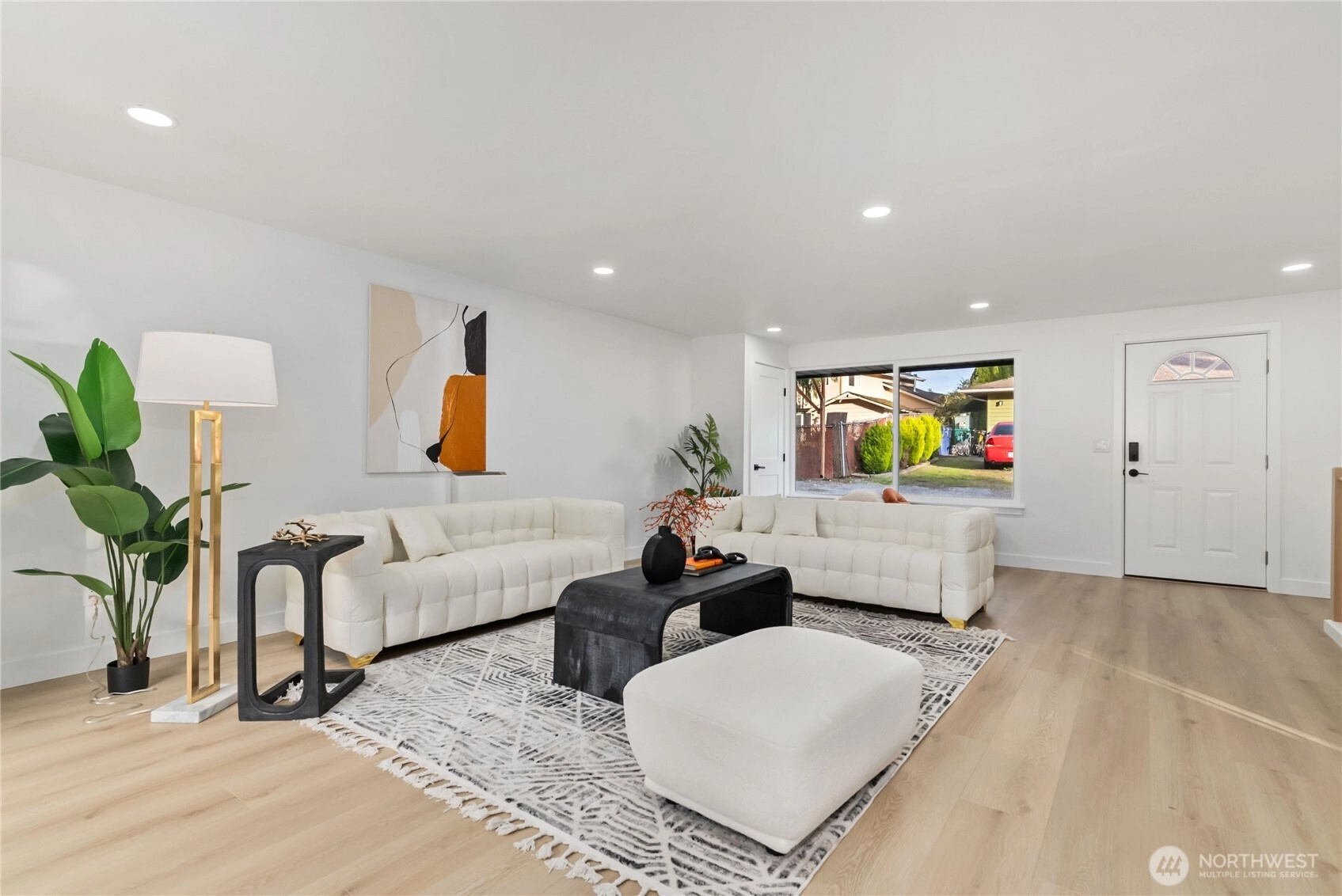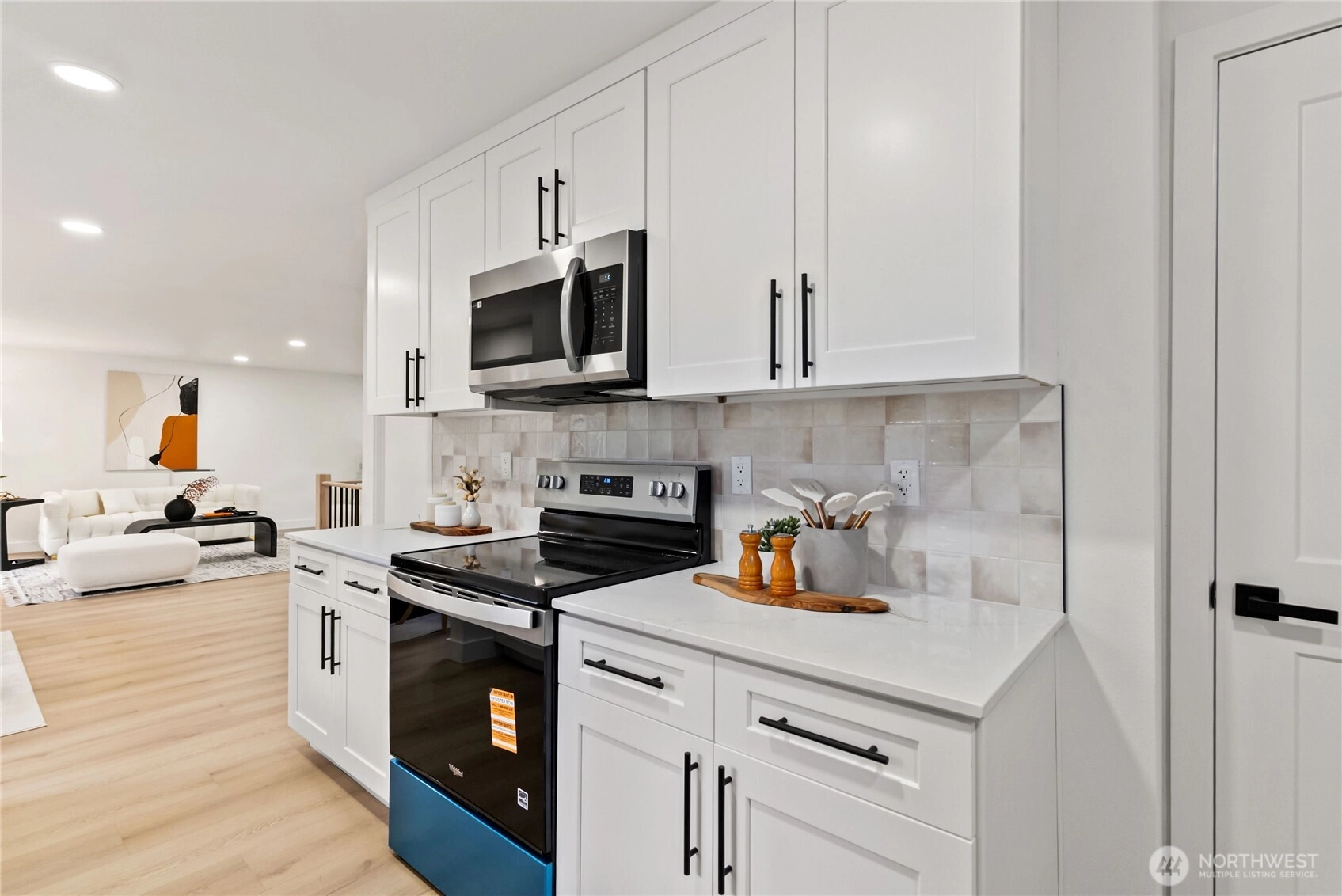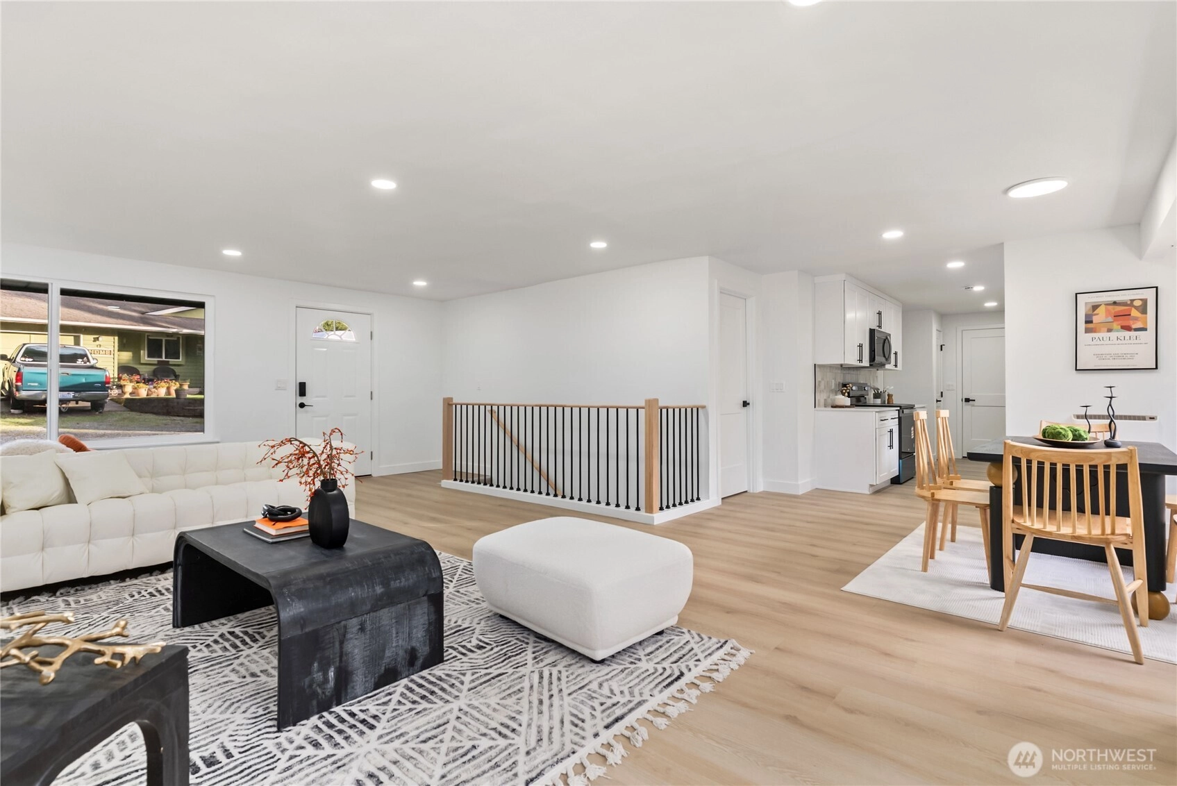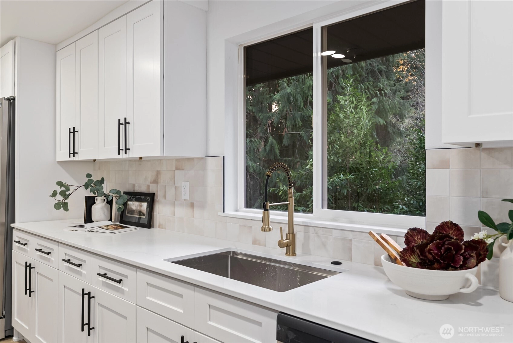 Must-see home in the heart of Marysville, perfectly situated at the end of a quiet dead-end street, offering privacy and convenience with no HOA. This spacious residence features 3 bedrooms and 2 bathrooms. Primary bedroom on the main level, with an additional 2 bedrooms and a full bathroom downstairs—ideal for multigenerational living or guests. The open-concept floor plan creates an inviting atmosphere, with an oversized living room that flows seamlessly into the dining area. The galley-style kitchen is thoughtfully designed with custom cabinetry, quartz countertops, stainless steel appliances, and a striking custom backsplash, perfect for both everyday meals and entertaining. The primary suite features a full bathroom with custom tile work and an elegant vanity, providing a private retreat. Outside, enjoy a huge 12x24 deck overlooking serene Quilceda Creek, ideal for relaxing, entertaining, or taking in nature’s beauty. Additional highlights include a 2-car garage plus a carport for RV or boat parking, a new roof, and a secluded location that combines privacy with accessibility. This exceptional Marysville home blends comfort, style, and functionality—truly a must-see.