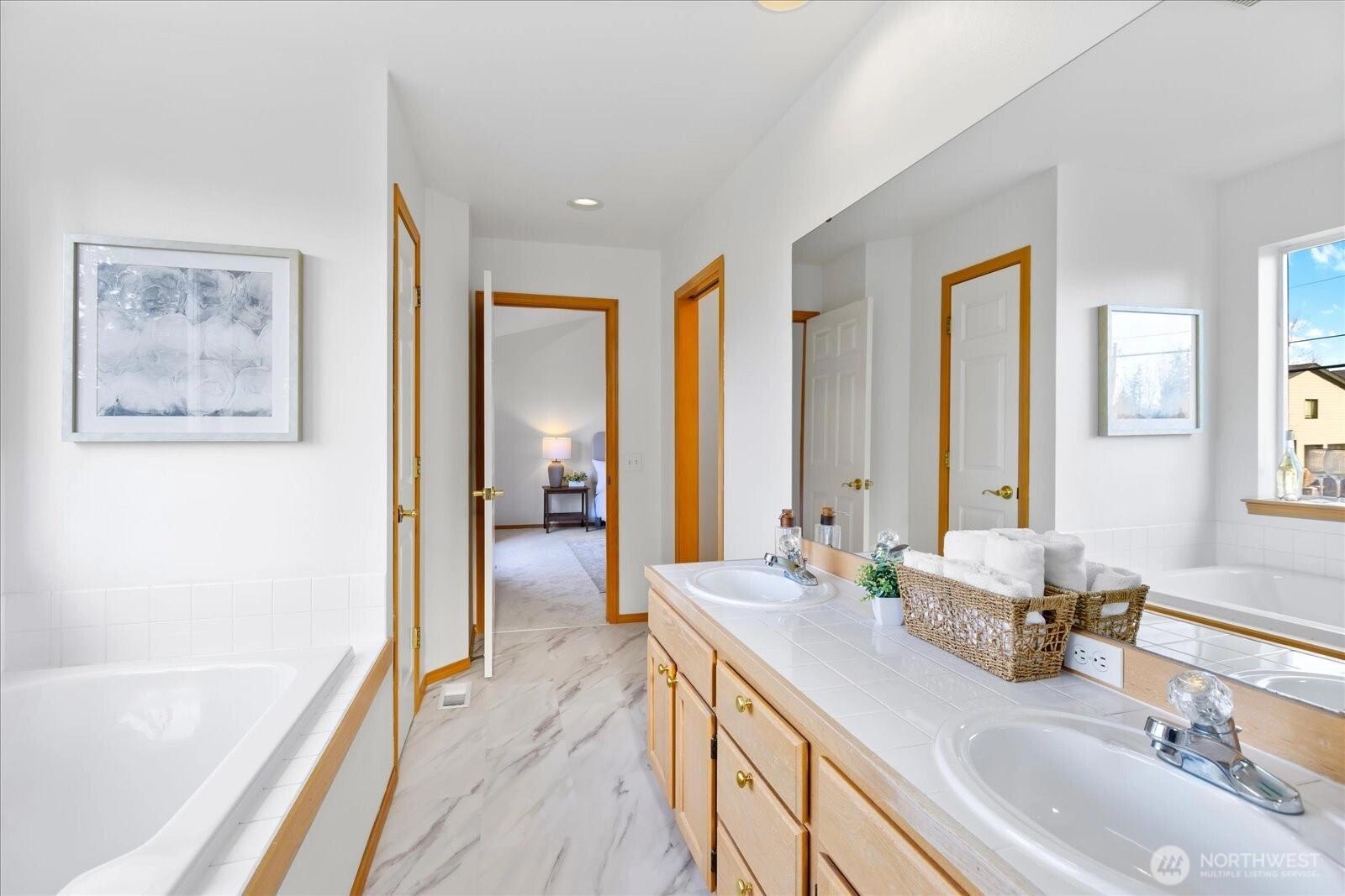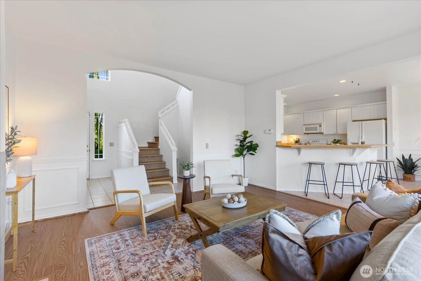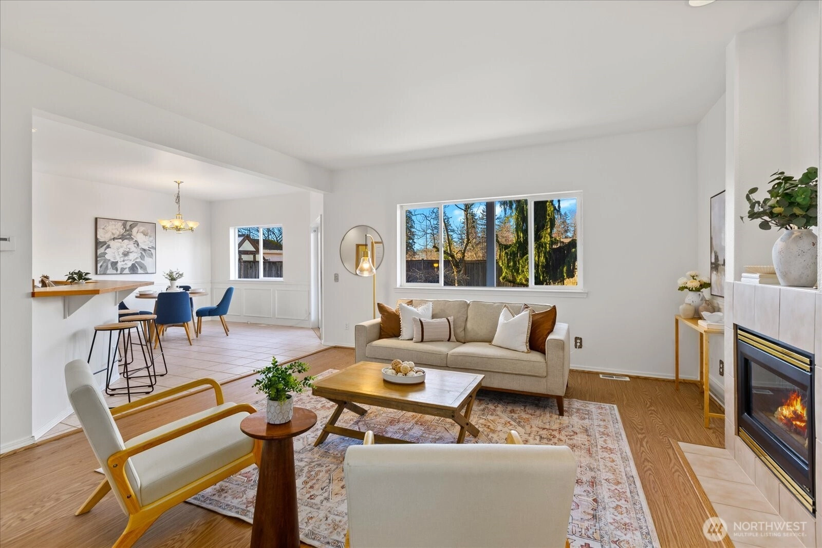 Beautiful 4-bedroom home on a corner lot within the highly sought-after Mukilteo School District. Offering 1,992 square feet, this home features a large kitchen with an eating bar and an open layout that flows comfortably into the main living areas. The flexible floor plan includes a spacious 4th bedroom that easily functions as a bonus room, home office, or additional living space. The generously sized primary suite offers vaulted ceilings, a walk-in closet, bright 5-piece bath with soaking tub, and access to a brand-new deck to enjoy sunsets. Step outside to the covered back patio and expansive sunny backyard, ideal for entertaining, play, gardening, or pets. Features include a newer roof, heat pump with A/C, fresh interior paint, new carpet, and updated bathroom flooring. Bright, clean interiors and a highly functional layout make this home both inviting and practical. Conveniently located near Boeing, Paine Field, and the Mukilteo community, with easy access to shopping, amenities, and commuter routes.