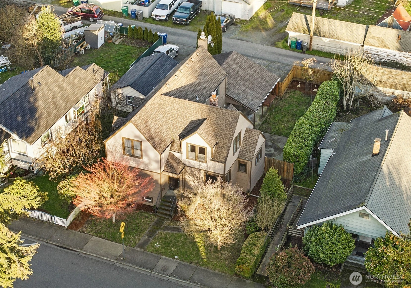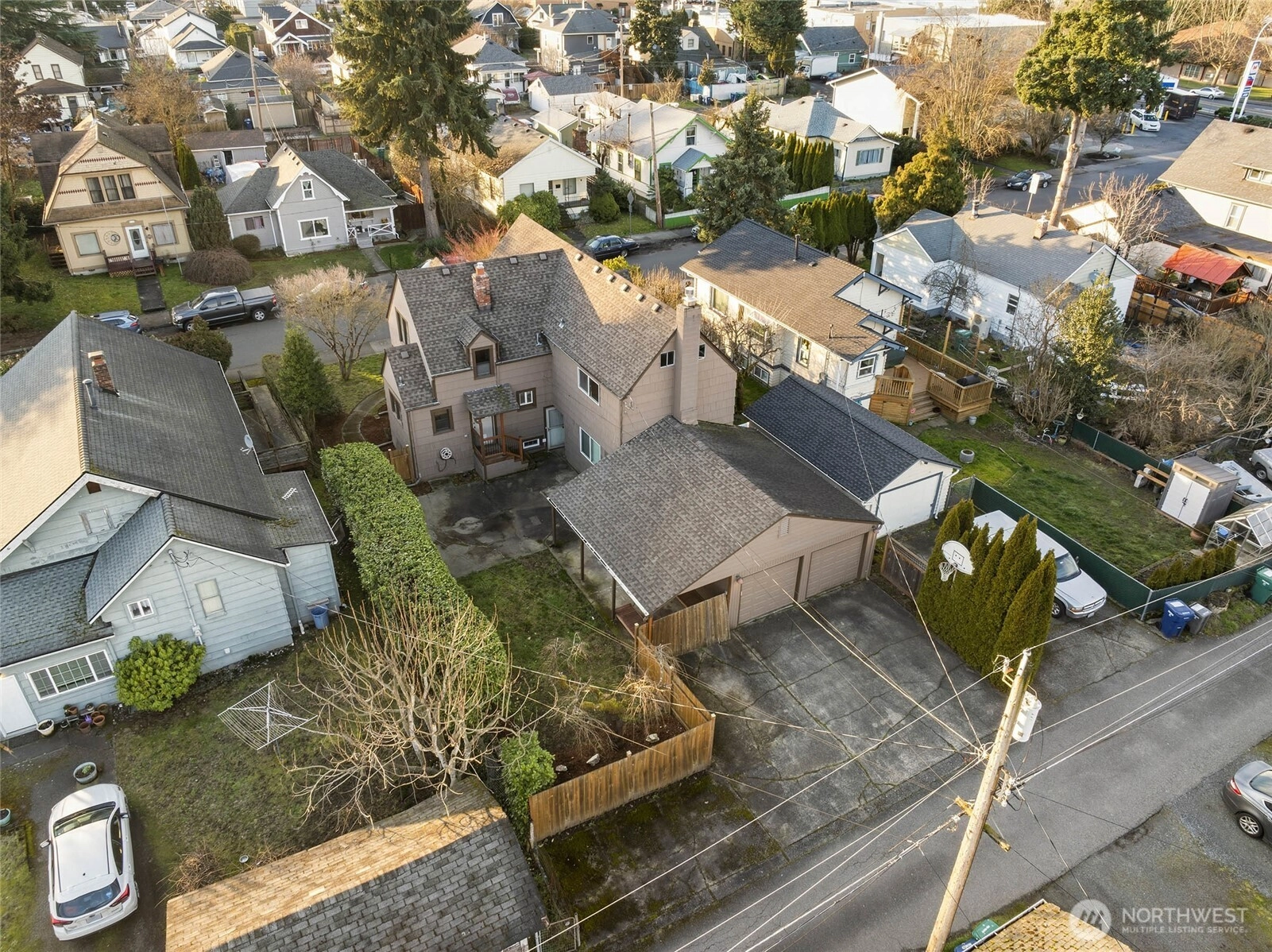 Timeless Craftsman featuring built-in cabinetry, and rich woodwork throughout. Substantial for its era and still impressive today, this early-20th-century home was considered a grand residence, offering multiple living spaces that provide flexibility for hobbies, games, a home office, or cozy gatherings. The spacious kitchen features generous storage, is filled with natural light, and opens to the backyard—ideal for effortless entertaining or unwinding in a peaceful, fully fenced retreat with added privacy. A 2-car garage and carport provide generous off-street parking, including space for an RV or multiple vehicles. Located in a walkable community near coffee shops, schools, restaurants, and the Sounder Station.