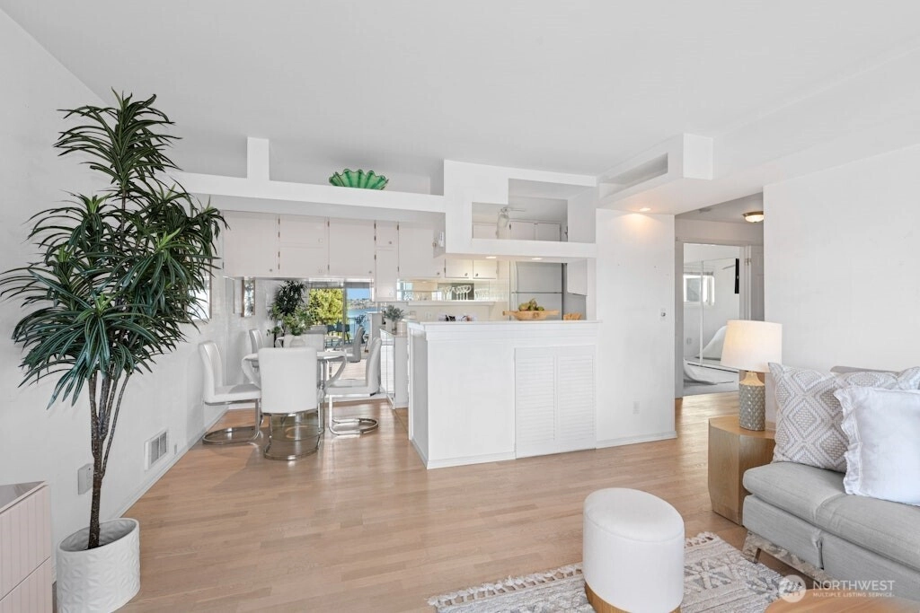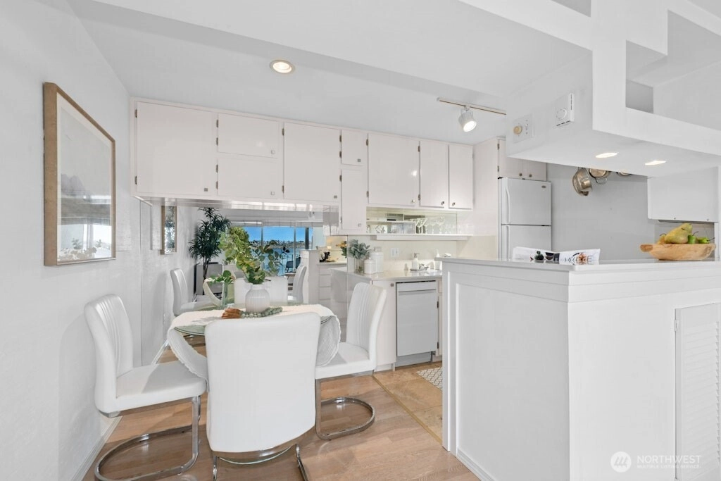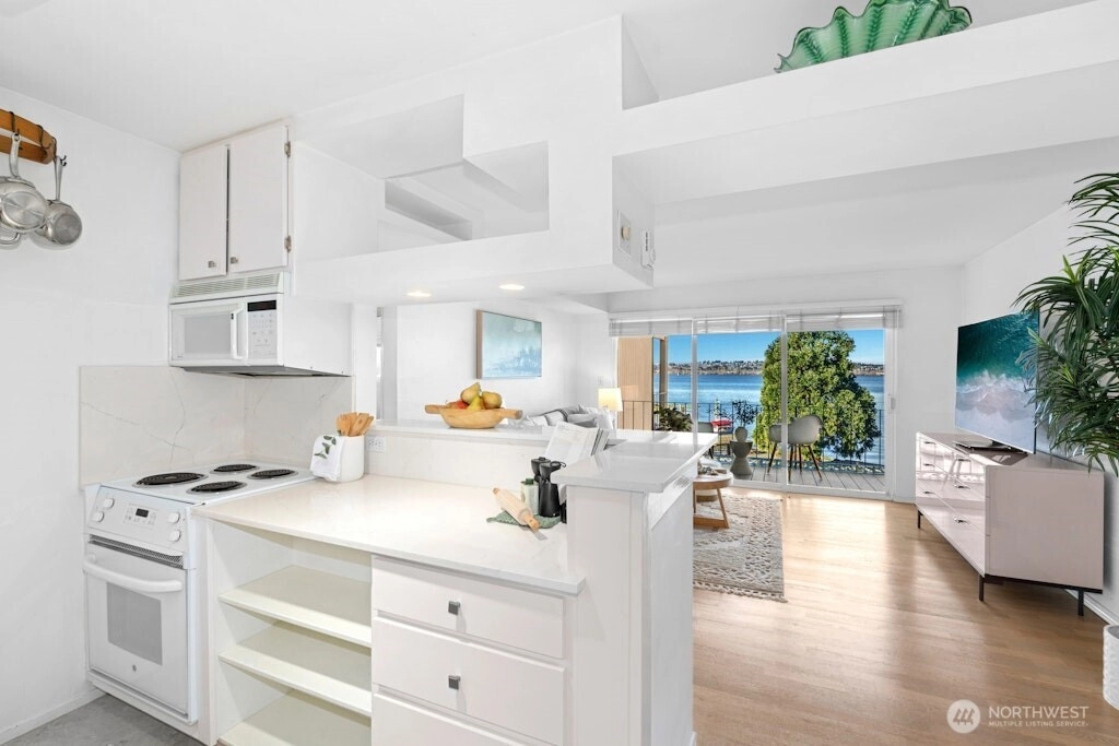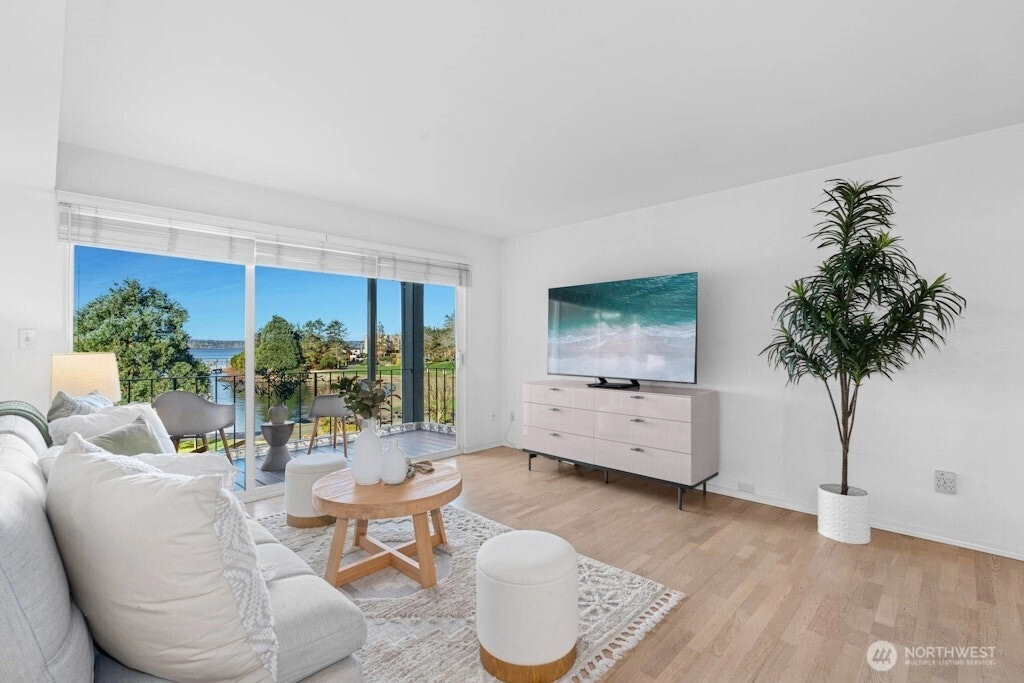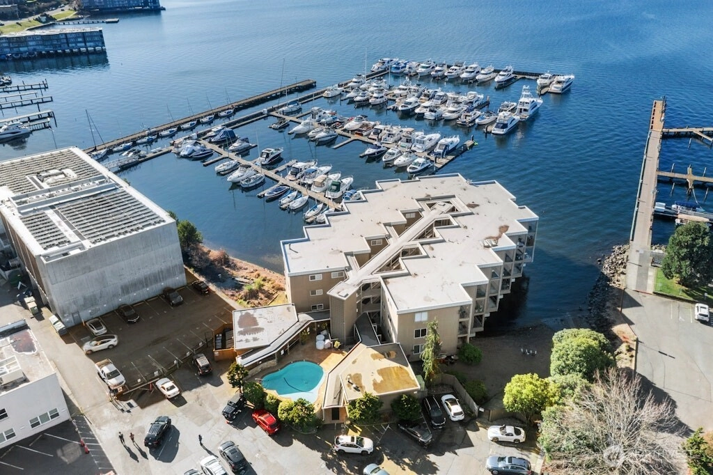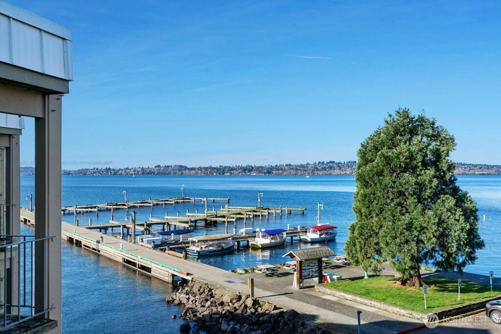 Rare opportunity to live in the true center of vibrant waterside downtown Kirkland. Top floor unit overlooks and adjoins Marina Park – a constant, everchanging vista. Resort style living allows you take in the Kirkland summer concerts with your own front row seat from your private balcony – a 50 year Kirkland tradition! Amazing, panoramic and unobstructable everchanging views of the city’s premier downtown park and marina, with the glistening waters of Lake Washington, Olympic mountains, rose colored sunsets and never-ending maritime performances as the backdrop. Clean, top floor penthouse unit is light-filled, includes updated kitchen, bath and flooring, in-unit washer and dryer, and beautiful covered lanai for year-round enjoyment. Quiet building is the perfect lock and leave property for a snowbird! Vintage mid-century 42 unit complex is built out over the water and includes a seasonal pool, private sandy beach, individual storage units, private designated parking, moorage available, kayak/canoe/ bike storage and arguably the best location in all of Kirkland. Walk to everything sought-after downtown Kirkland has to offer: award-winning shops and restaurants, scenic waterfront parks and walks, the Kirkland Cross Corridor Trail, and so much more. Perfect location with Bellevue, SR 520 and I-405 just a few minutes away. Don’t miss this chance to experience resort-style living in the center of it all!