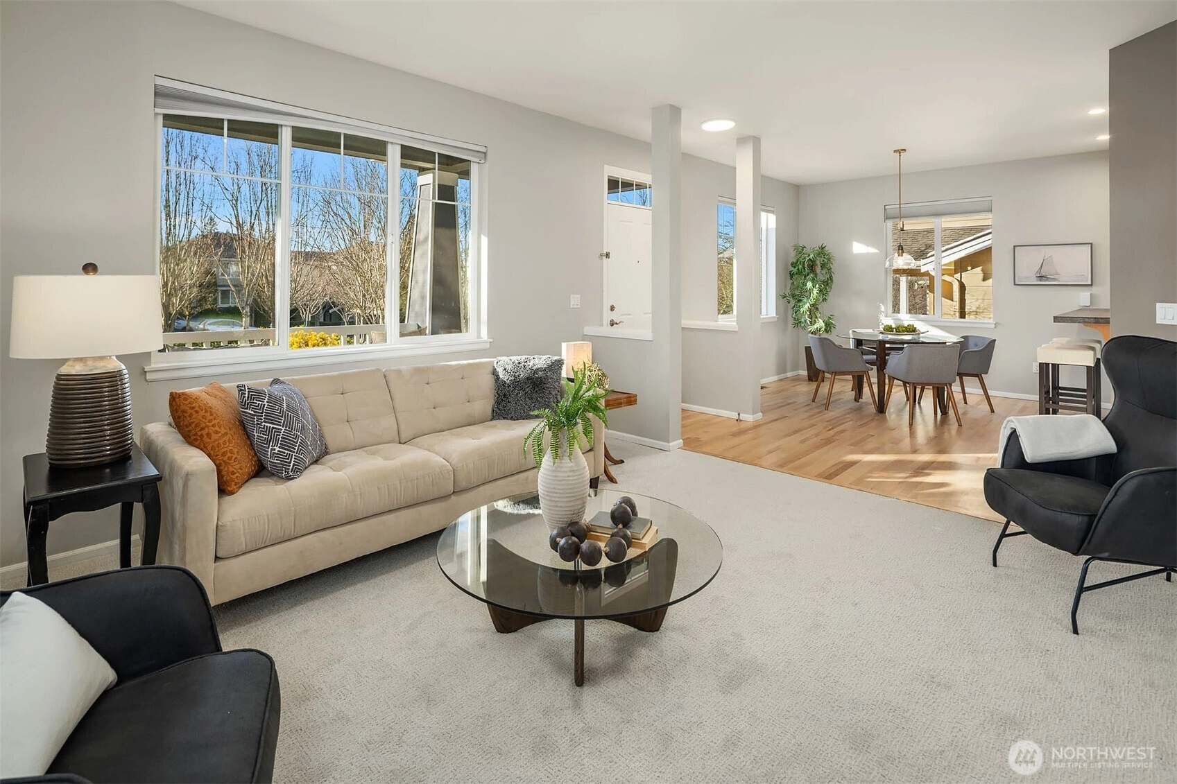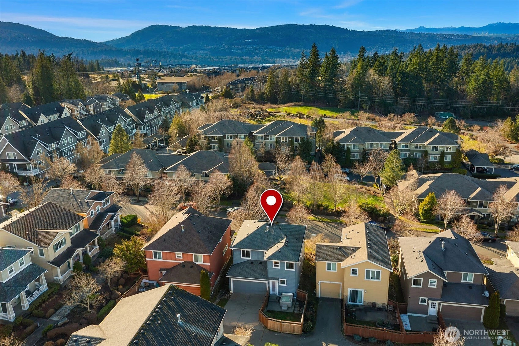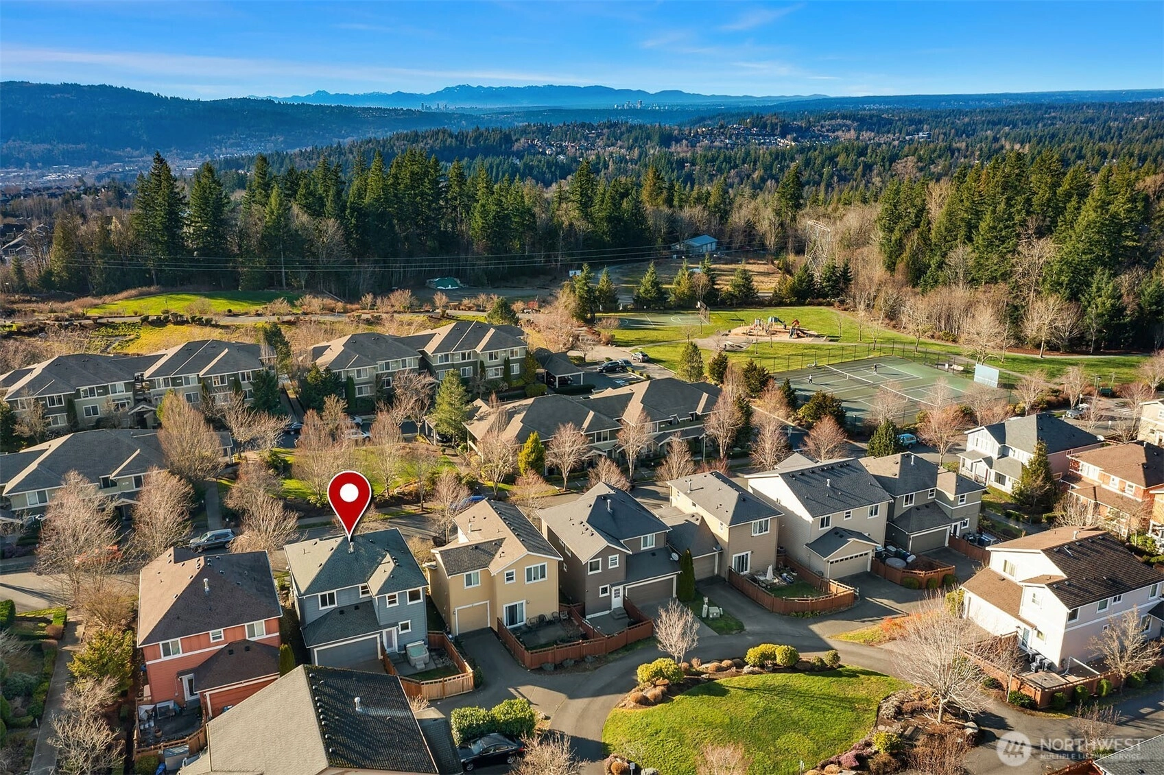 Discover this beautiful two-story home in the urban haven of Issaquah Highlands, where the convenience of city amenities meets the tranquility of nature. This residence features newly refinished hardwood floors, new carpet, and fresh interior paint, creating a fully refreshed atmosphere. Great room concept with fireplace, open kitchen with abundant cabinetry and new high end stainless appliances (Bosch). Choose between the dining area or the breakfast bar for meals. Office nook is located on the upper landing. Then there's the spacious primary suite offering views of Bellevue from the windows during the daytime and twinkling City lights at night, dual vanity bathroom & large walk-in closet. Coveted fenced back yard & patio includes a hot tub. Rear load 2 car attached garage. Located less than half a block from Black Nugget Park, enjoy access to tennis courts, a basketball court, a playground, and walking trails. This home perfectly balances urban living with nature's serenity.