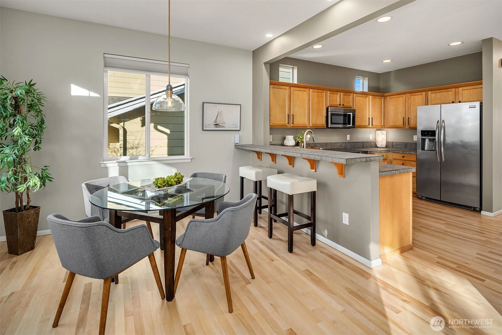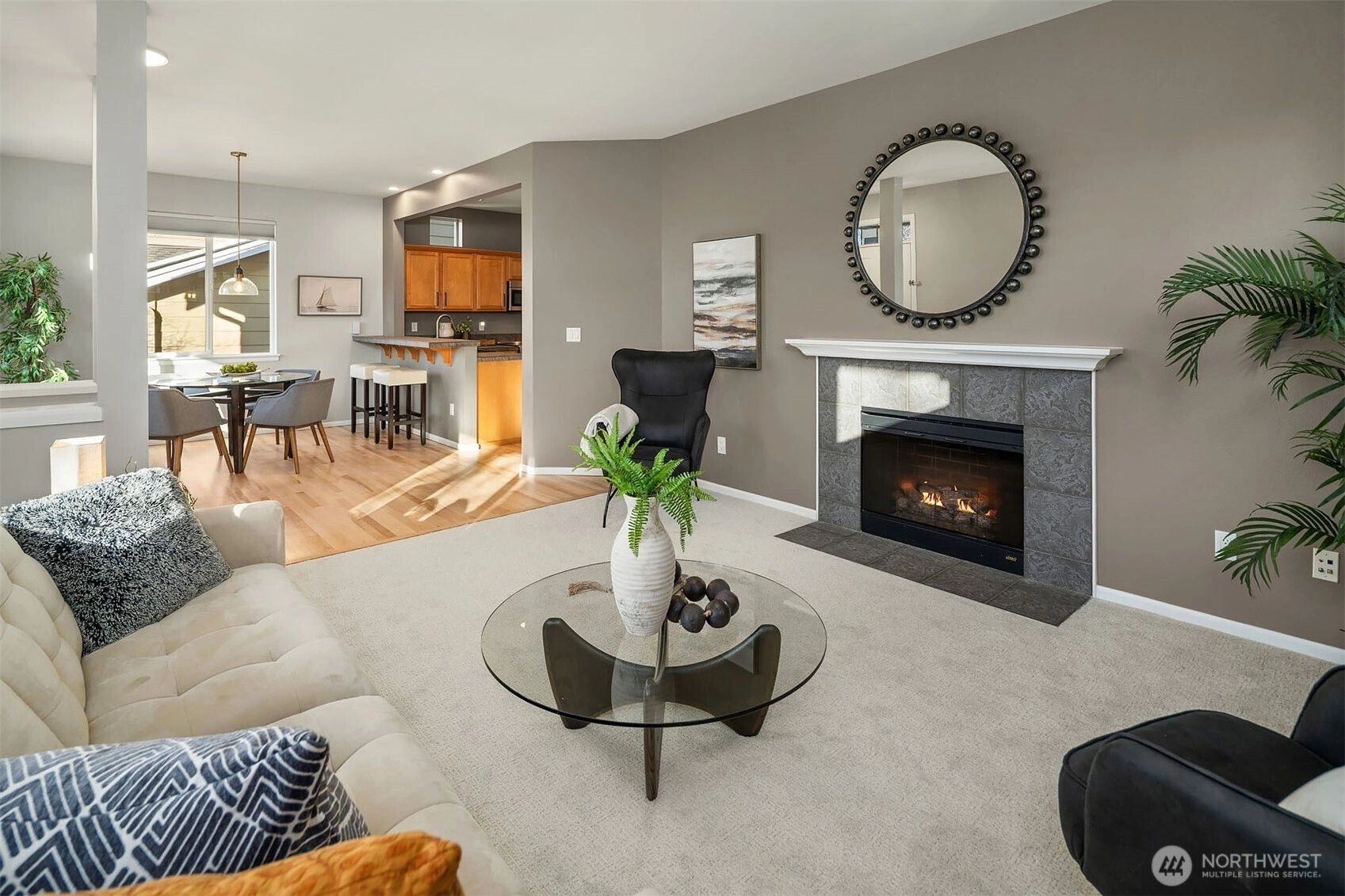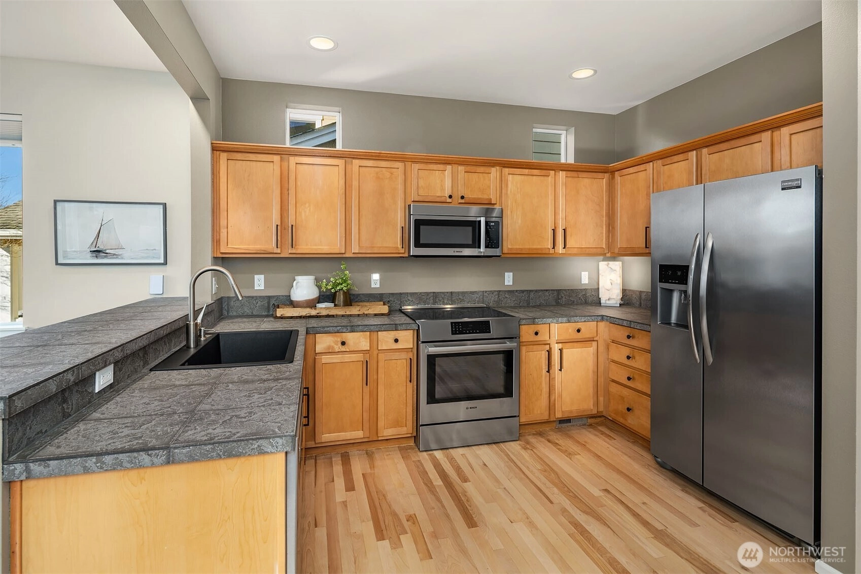 Discover this beautiful two-story home in the urban haven of Issaquah Highlands, where the convenience of city amenities meets the tranquility of nature. This residence features newly refinished hardwood floors, new carpet, and fresh interior paint, creating a fully refreshed atmosphere. Great room concept with fireplace, open kitchen with abundant cabinetry and new high end stainless appliances (Bosch). Choose between the dining area or the breakfast bar for meals. Office nook is located on the upper landing. Then there's the spacious primary suite offering views of Bellevue from the windows during the daytime and twinkling City lights at night, dual vanity bathroom & large walk-in closet. Coveted fenced back yard & patio includes a hot tub. Rear load 2 car attached garage. Located less than half a block from Black Nugget Park, enjoy access to tennis courts, a basketball court, a playground, and walking trails. This home perfectly balances urban living with nature's serenity.