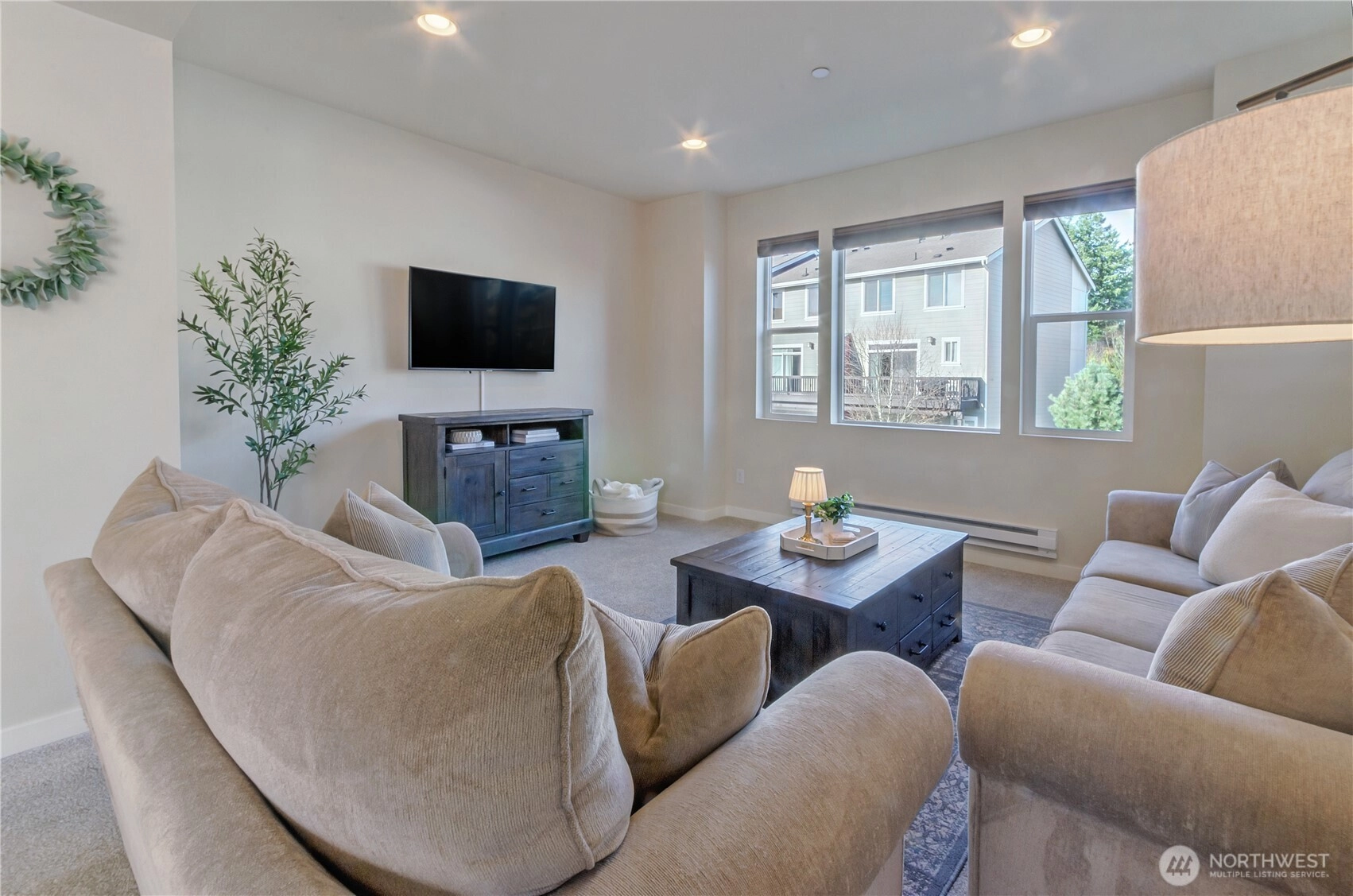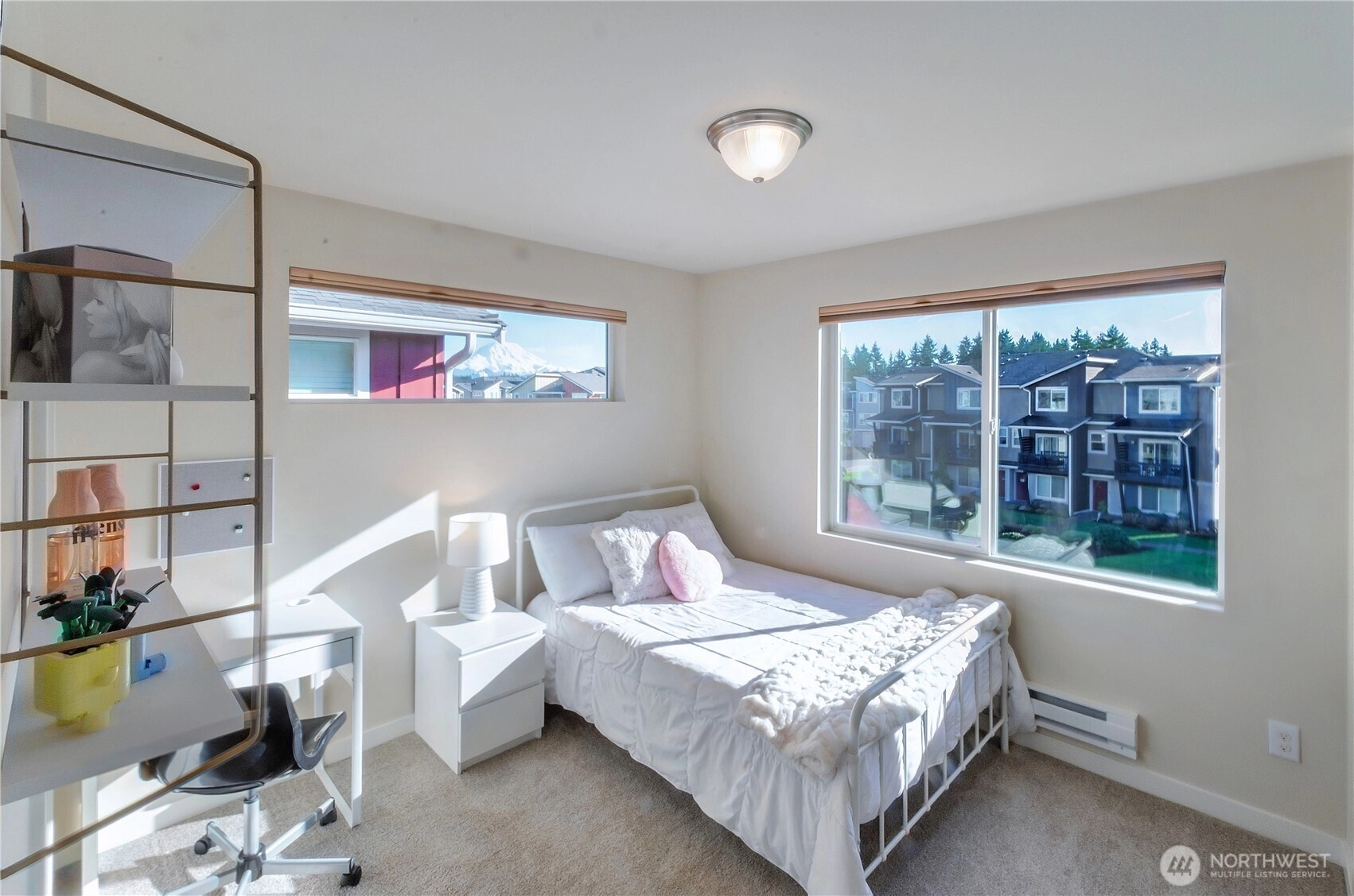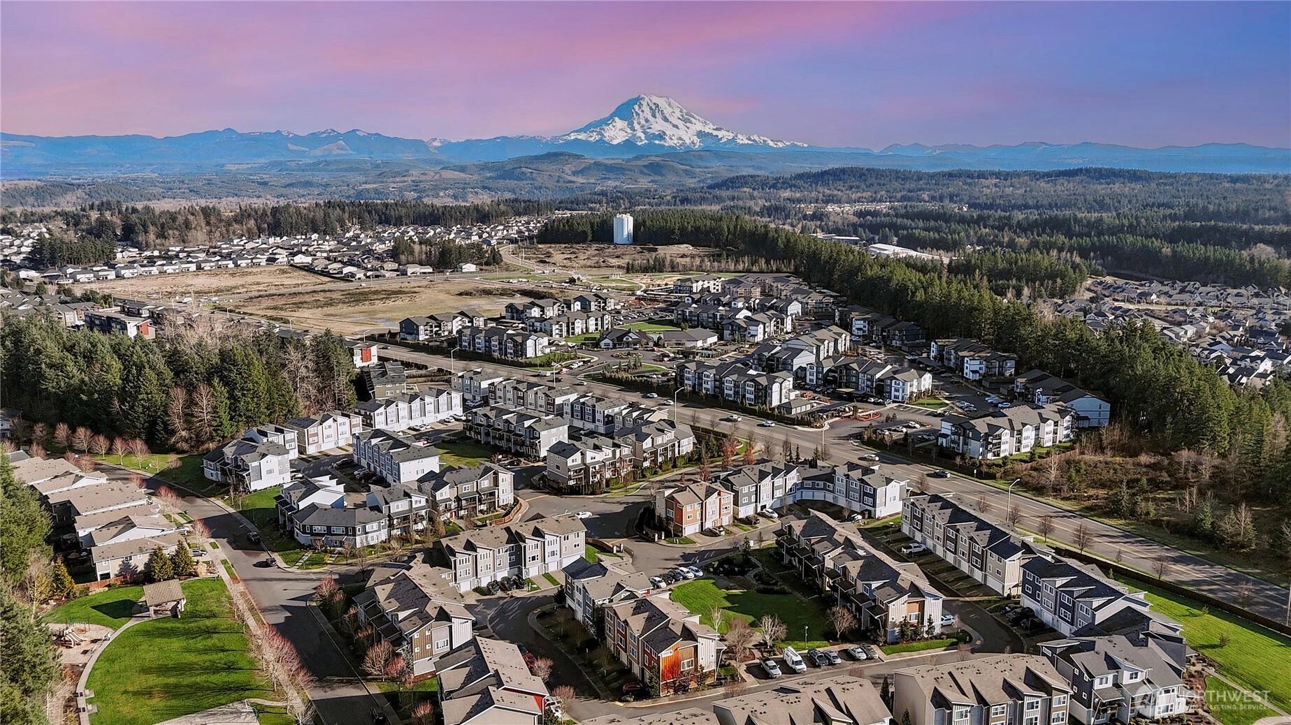 Beautiful, light-filled 2-bedroom townhome in the sought-after Sunrise area of Puyallup with stunning Mt. Rainier views! The lower level features a versatile den/office space just off the entry, a spacious walk-in closet off the garage, and brand-new LVP flooring for a fresh, modern feel. The main floor offers an open-concept family room and kitchen, perfect for entertaining, along with a convenient powder room for guests. Upstairs, you’ll find two generously sized bedrooms—both with en suite bathrooms and Mt. Rainier views—plus new LVP flooring that adds style and durability. Comfort, functionality, and breathtaking scenery all in one exceptional home!