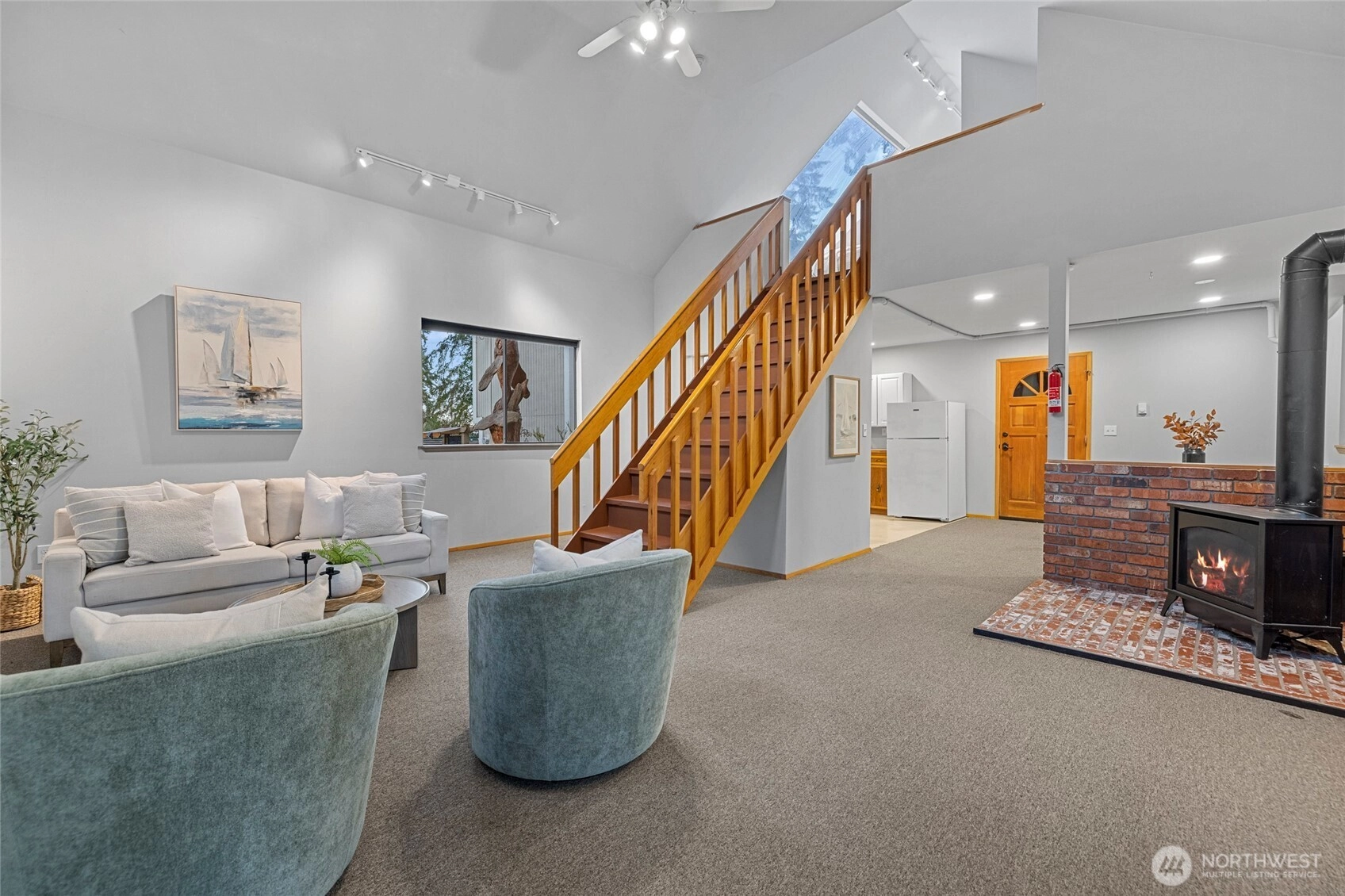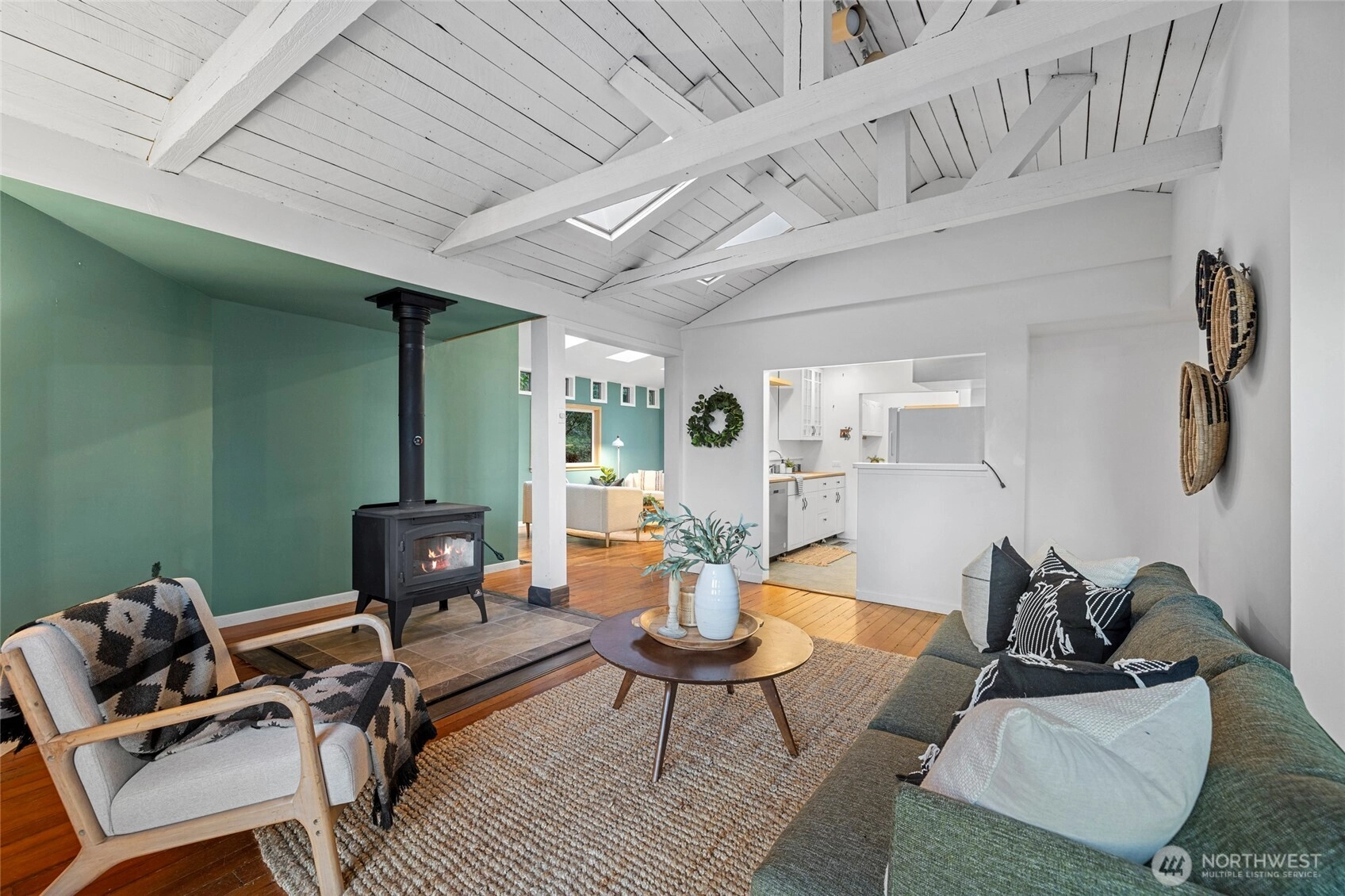 Nestled in a picturesque setting with gorgeous views, this cozy home offers the perfect blend of comfort and undeniable character. Sun-filled interiors and inviting living spaces create an easy, relaxed feel throughout. Outdoors offer a large view deck, garden space & beautiful landscaping. The ~900sf converted barn adds exceptional versatility, featuring a loft-style bedroom, full bath, kitchen, dining & open living area—ideal as an ADU, guest retreat, or income opportunity. A rare property that captures timeless charm with modern flexibility, all framed by a beautiful view. Cascade View Community features include private beach, park, boat launch, boat house. Located just minutes from the ferry landing, shops & restaurants. STR allowed.