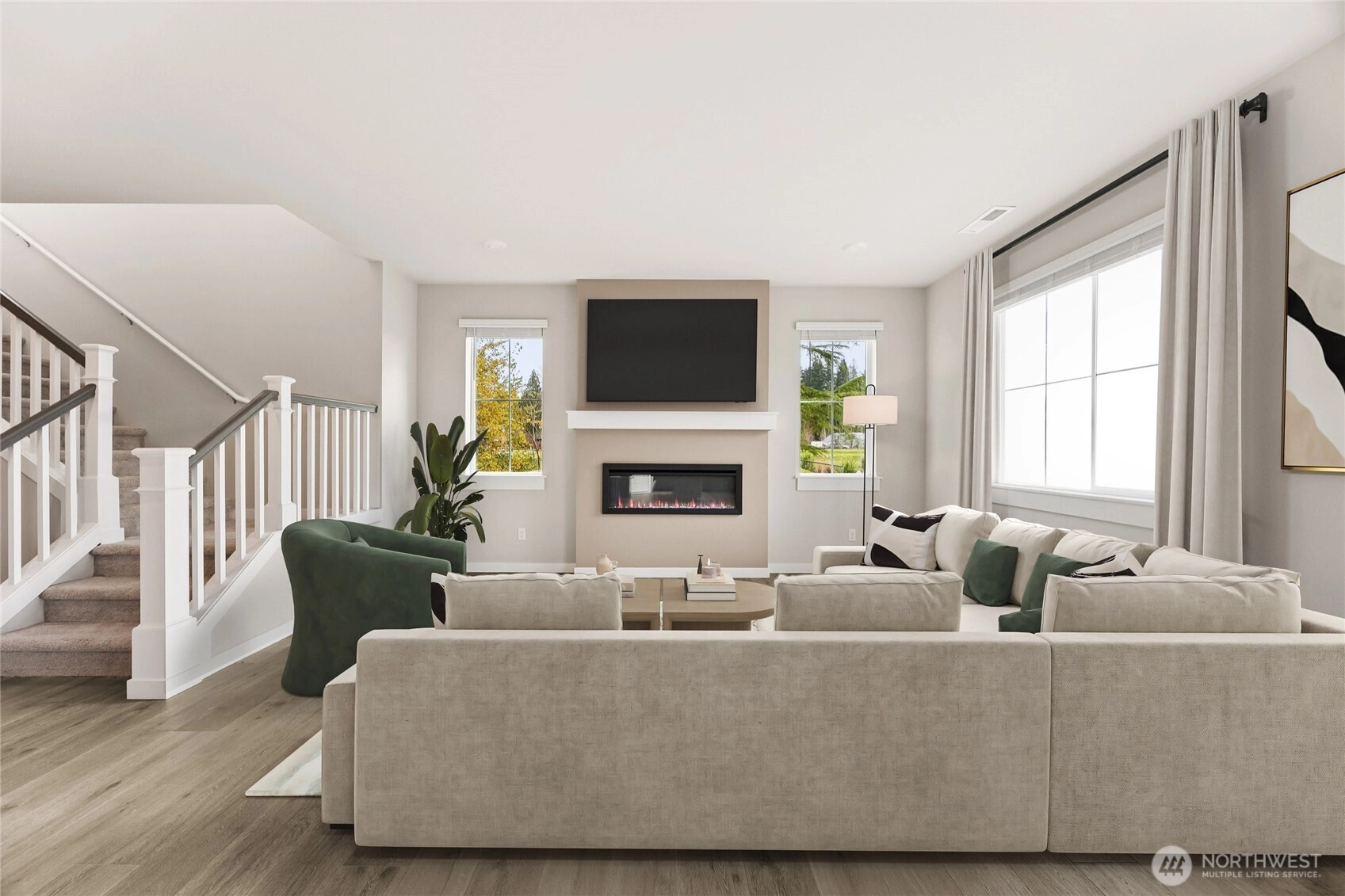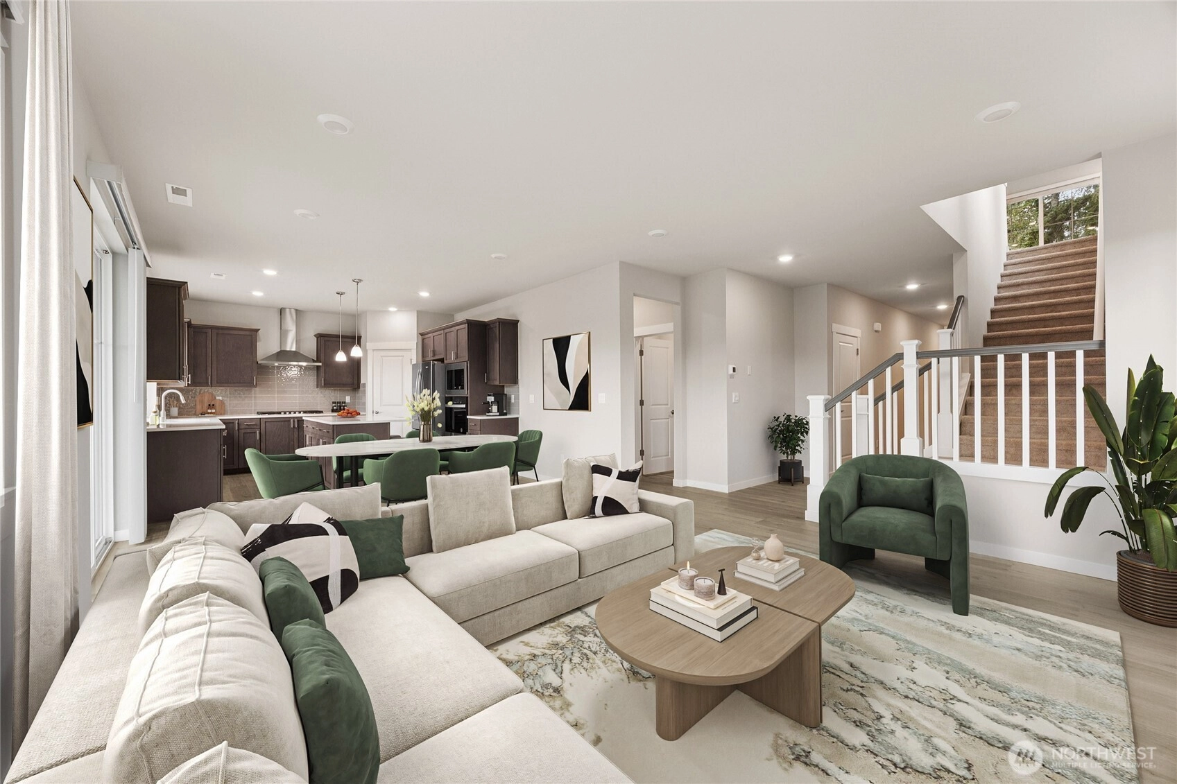 Discover this stunning 2,504 sqft new home on a prime corner lot in charming Duvall, WA! Bathed in natural light through large windows, this residence boasts an open floor plan with a modern kitchen featuring sleek white cabinets. Enjoy a main-floor bedroom, dedicated tech space, airy loft, three additional bedrooms, and a luxurious owner's suite. 2-car garage + driveway. Additional highlights-landscaping, fully fenced backyard, central A/C, heat pump, GAS cooktop, smart features & EV outlet. Steps from Duvall's scenic parks, downtown, sports field, this move-in-ready gem blends style, space, and outdoor adventure! Buyers must register their broker on site at their first visit, including open houses. SPECIAL INCENTIVES!
