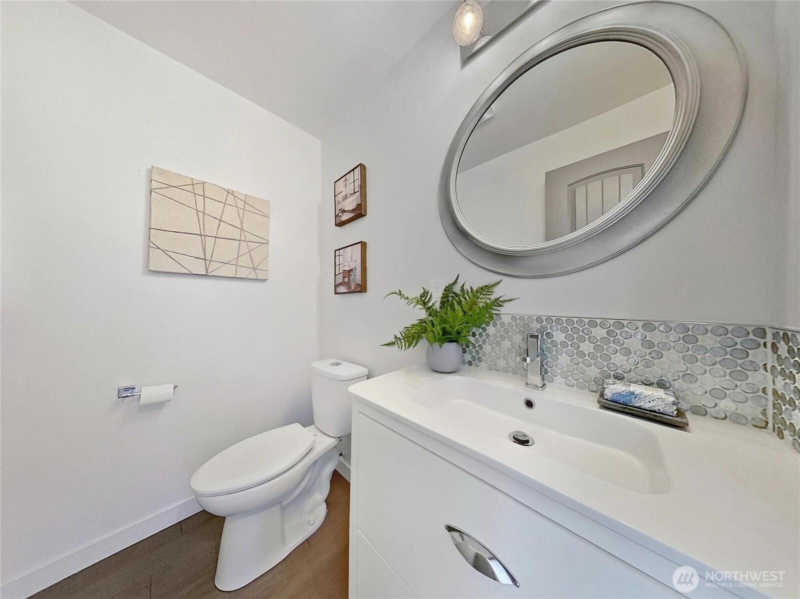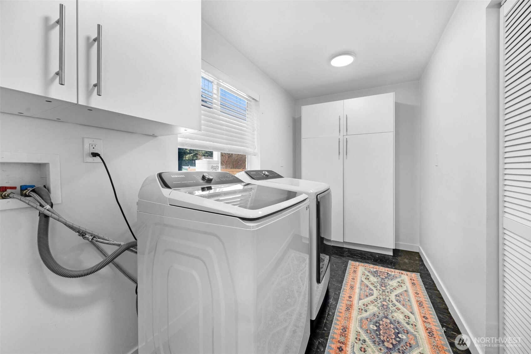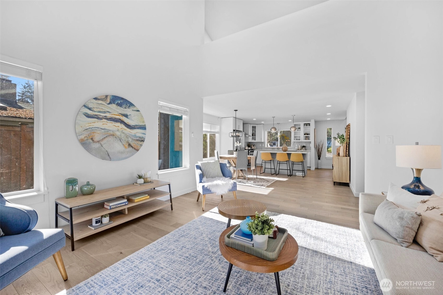 Tucked away on a peaceful cul-de-sac near Ballinger Lake, this refined Edmonds two-story home delivers abundant natural light, modern updates, and effortless indoor-outdoor living. The main-floor primary suite offers a private retreat with a remodeled bath and direct access to the deck and expansive backyard, perfect for morning coffee or relaxed evenings outdoors. The bright open floor plan is enhanced by skylights that flood the home with natural light throughout the day. At the heart of the home, the beautifully remodeled kitchen features crisp white cabinetry, quartz countertops, a sleek glass backsplash, new appliances, and designer lighting, creating a space that is both functional and elevated. Upstairs, two generously sized bedrooms, a full bath, and a spacious family room with vaulted ceilings provides flexible living space ideal for entertaining, work-from-home, or relaxing. Every bathroom has been thoughtfully remodeled, and the home is truly turnkey with air conditioning for year-round comfort. Outside, the oversized, level yard is beautifully manicured and offers exceptional space for entertaining, play, or quiet enjoyment. With room for RV parking or a large garage and close proximity to Ballinger Lake, parks, shopping, and dining, this Edmonds home offers privacy, comfort, and lifestyle in one beautifully finished package.
